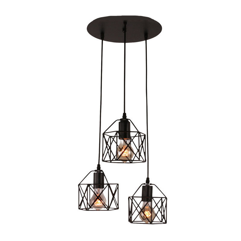ثريا جزيرة حديدية بتصميم هندسي بسيط صناعي بإضاءة 1/3
