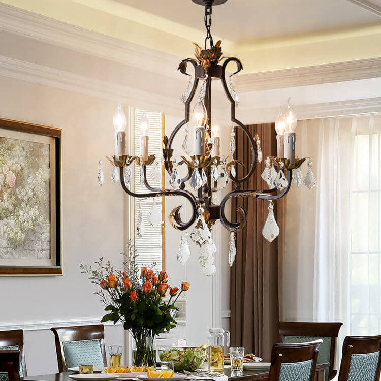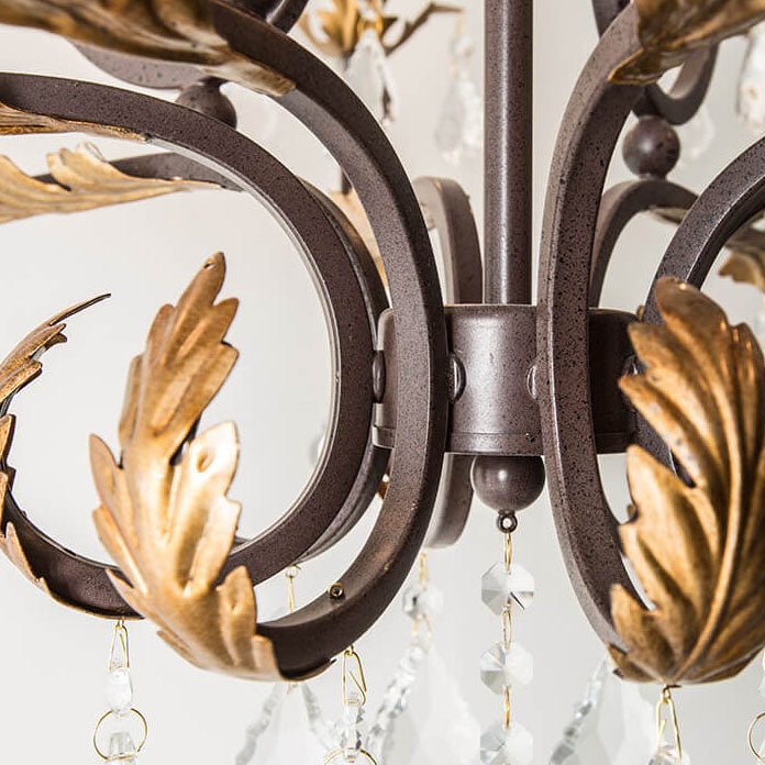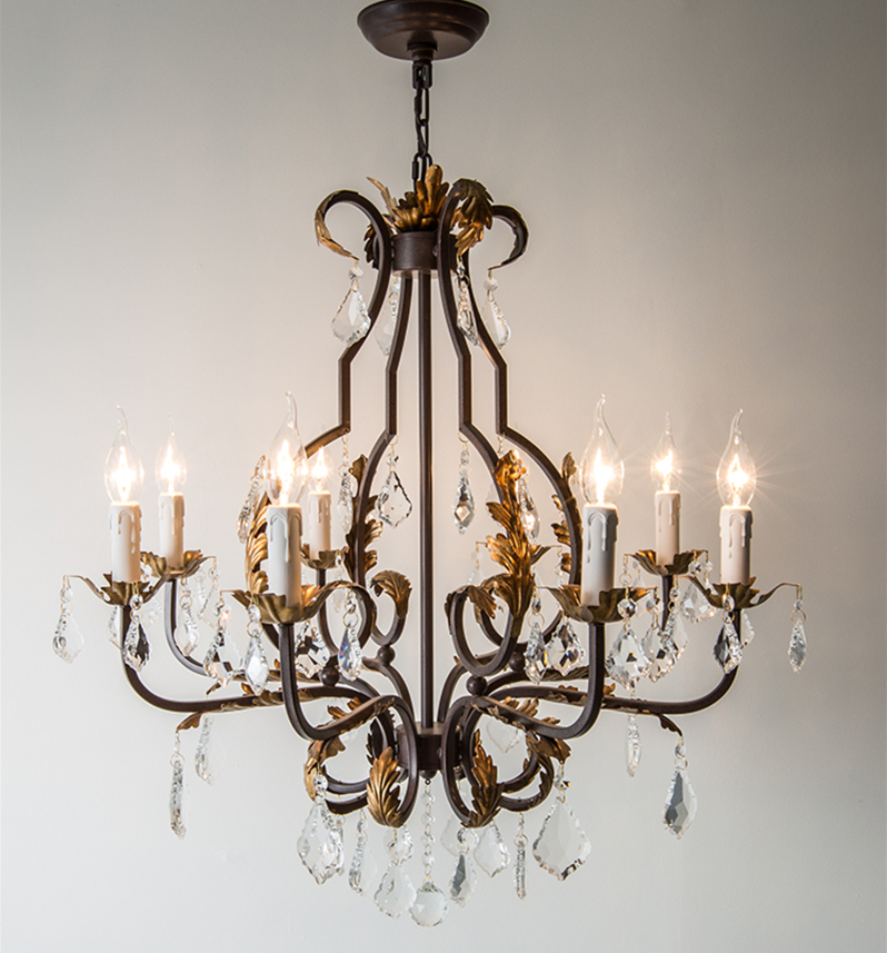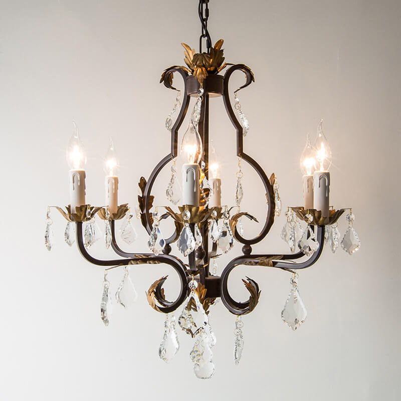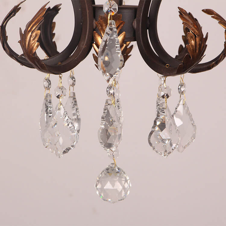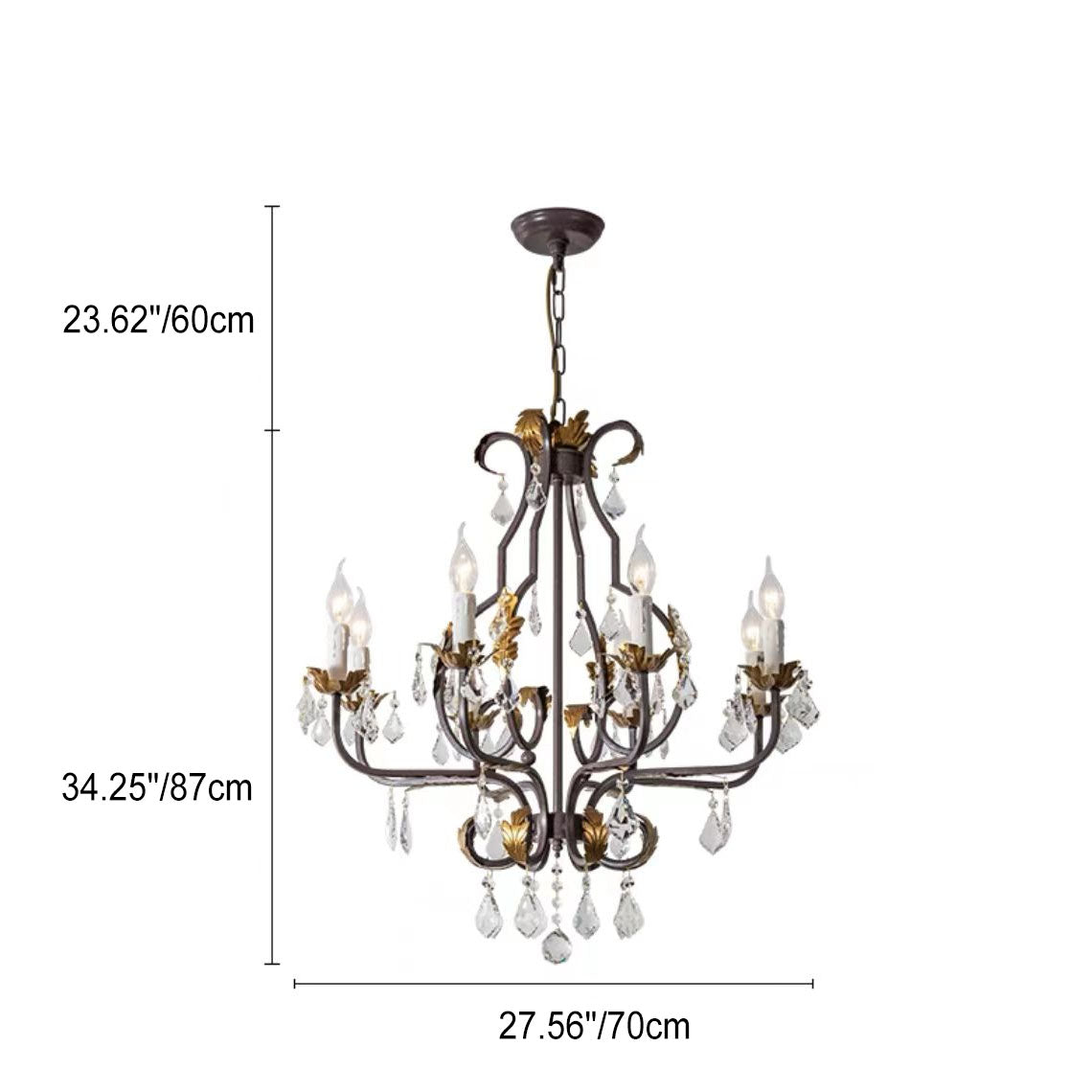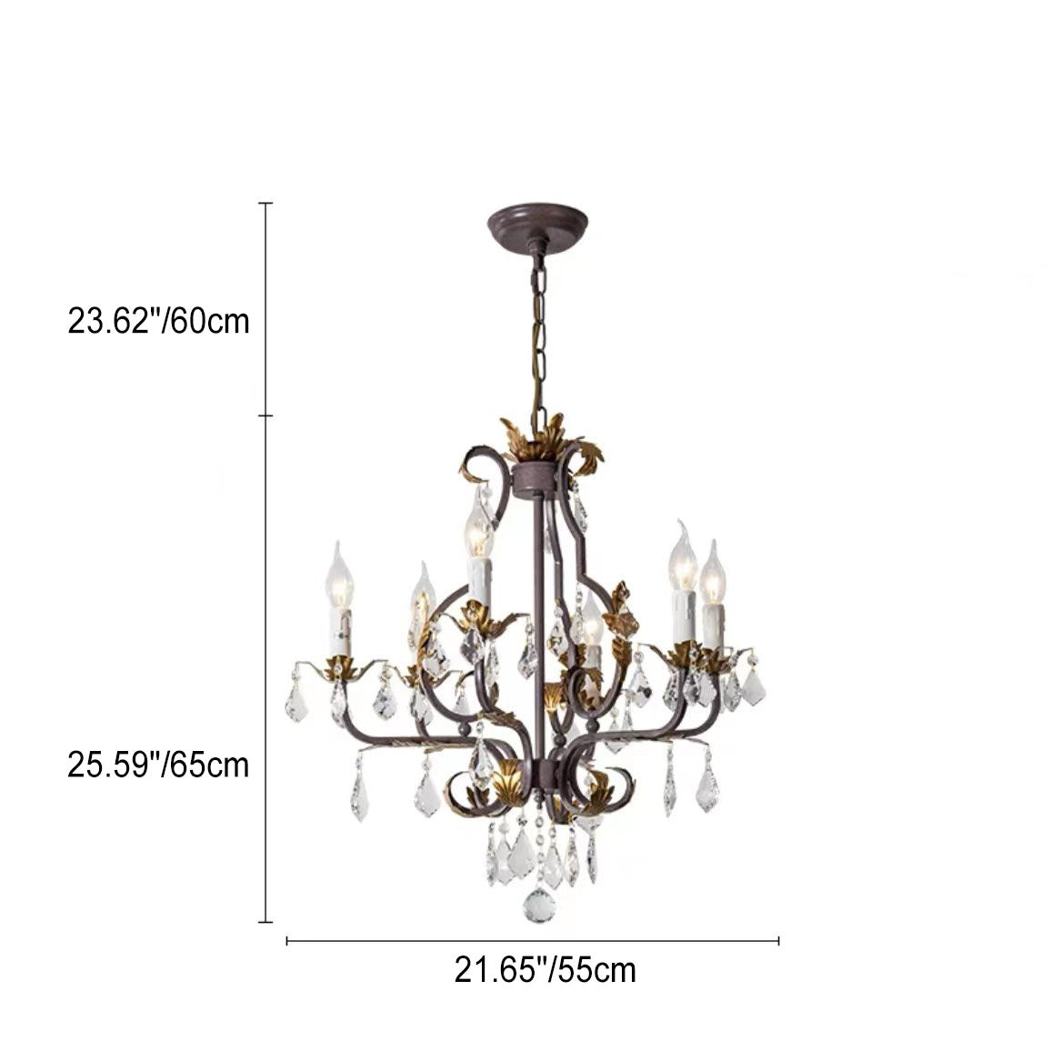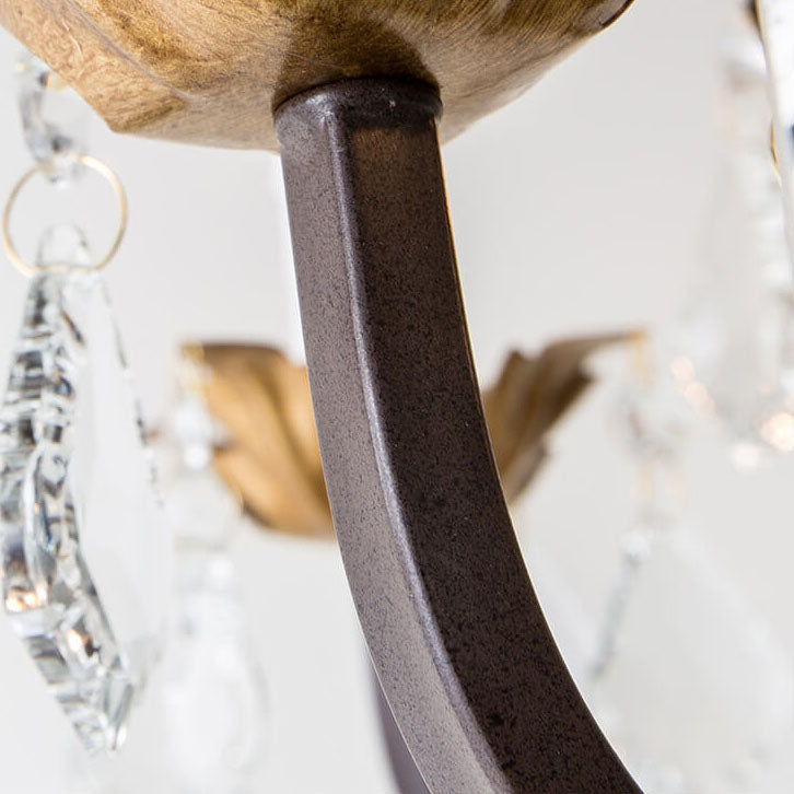 ثريا صناعية عتيقة من الكريستال مزودة بذراع مصباح حديدي صدئ و6/8 ضوء