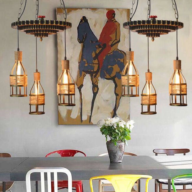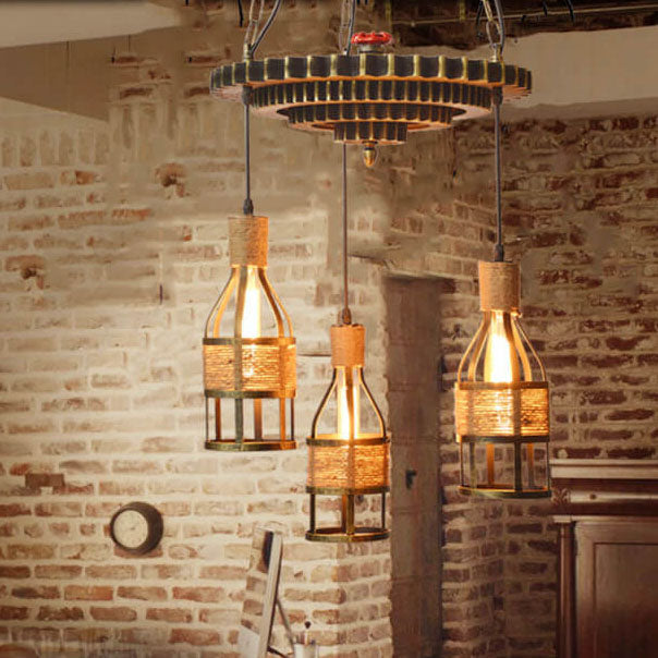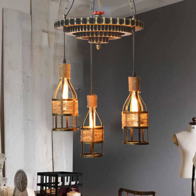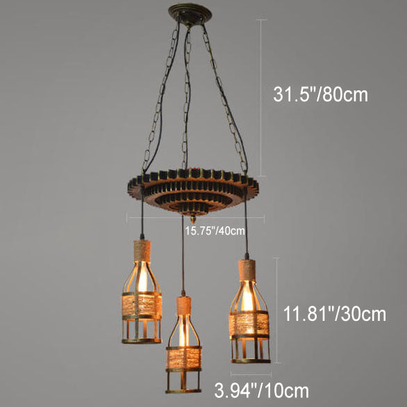 ثريا بثلاثة مصابيح على شكل قنينة من الخيوط الصناعية العتيقة