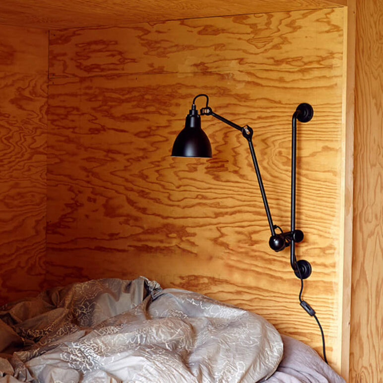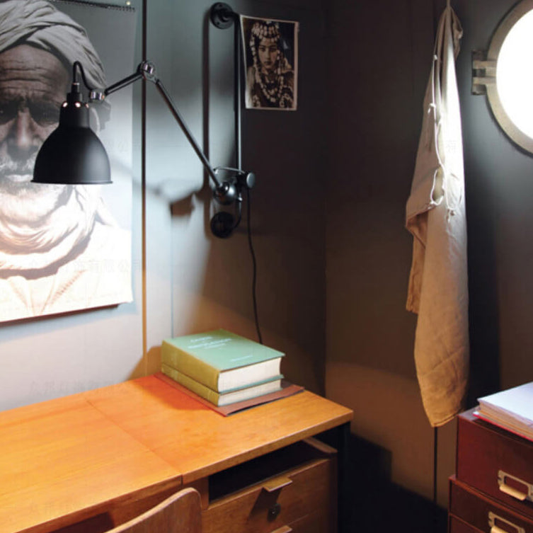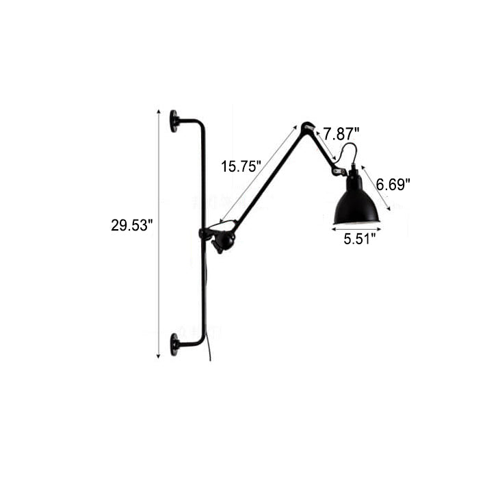 مصباح حائط صناعي عتيق من الحديد بذراع متأرجح طويل وإضاءة واحدة