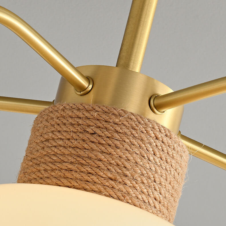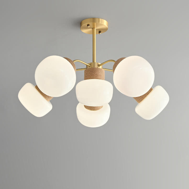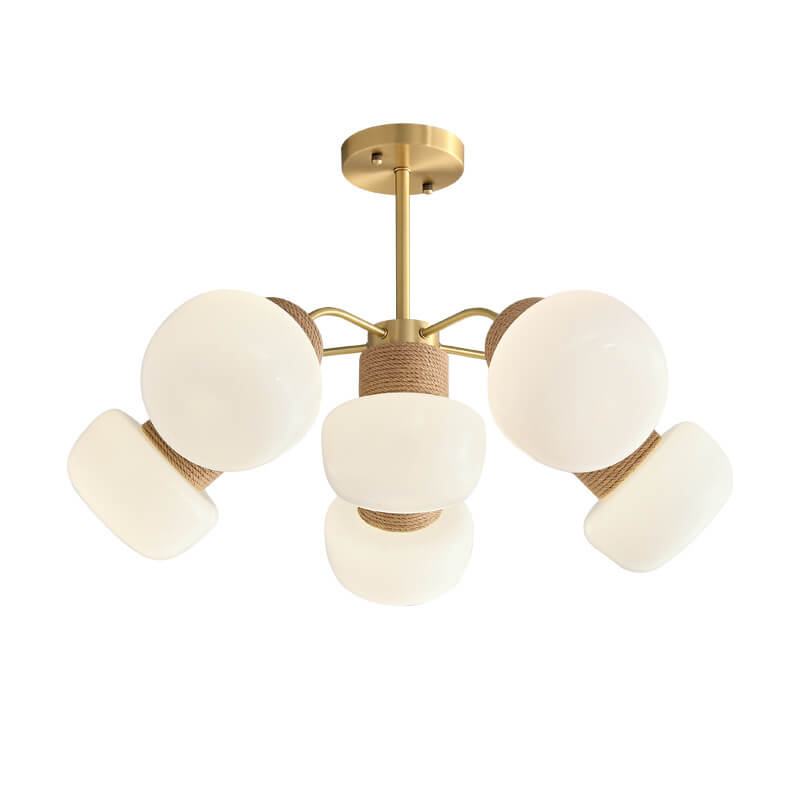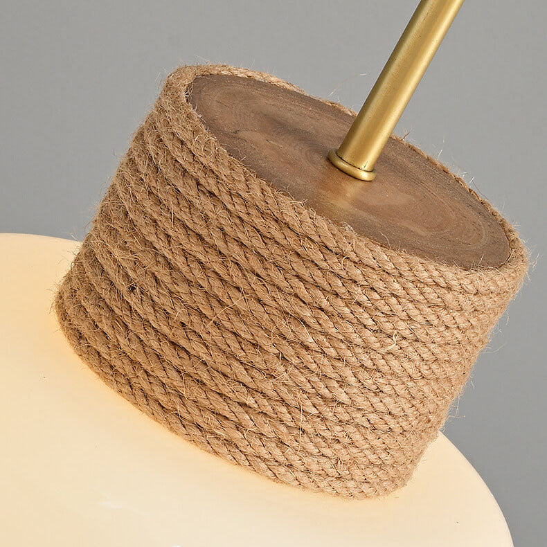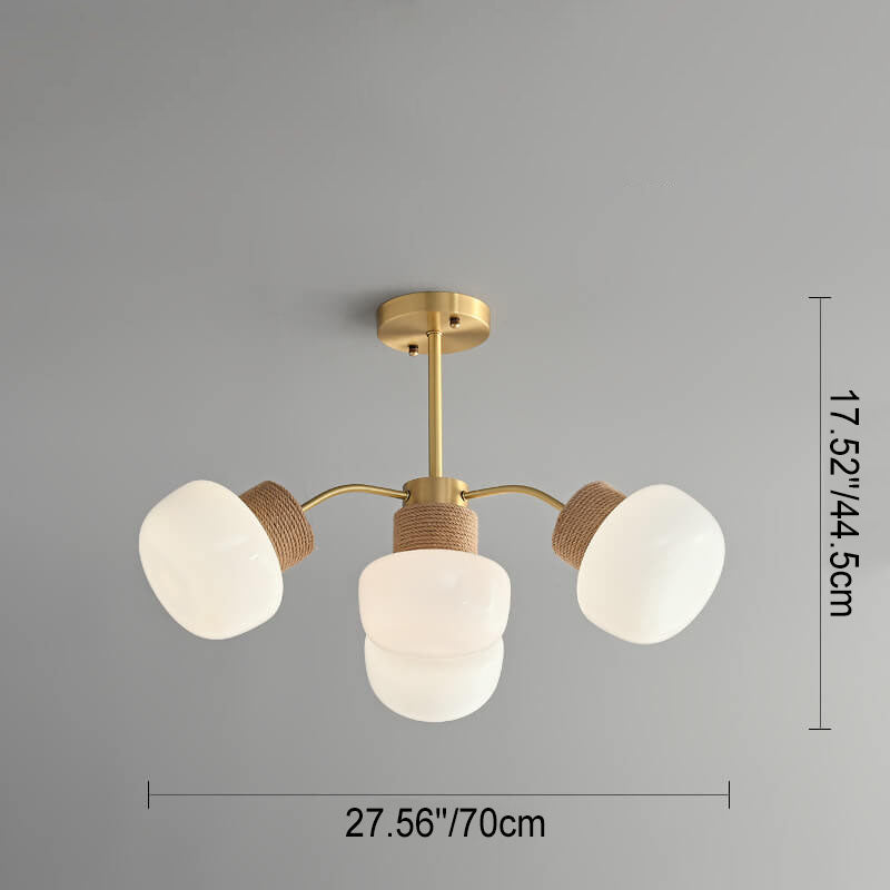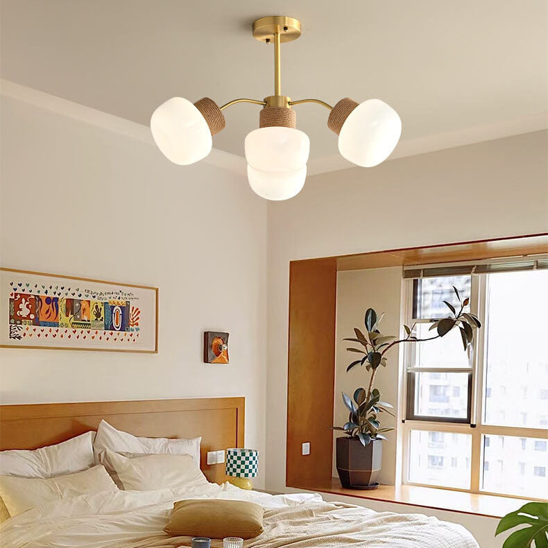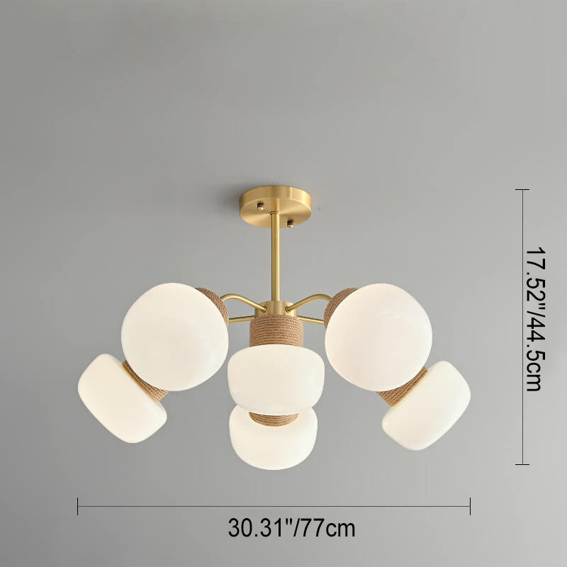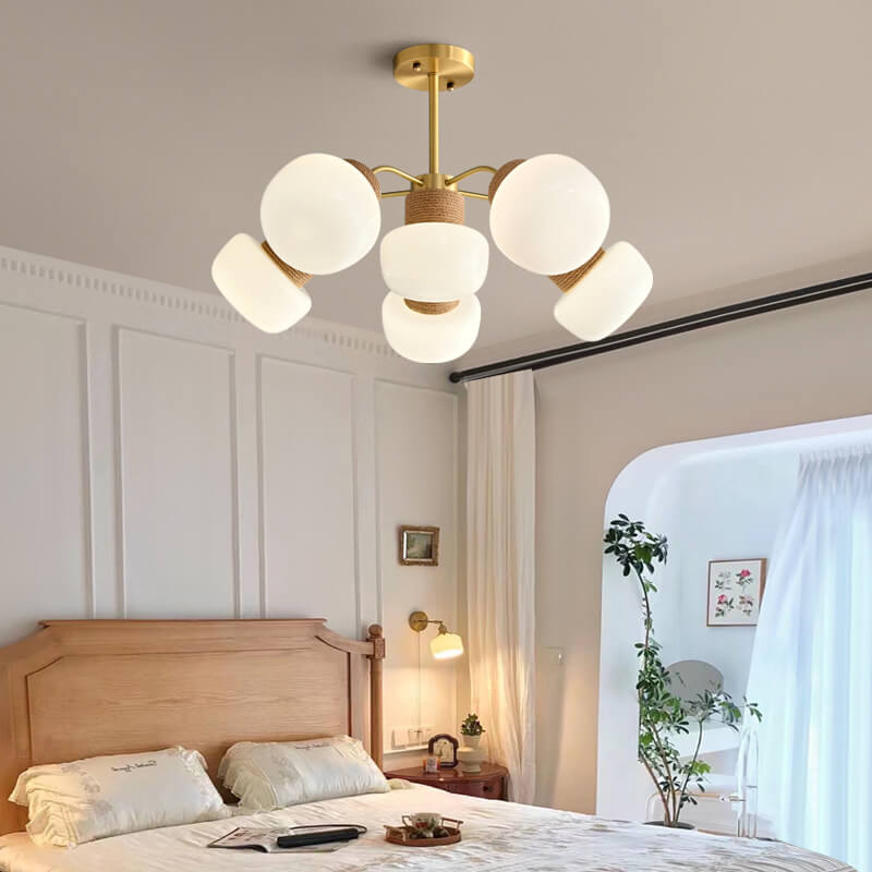ثريا يابانية بسيطة مصنوعة من جرة زجاجية وأسطوانة منسوجة من الخيزران، مزودة بأربعة وستة مصابيح
