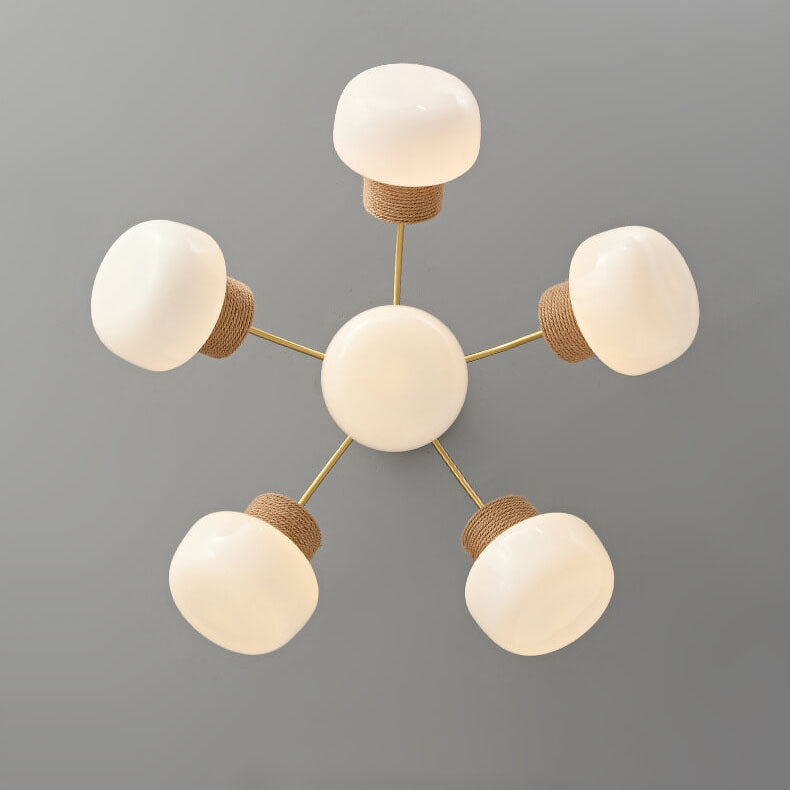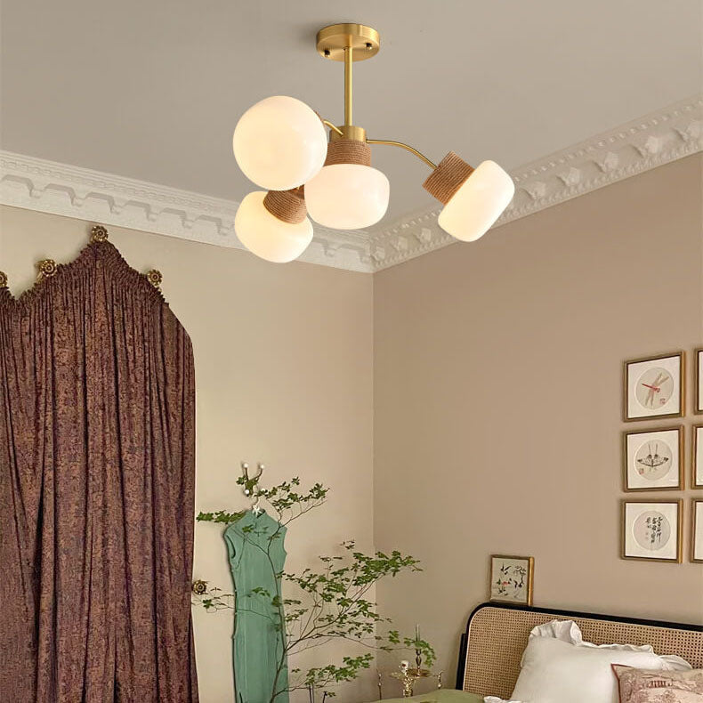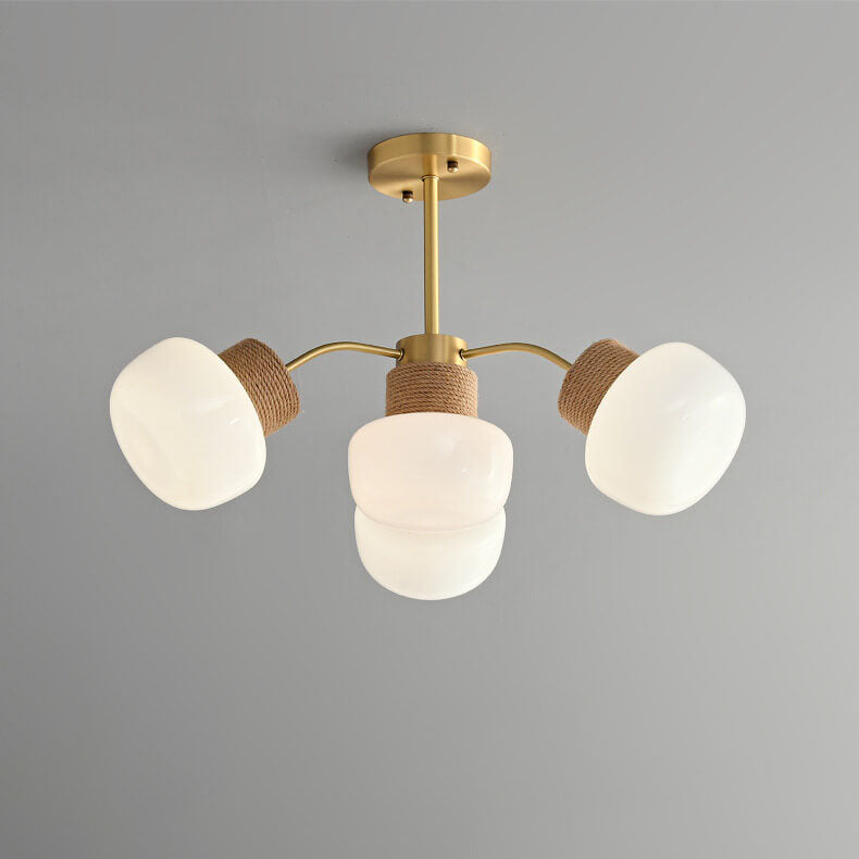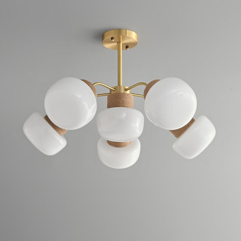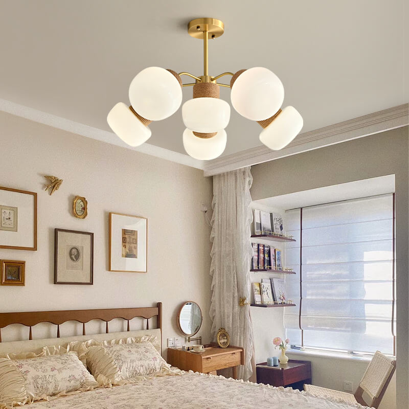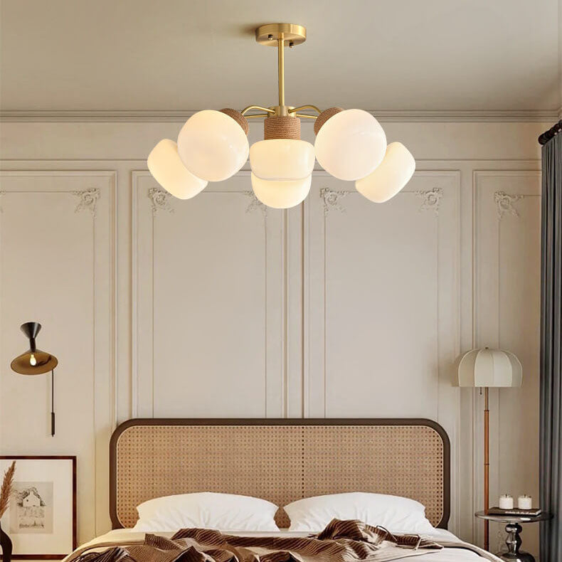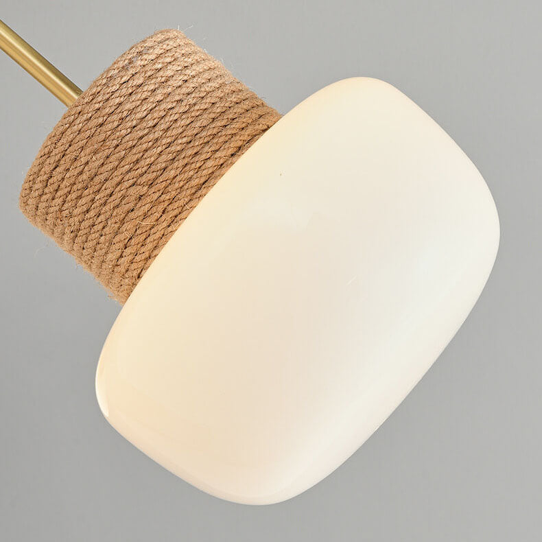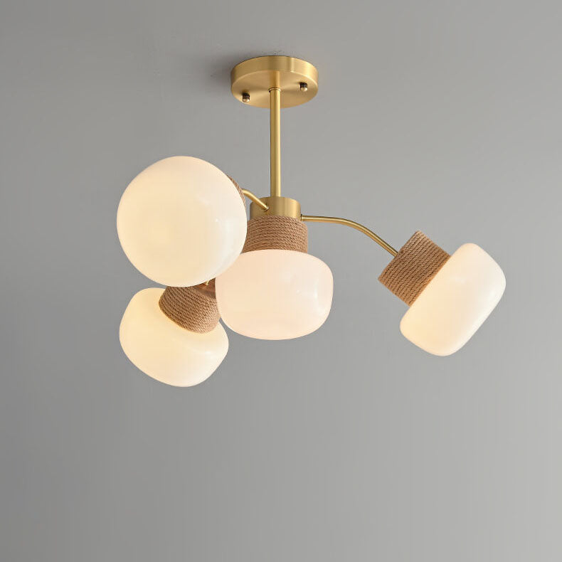 ثريا يابانية بسيطة مصنوعة من جرة زجاجية وأسطوانة منسوجة من الخيزران، مزودة بأربعة وستة مصابيح
