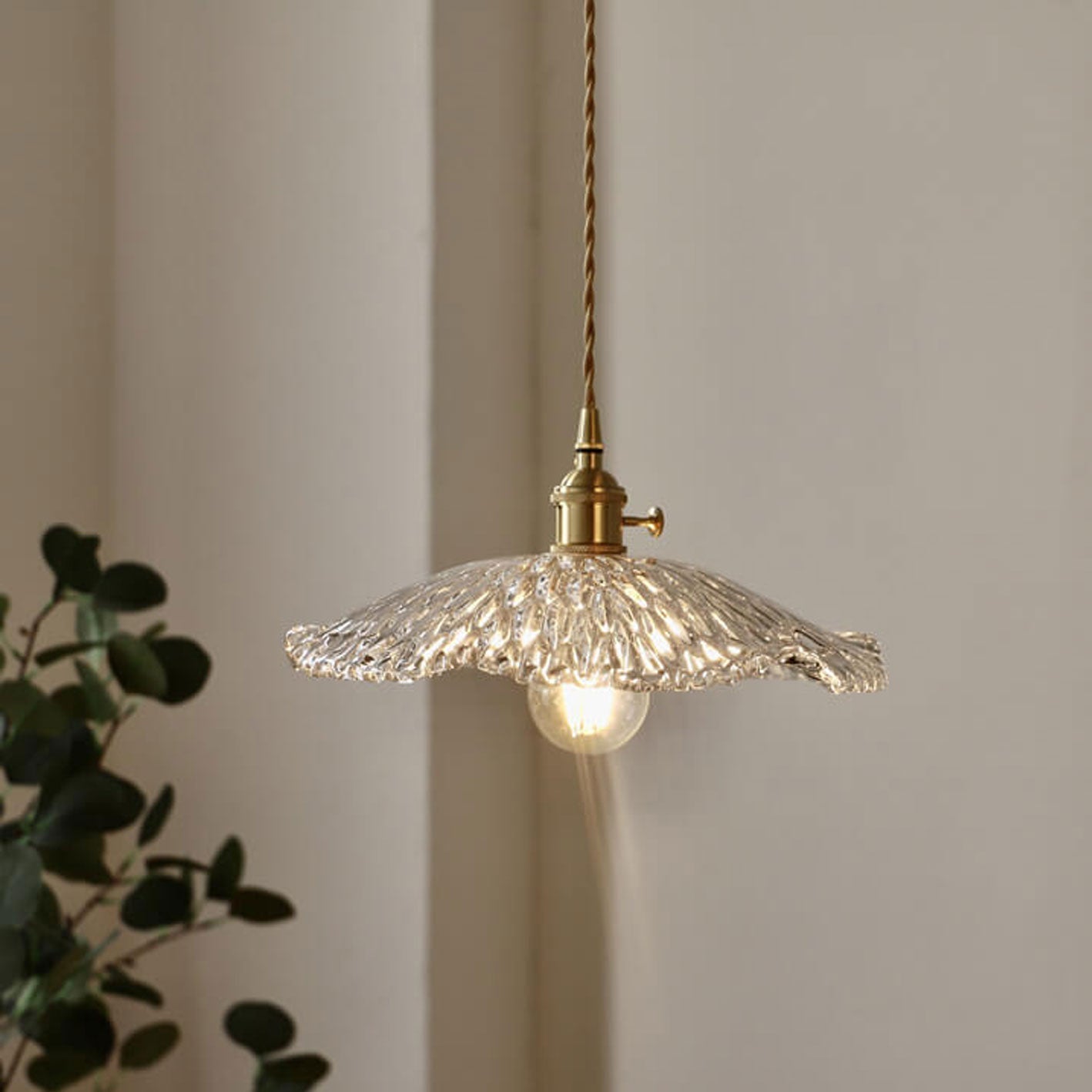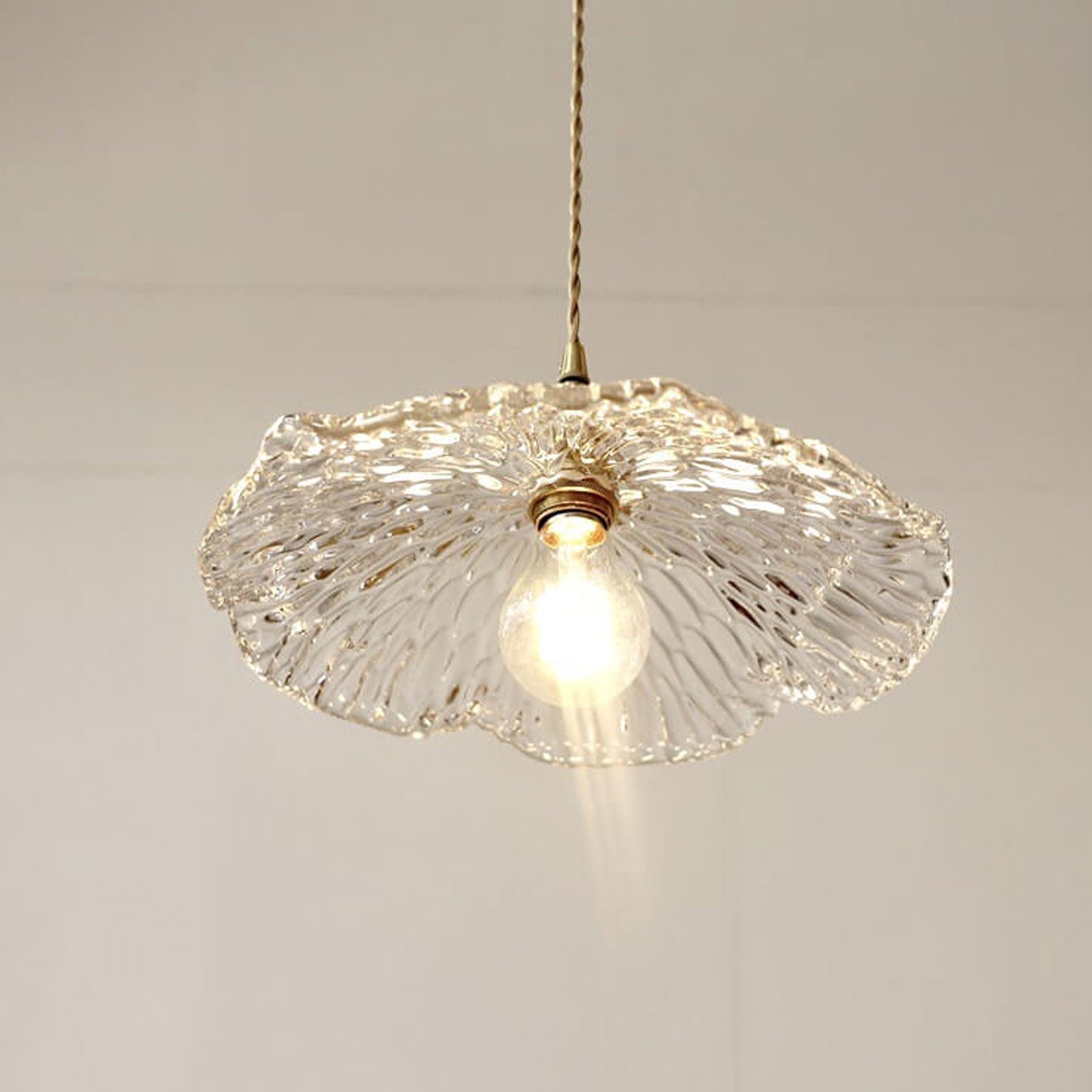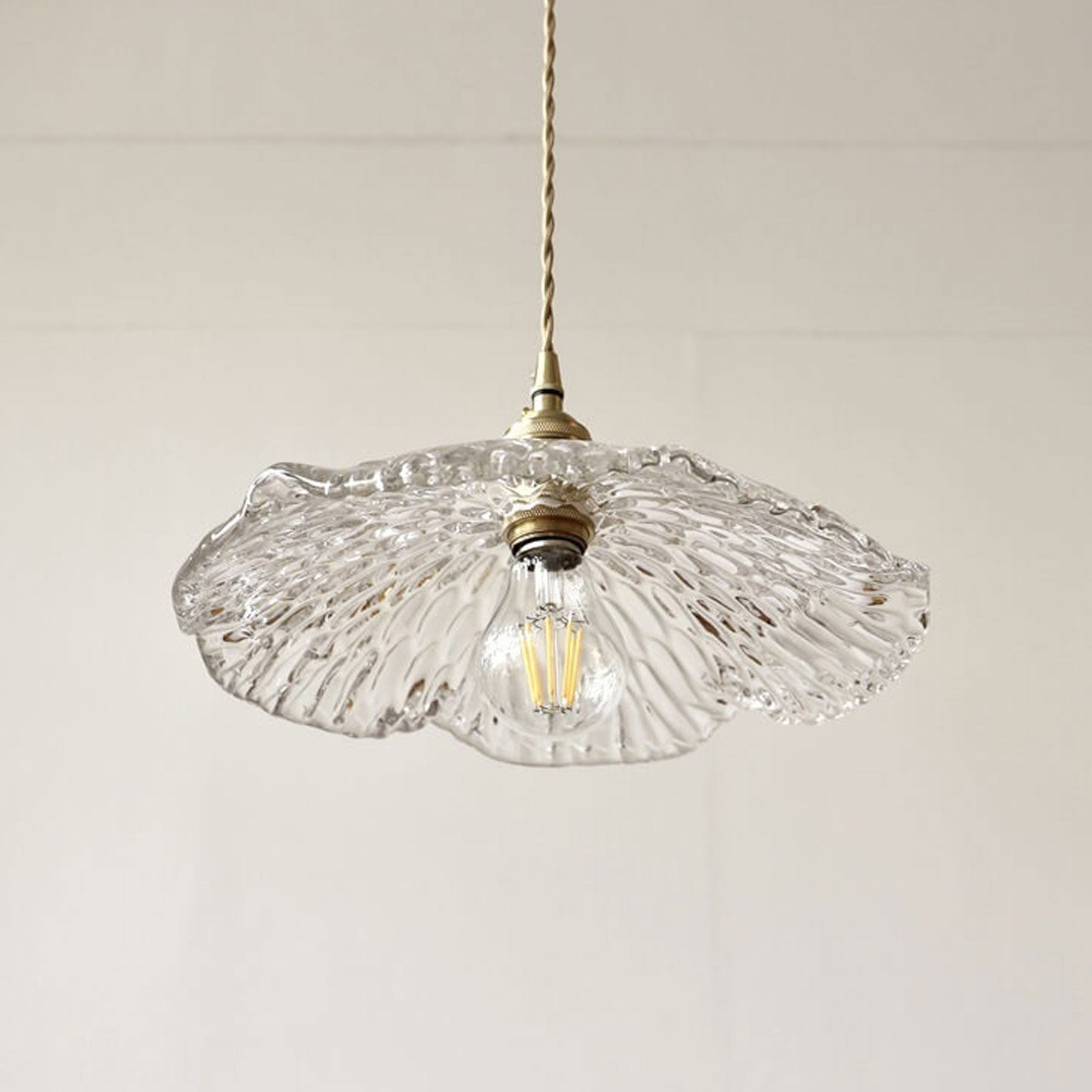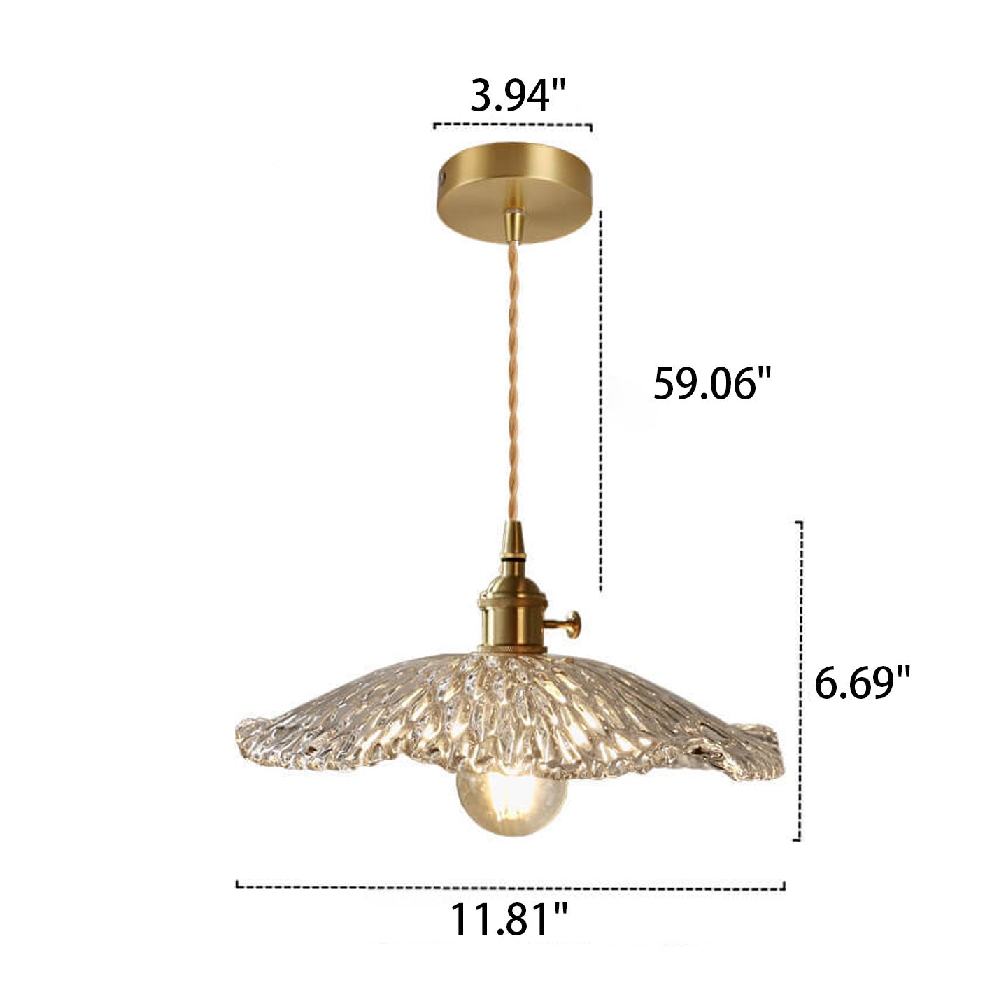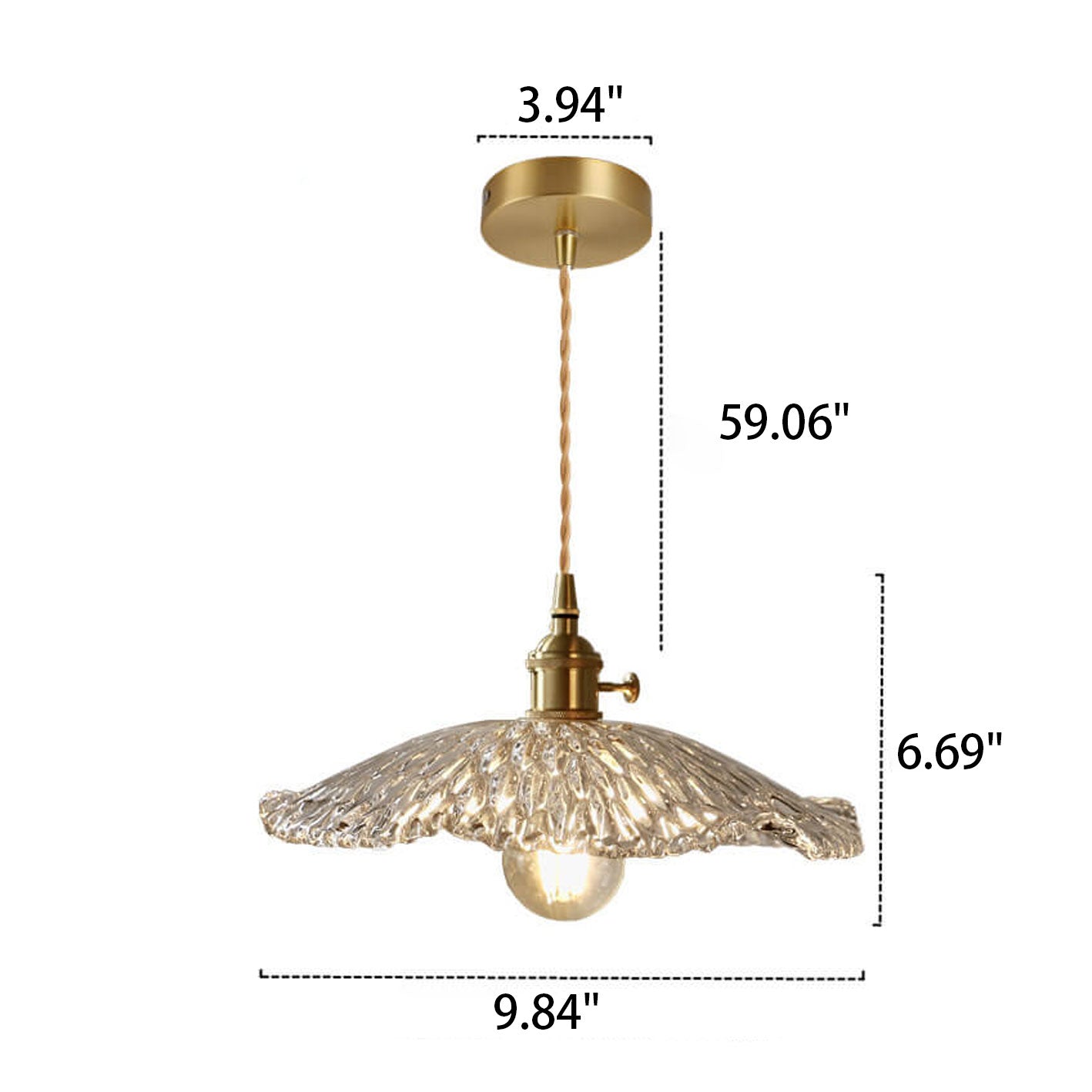 مصباح معلق على شكل ورقة لوتس زجاجية من النحاس على الطراز الياباني، مزود بمصباح واحد