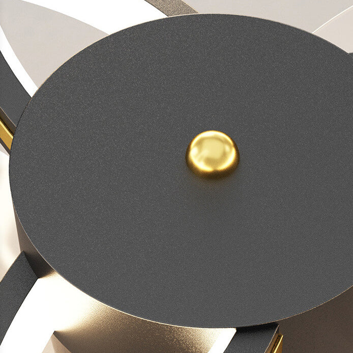 مروحة LED فاخرة من الأكريليك بتصميم ثلاثي الحلقات مثبتة على الحائط