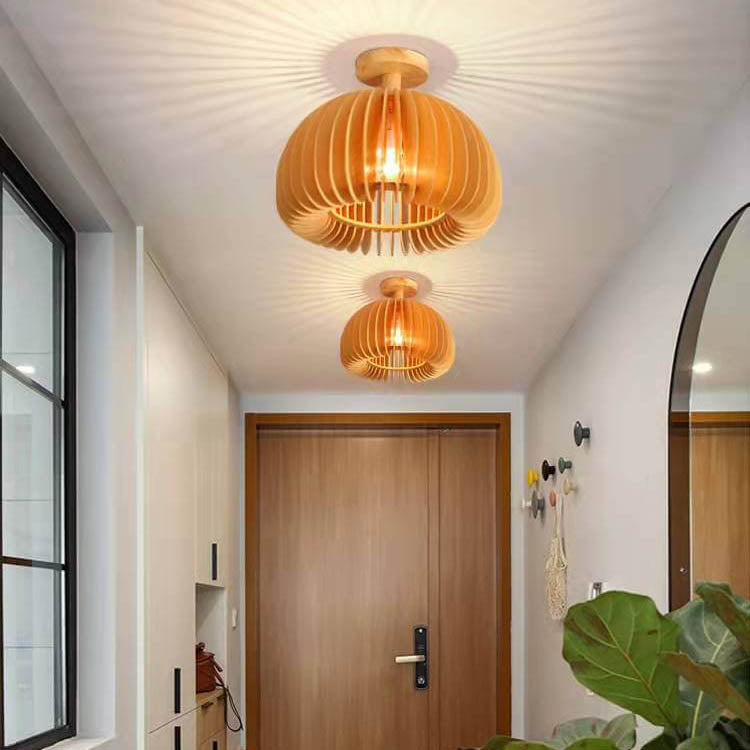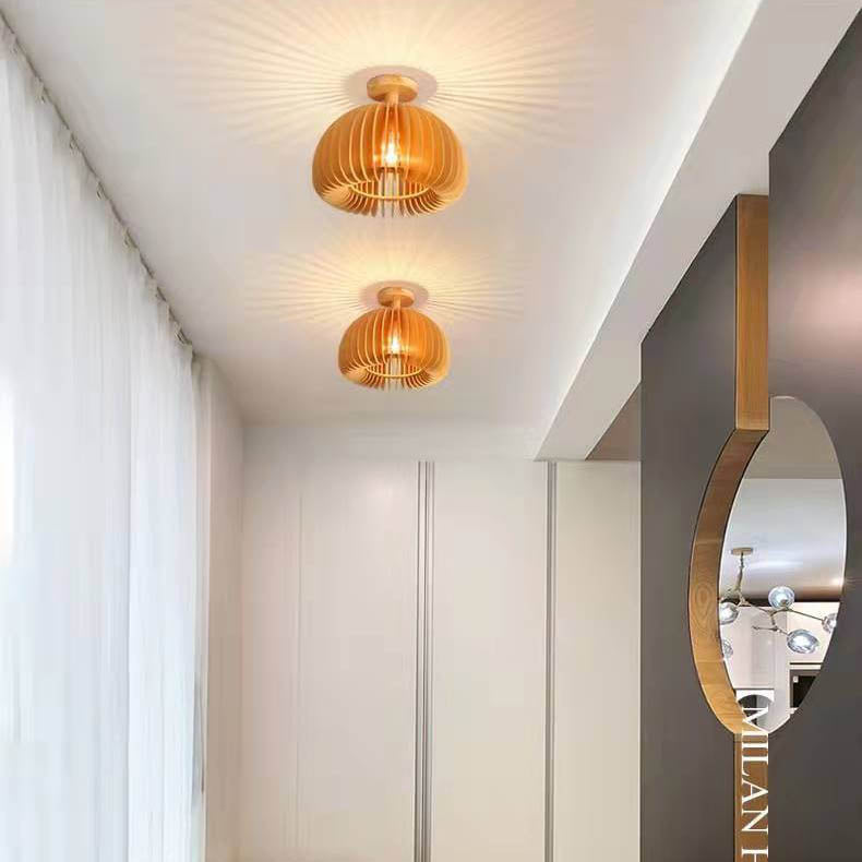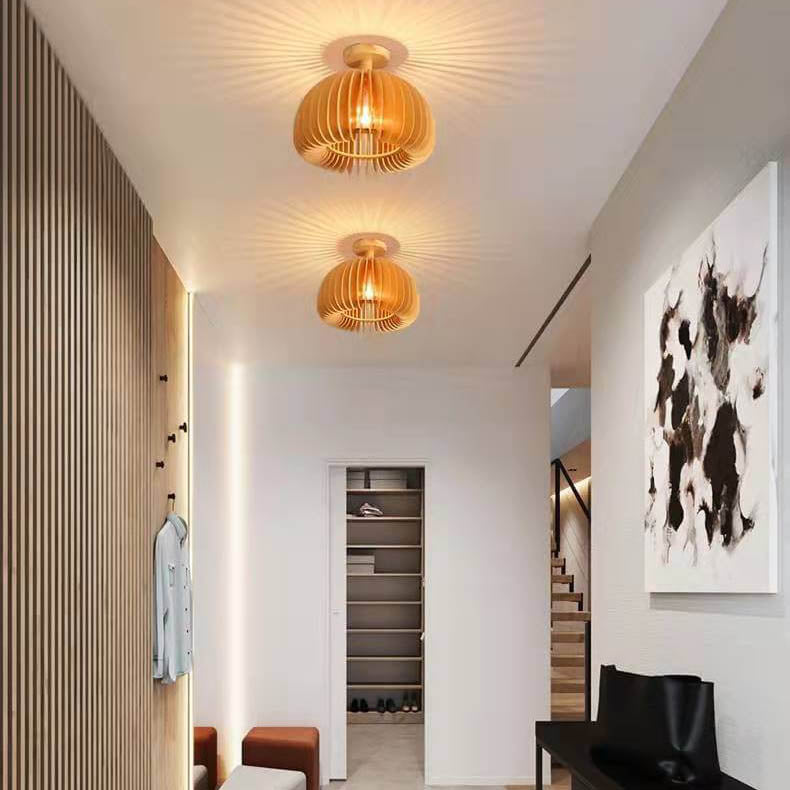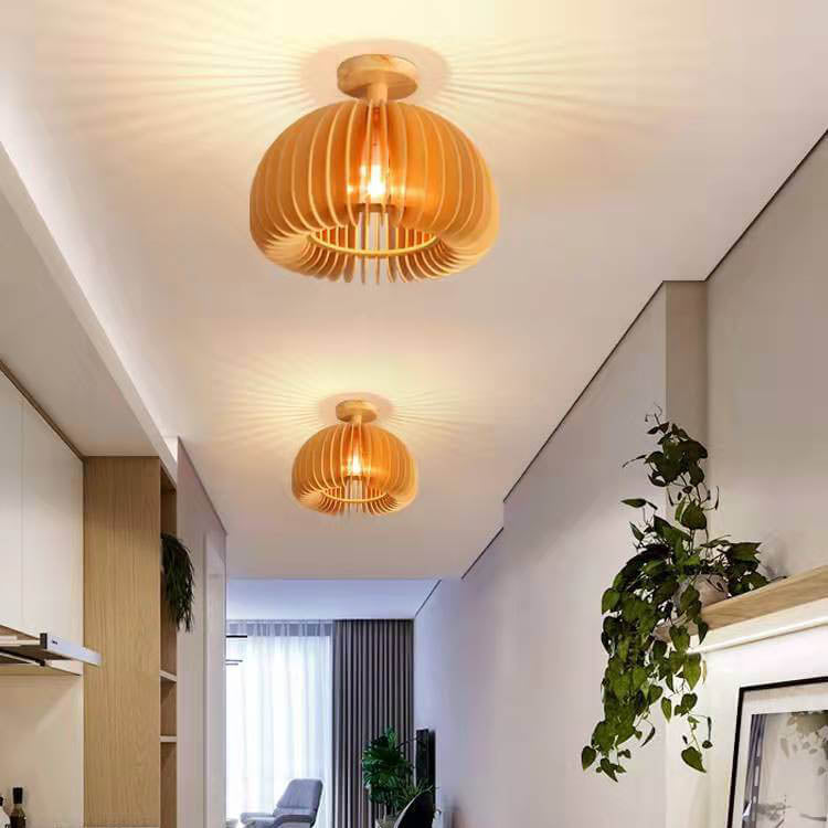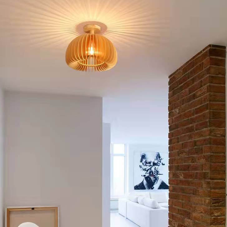 مصباح سقف LED شبه مسطح بتصميم قرع خشبي بسيط، مزود بمصباح واحد