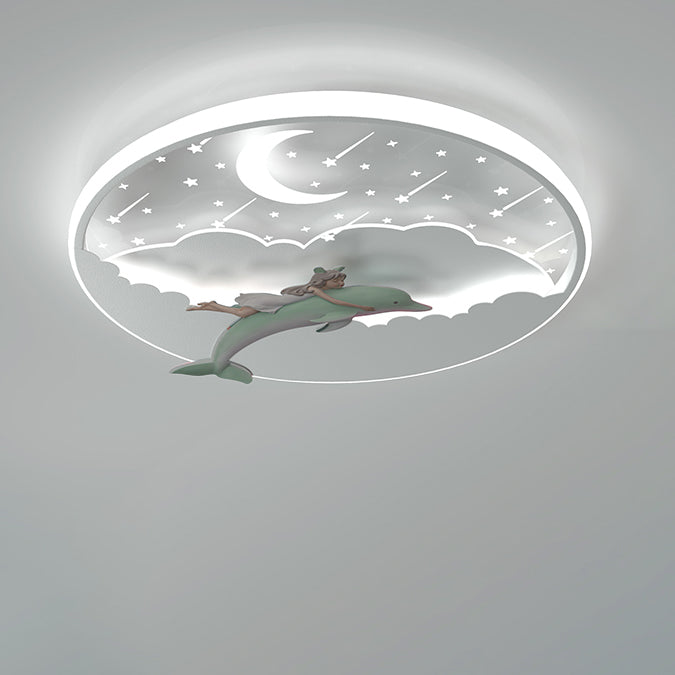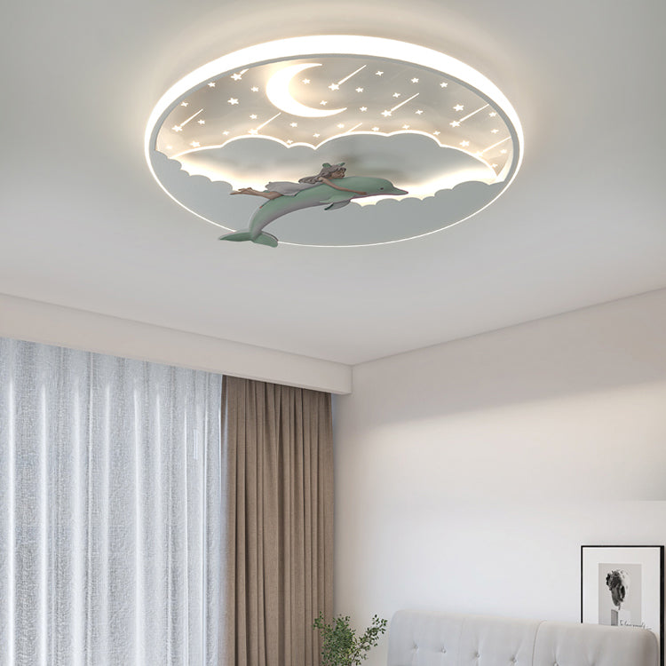 مصباح سقف LED دائري من الأكريليك على شكل دولفين بتصميم عصري لغرفة المعيشة