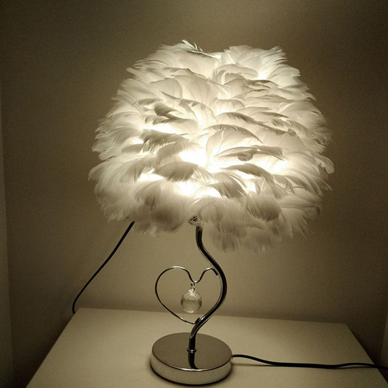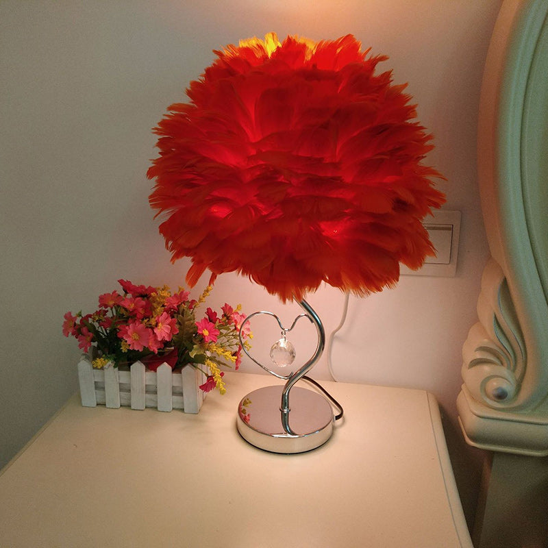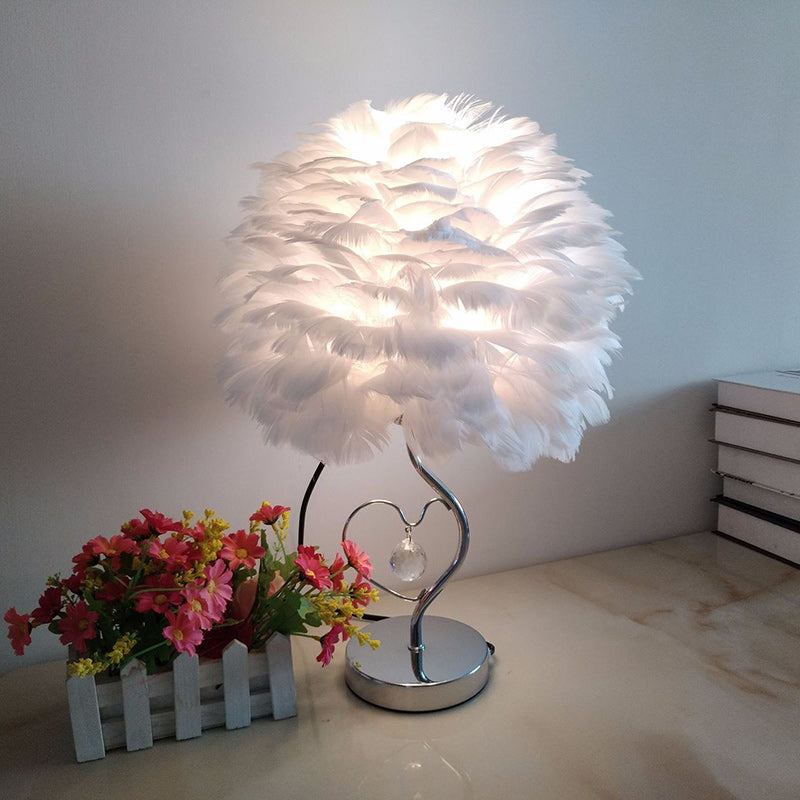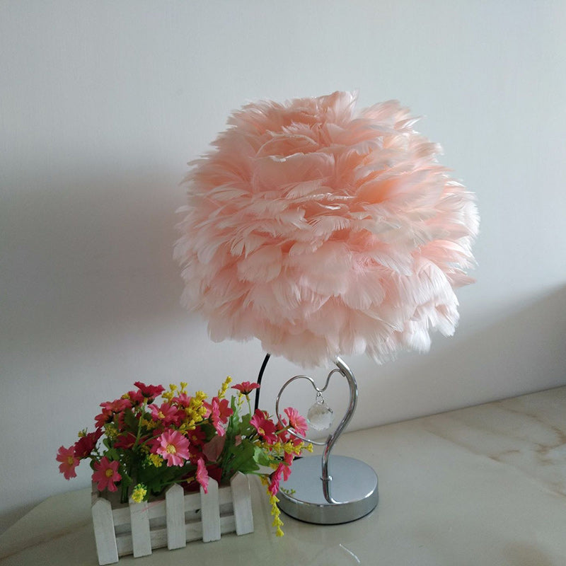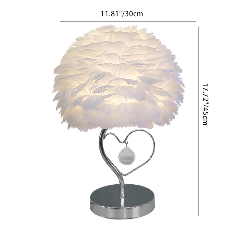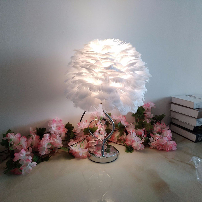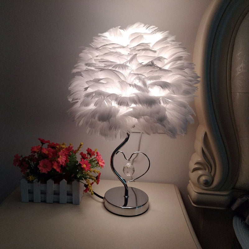 Modern Art Deco Heart Feather Iron Rod 1-Light Table Lamp For Bedroom