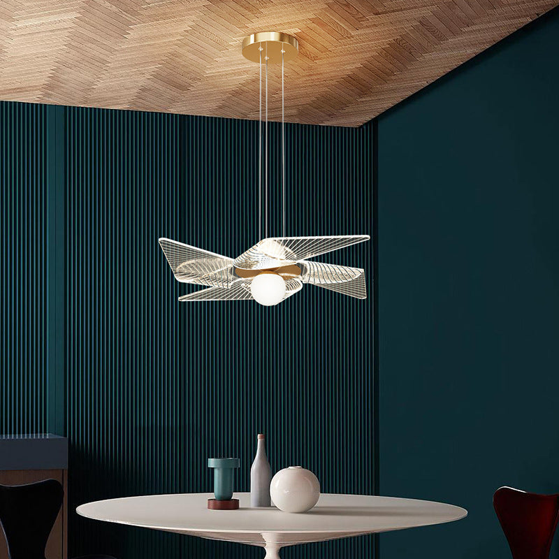 ثريا LED مصنوعة من الحديد الأكريليكي على شكل دولاب هواء بتصميم آرت ديكو حديث لغرفة النوم