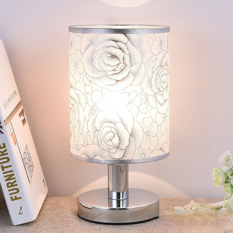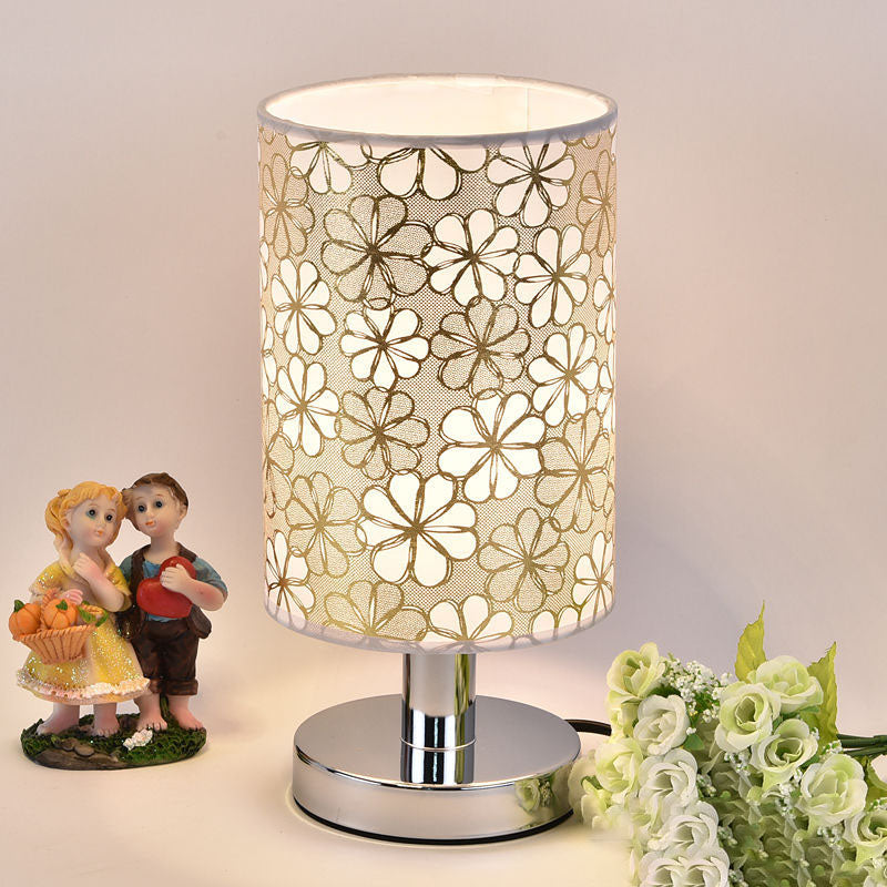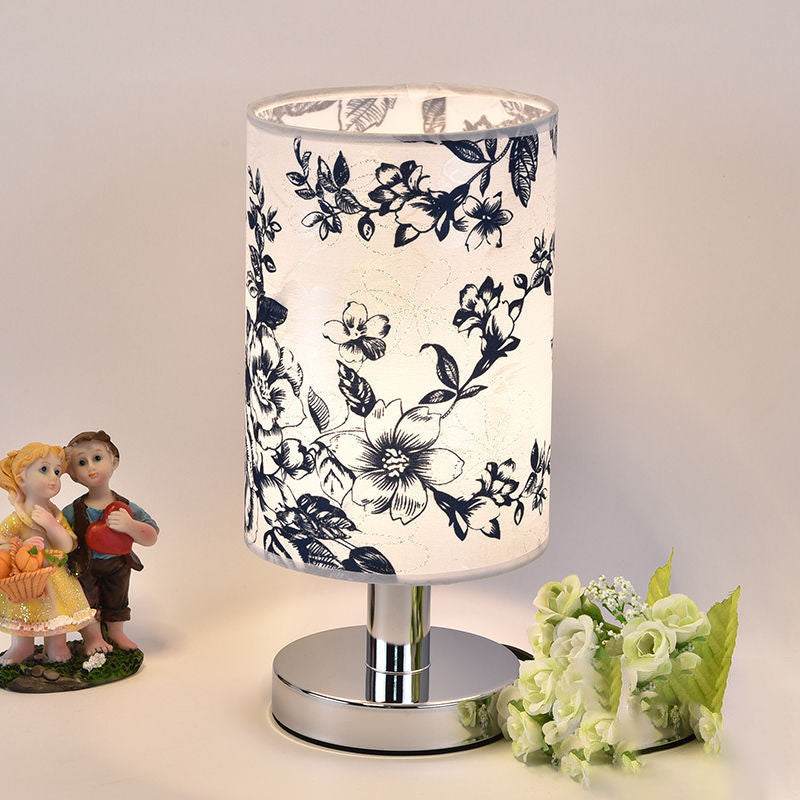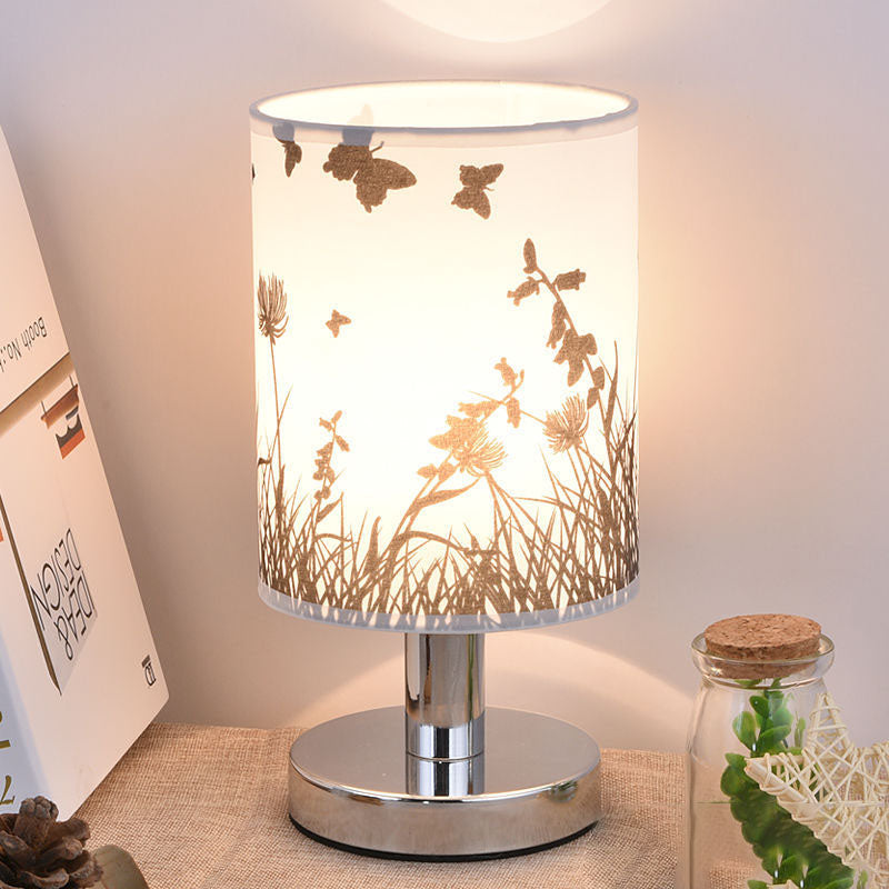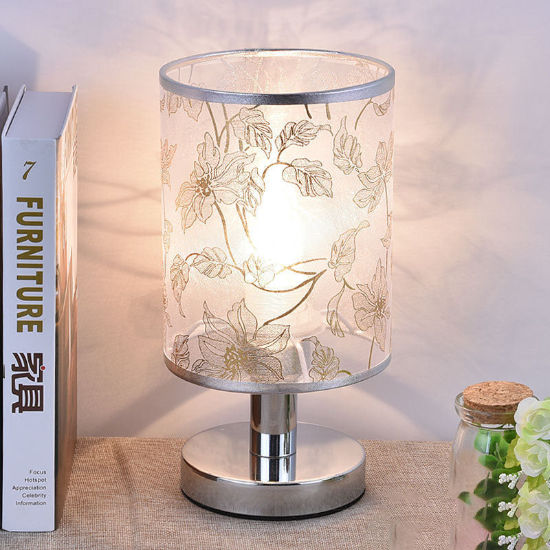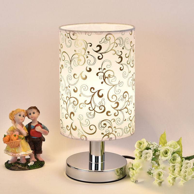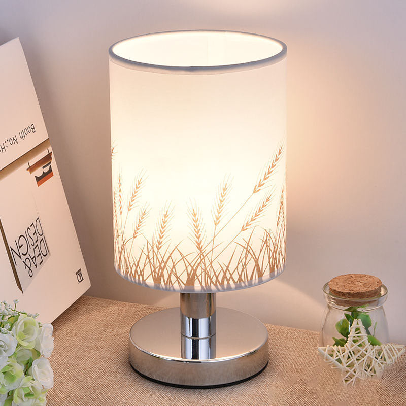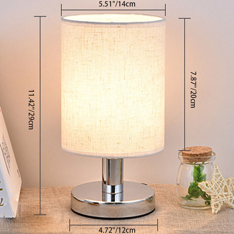 Modern Art Deco Round Hardware Fabric 1-Light Table Lamp For Bedroom