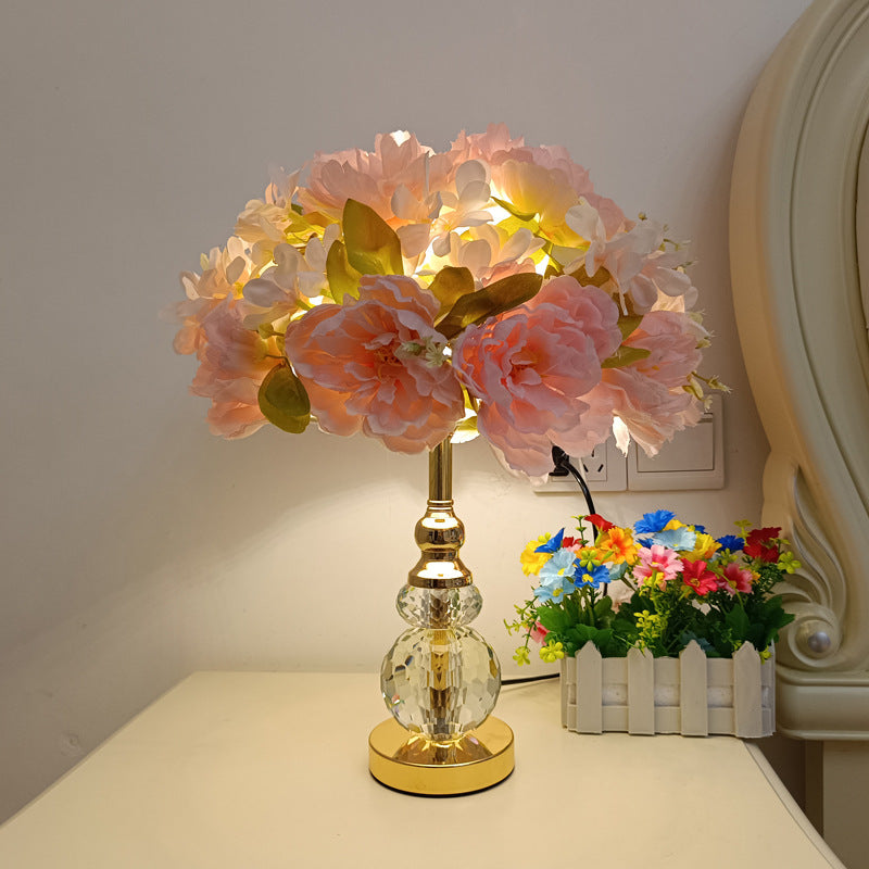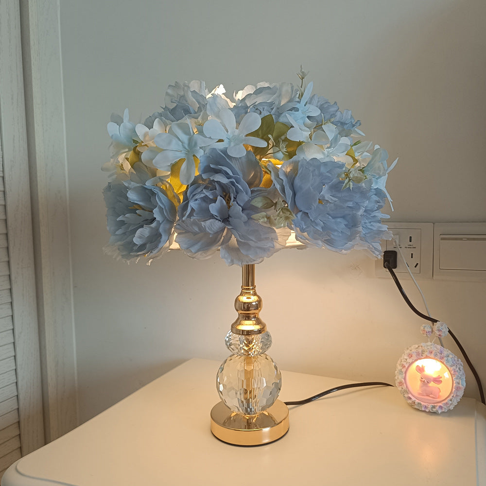 Modern Art Deco Round Metal Rose Crystal Fabric 1-Light Table Lamp For Bedroom