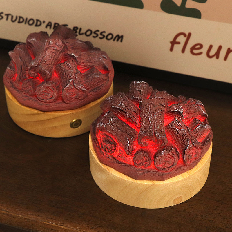 Modern Art Deco Round Wood Resin LED Table Lamp For Living Room