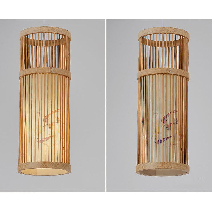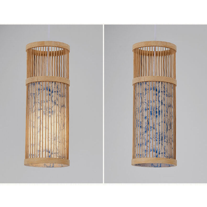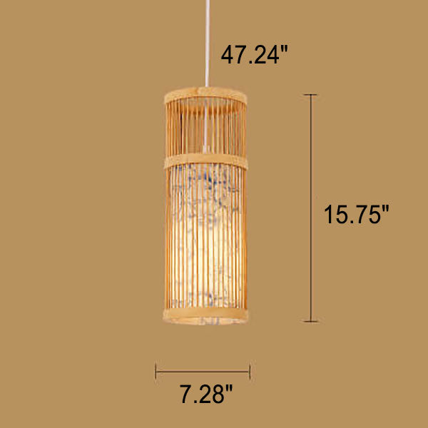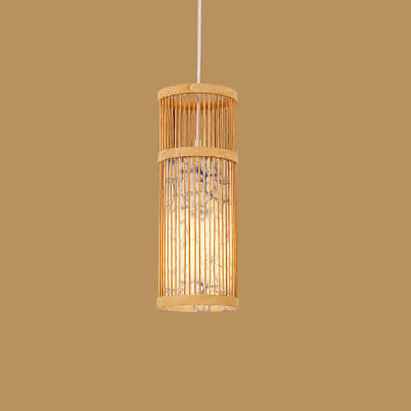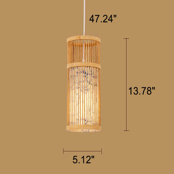 مصباح معلق صيني حديث من الخيزران المنسوج بأسطوانة طويلة وإضاءة واحدة