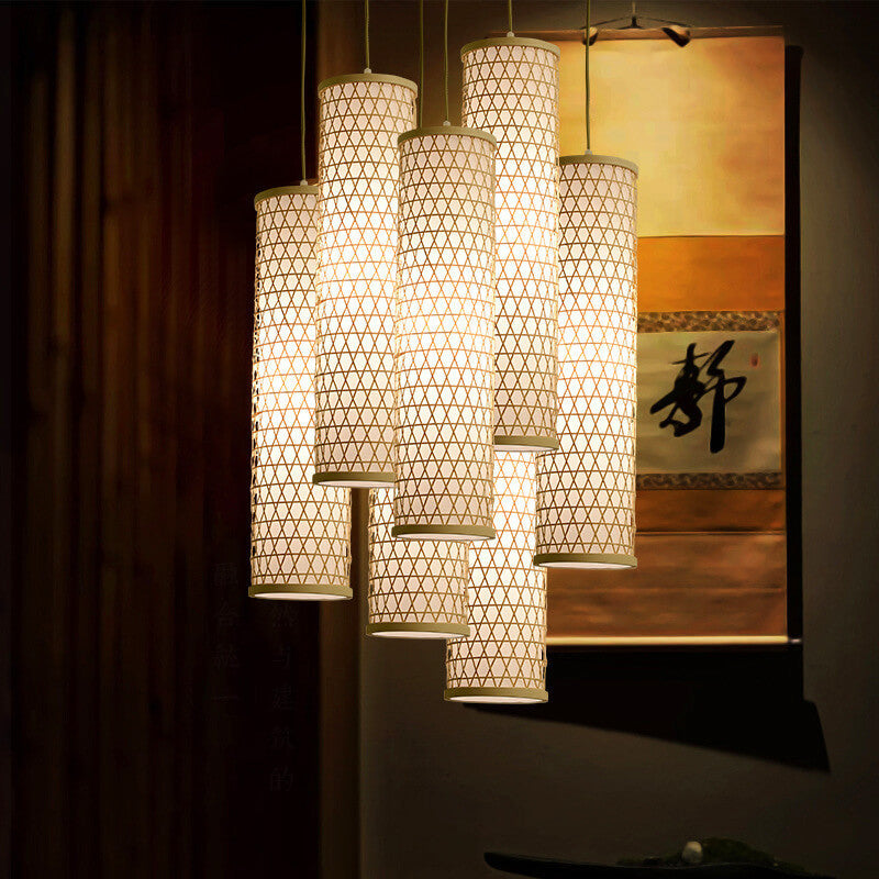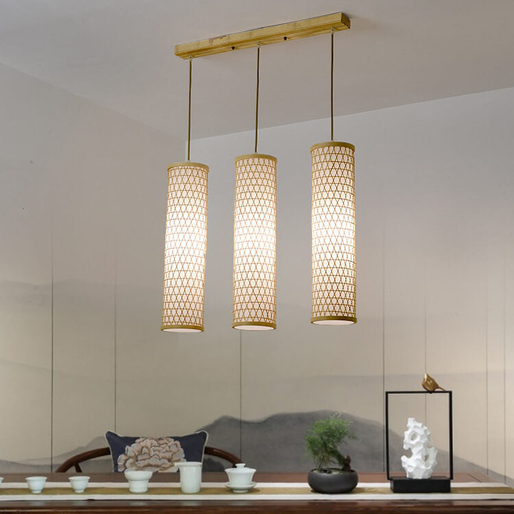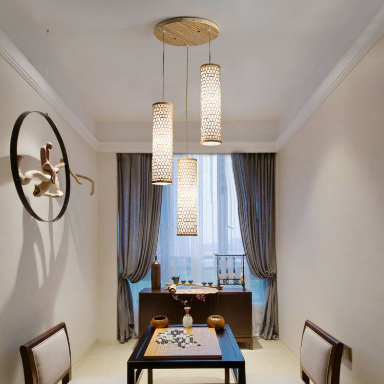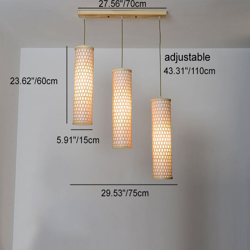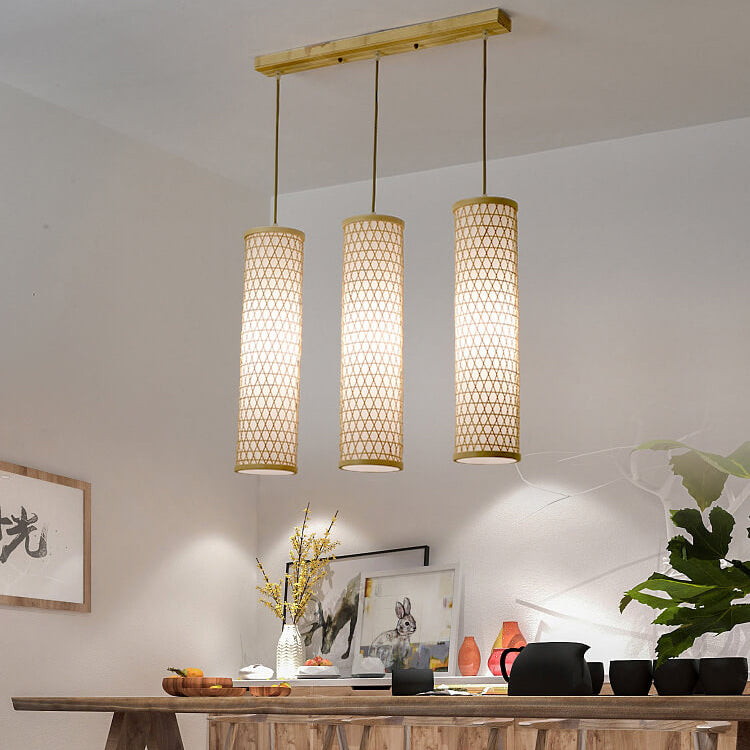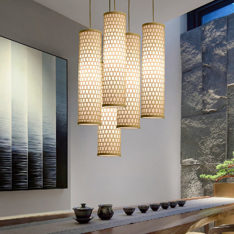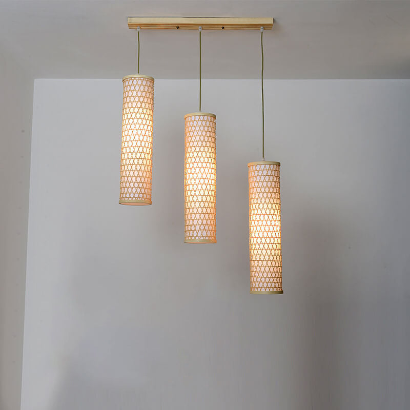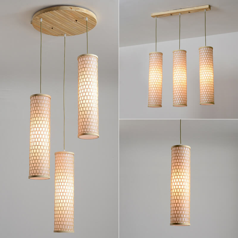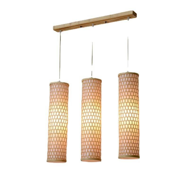 ثريا جزيرة حديثة مصنوعة من أسطوانة PVC منسوجة من الخيزران الصيني بإضاءة 1/3