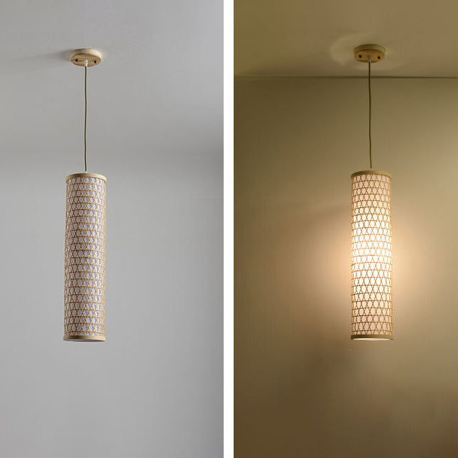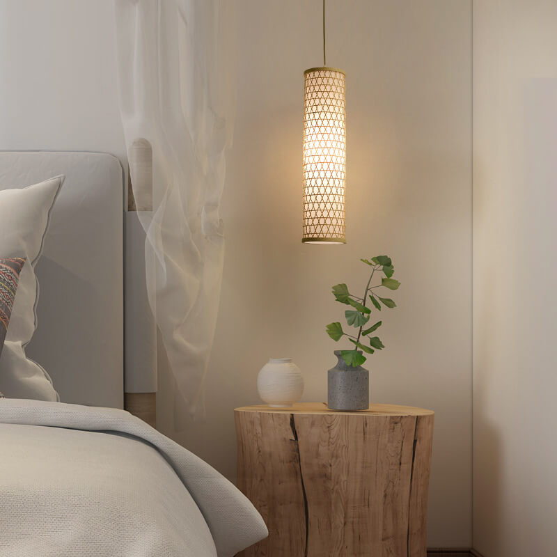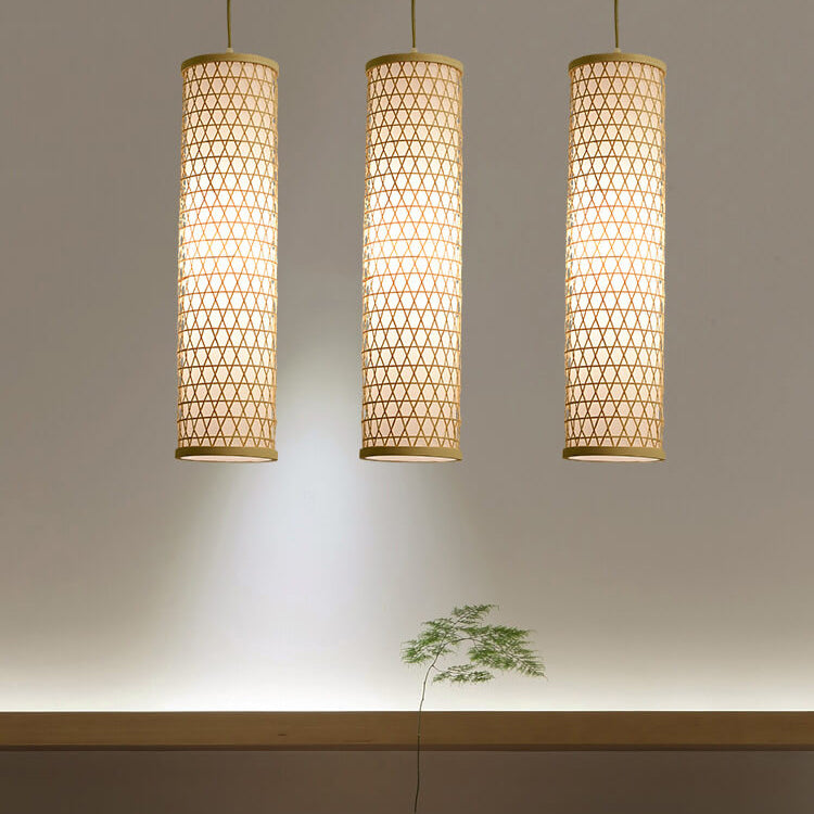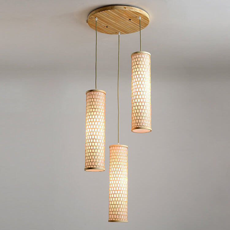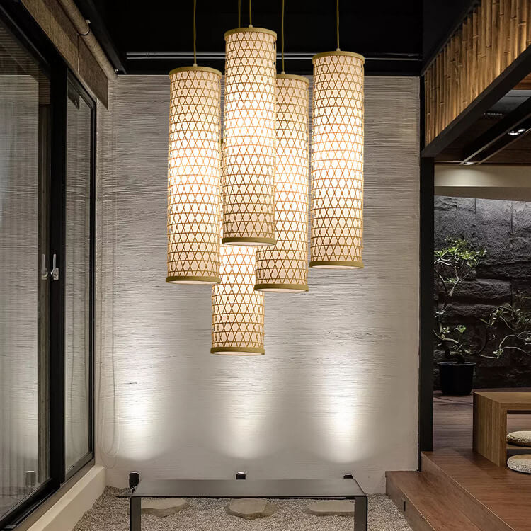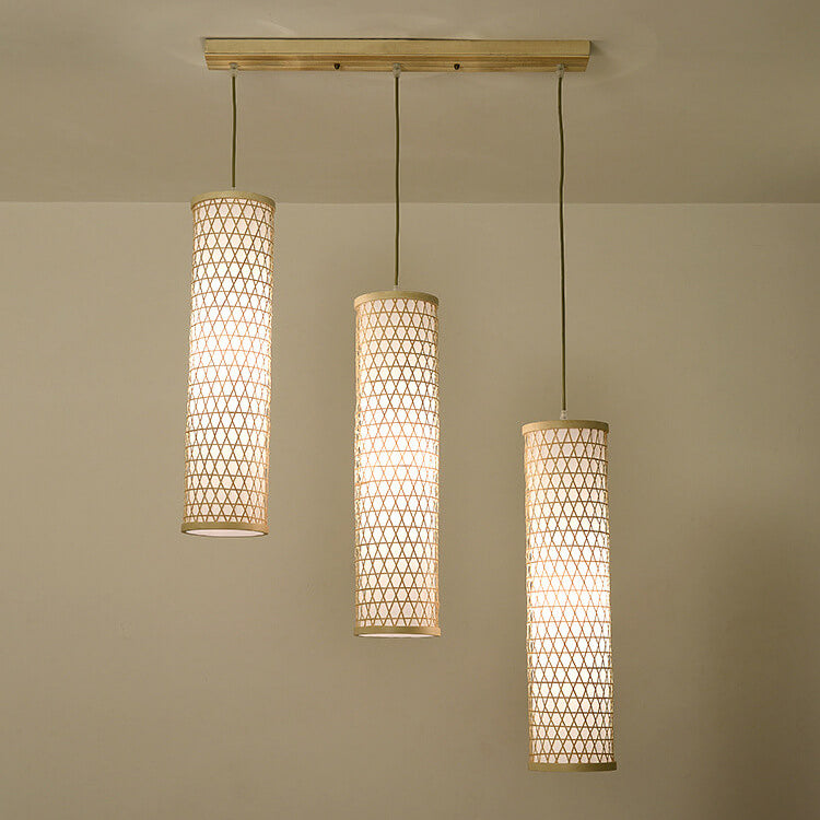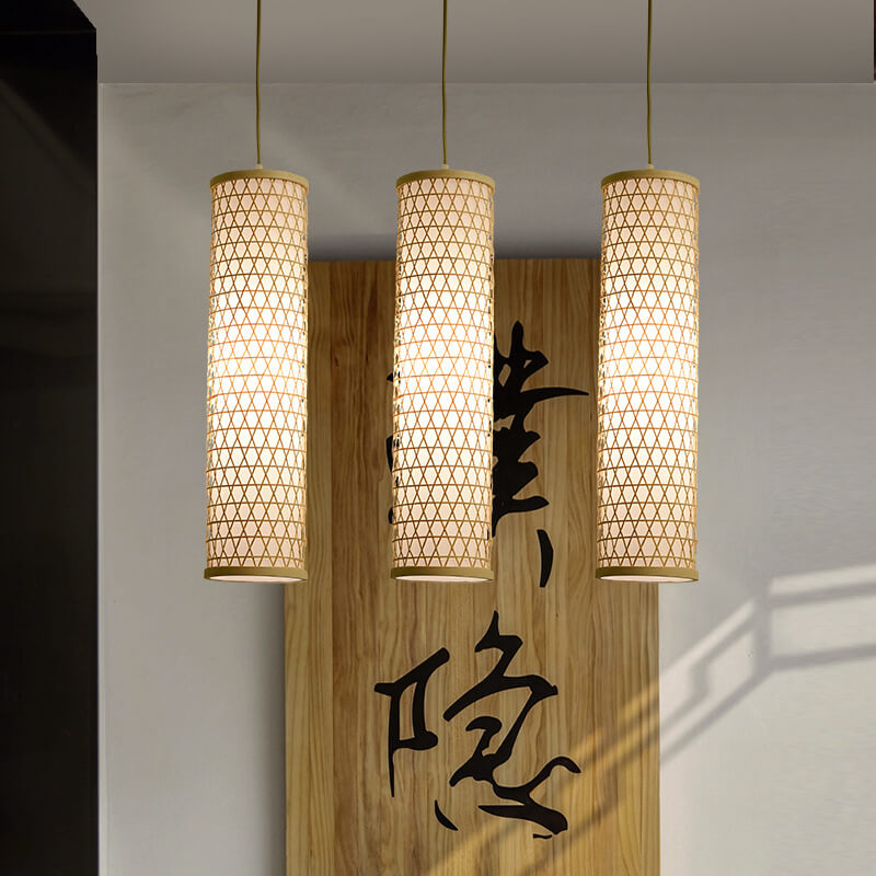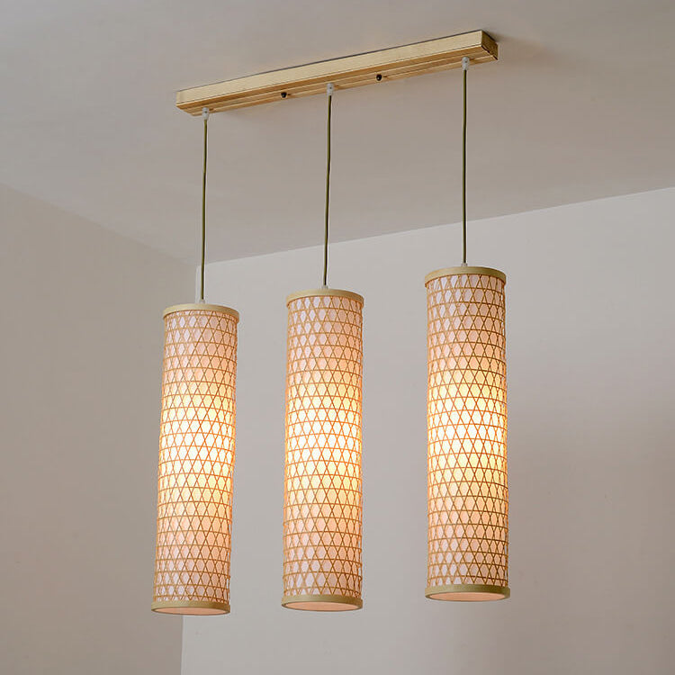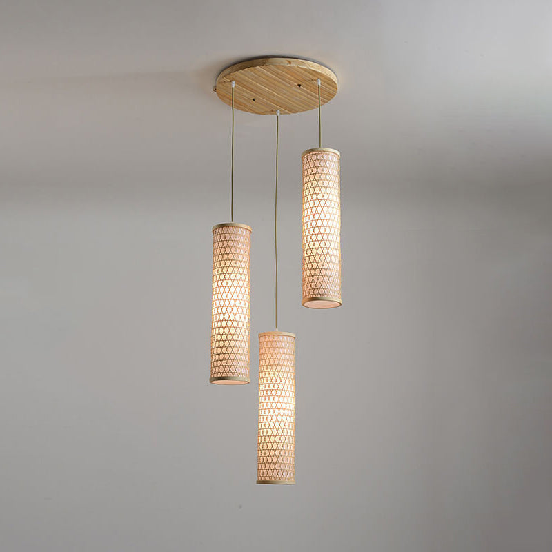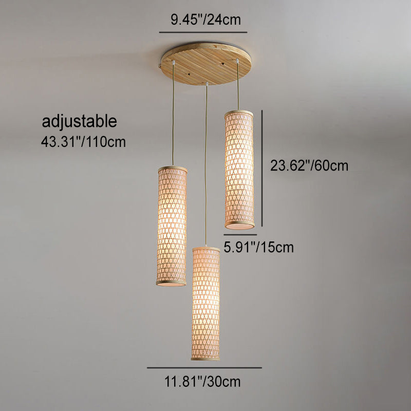 ثريا جزيرة حديثة مصنوعة من أسطوانة PVC منسوجة من الخيزران الصيني بإضاءة 1/3