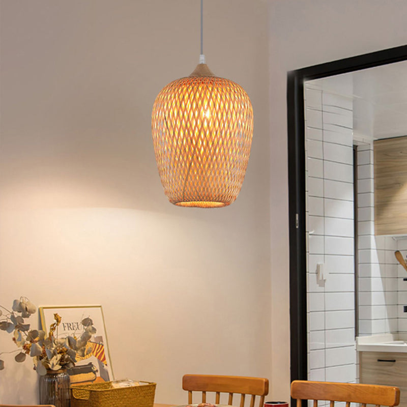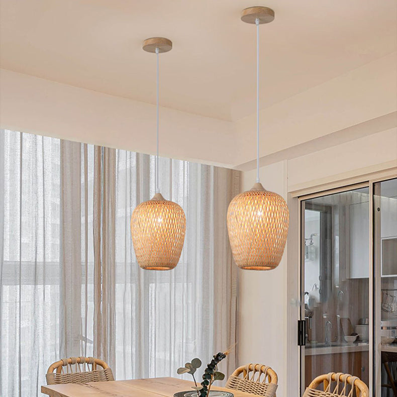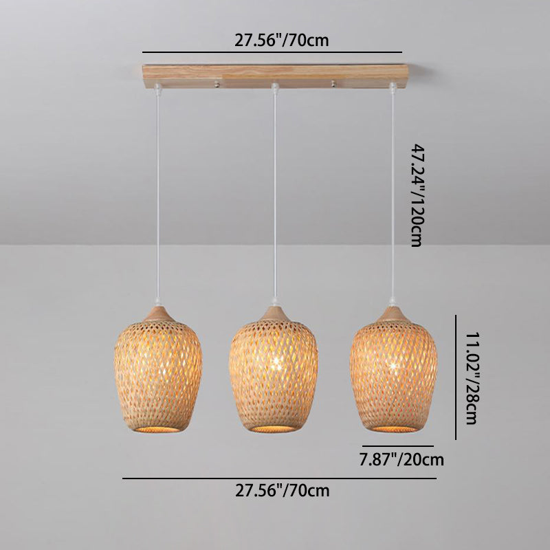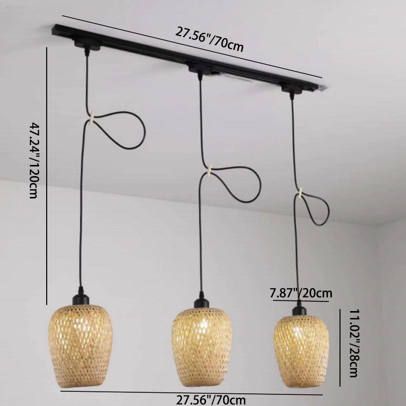 ثريا جزيرة حديثة مصنوعة من الخيزران الصيني المنسوج، مزودة بإضاءة أسطوانية بثلث الضوء لغرفة المعيشة