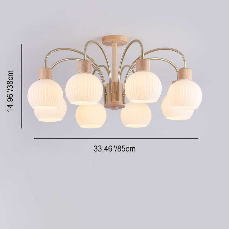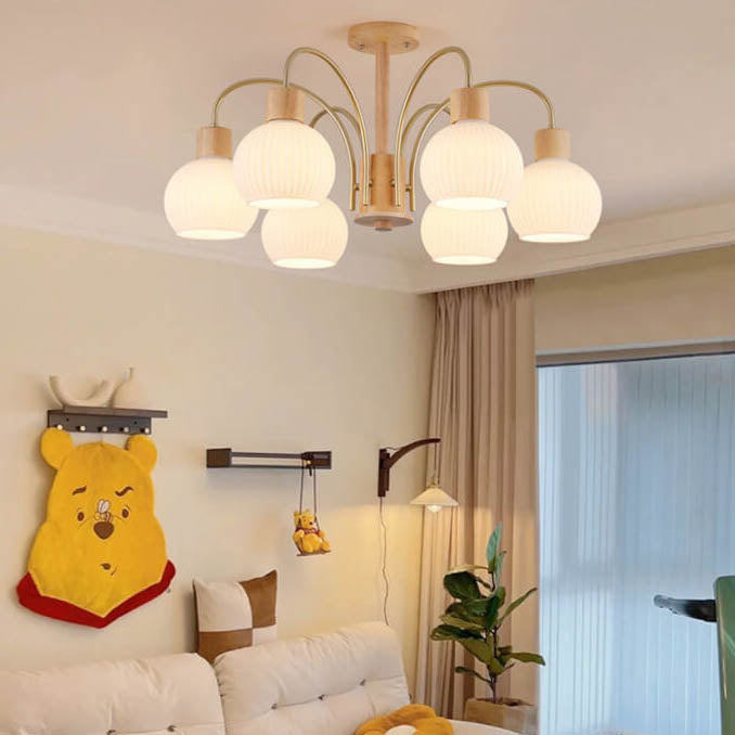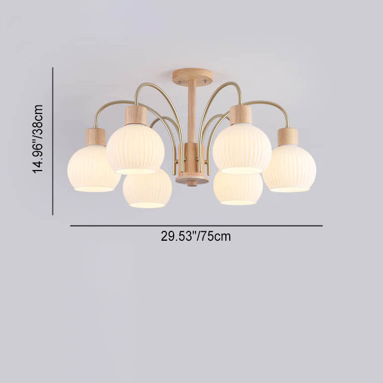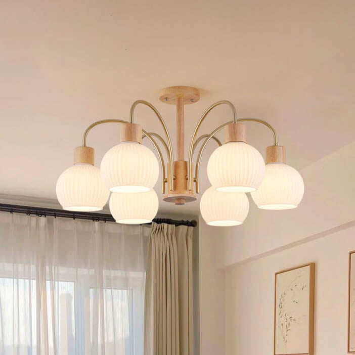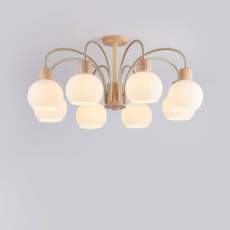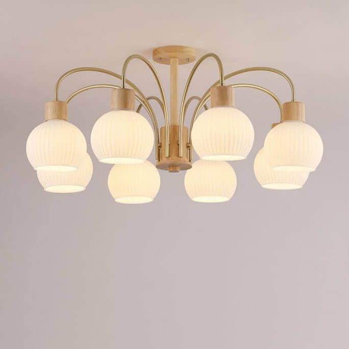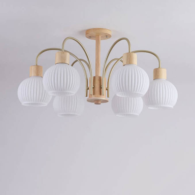 ثريا دائرية حديثة من الحديد والخشب الصلب والزجاج 6/8 ضوء