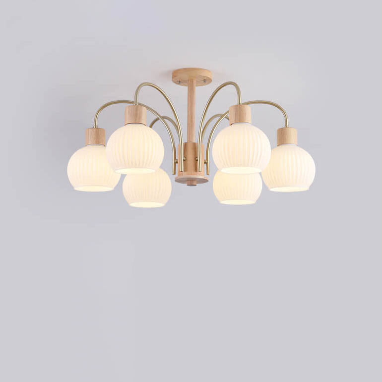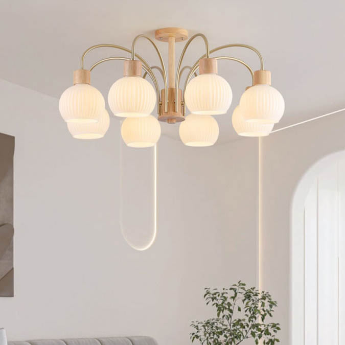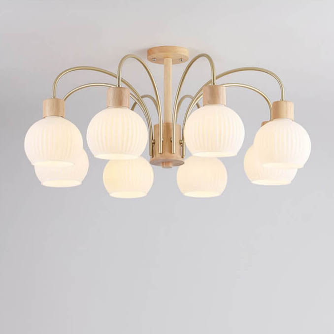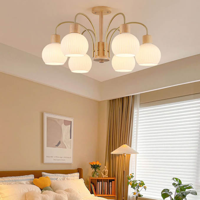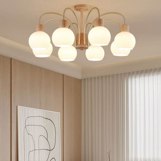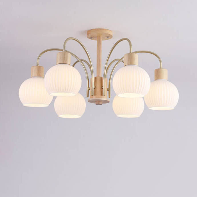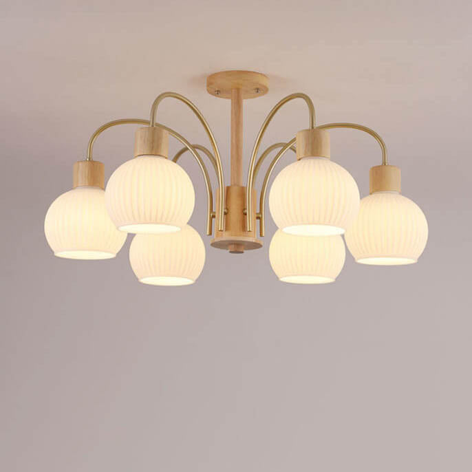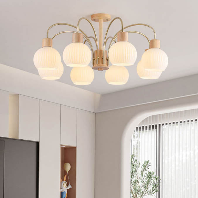 ثريا دائرية حديثة من الحديد والخشب الصلب والزجاج 6/8 ضوء