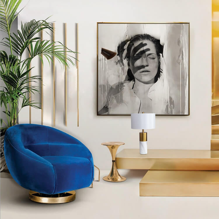 Modern Fabric Marble Column Base 1-Light Table Lamp