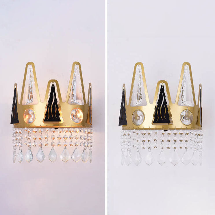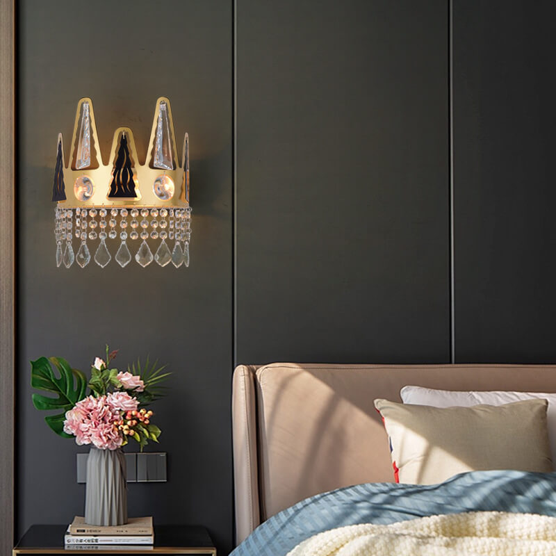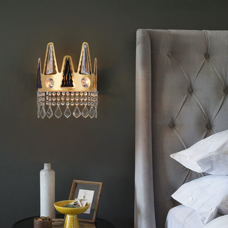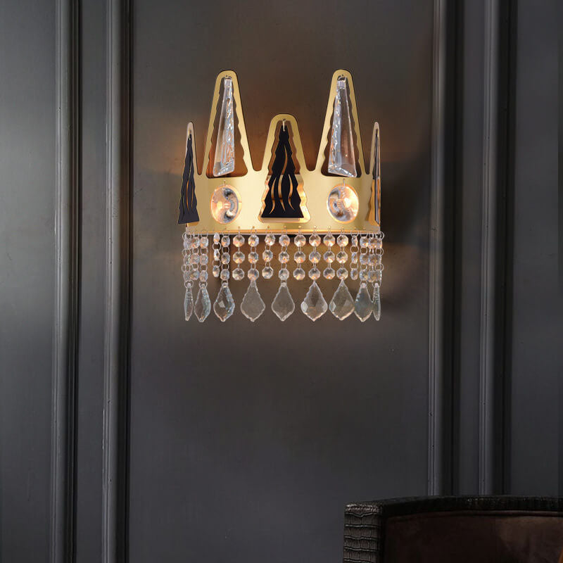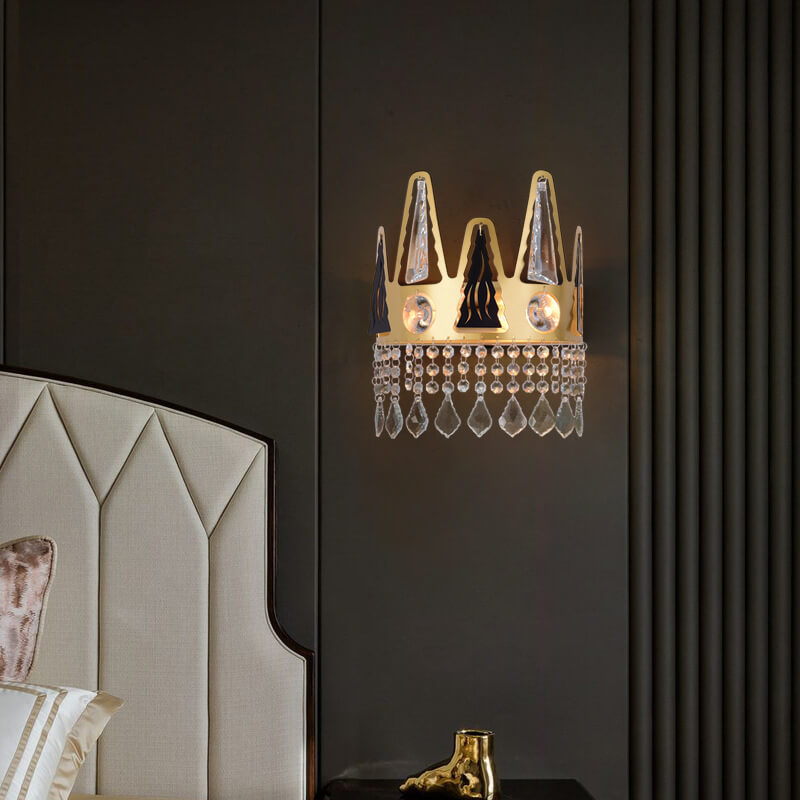 مصباح حائط حديث فاخر على شكل تاج من الحديد المطاوع الكريستالي مزود بمصباح واحد