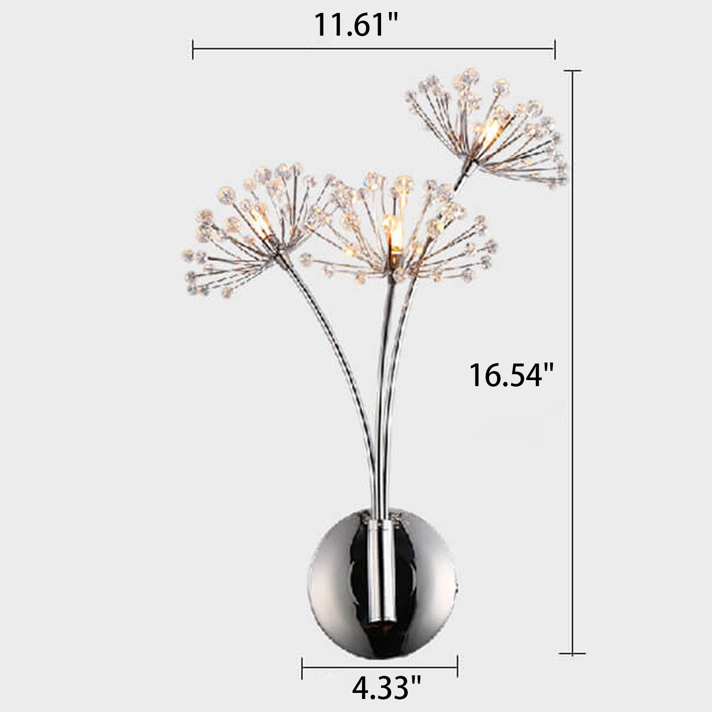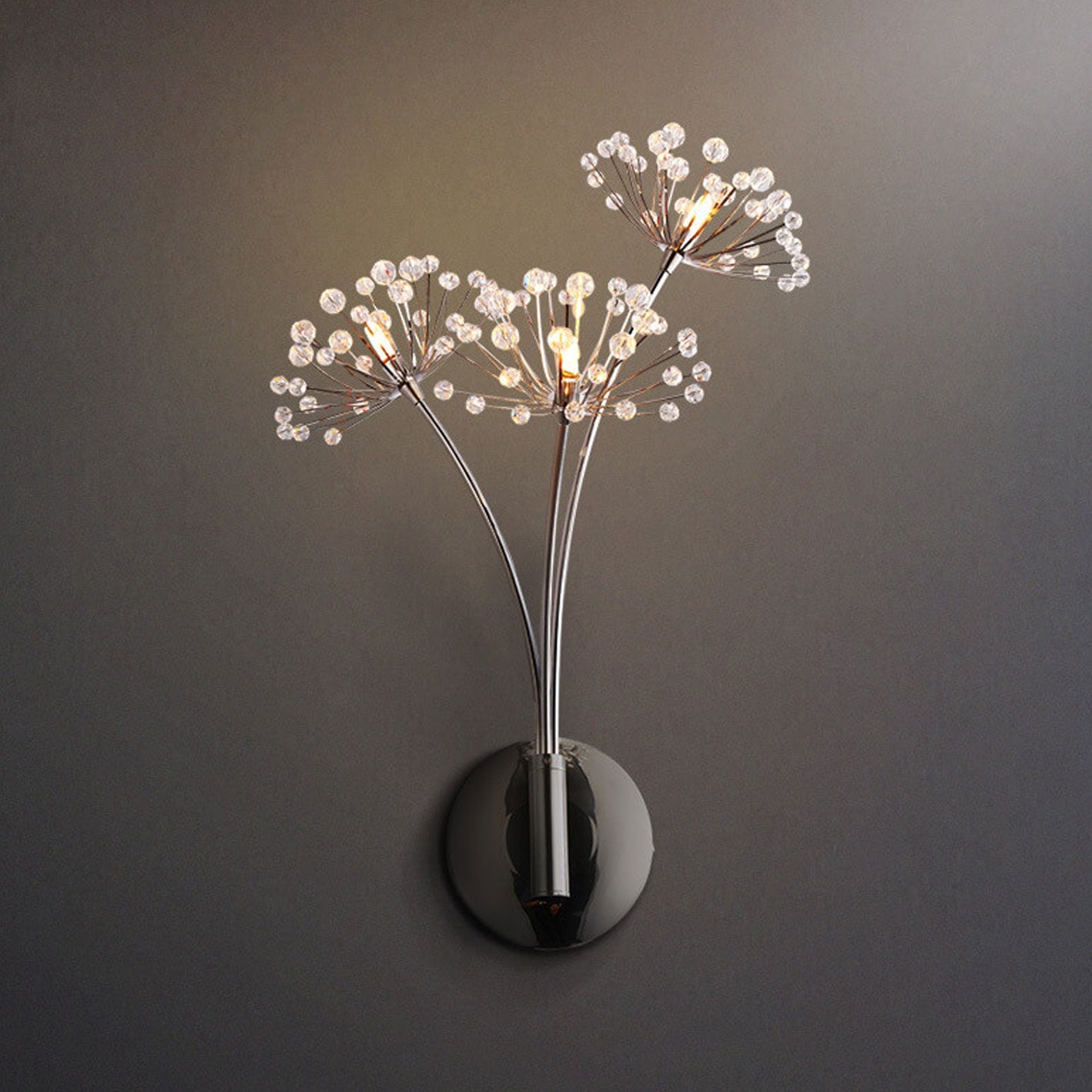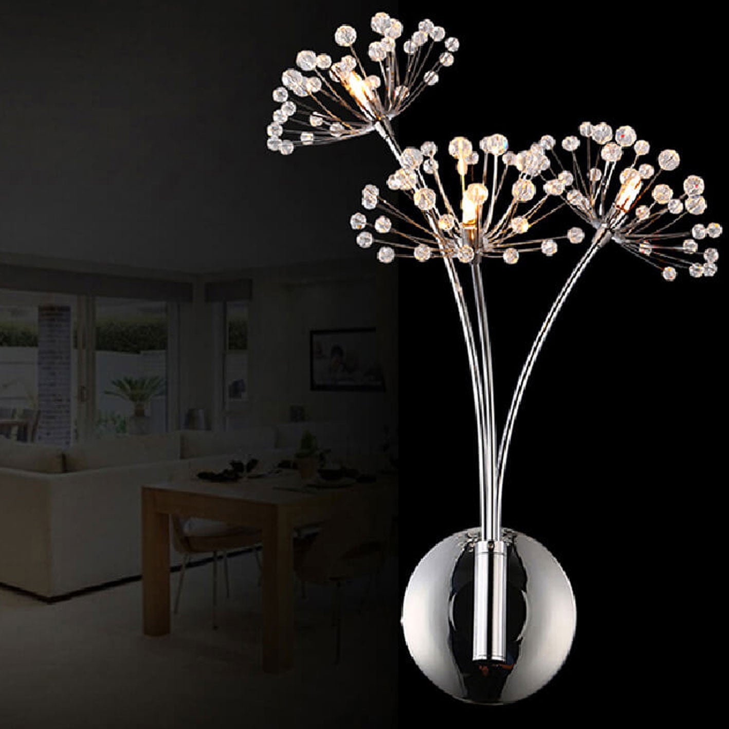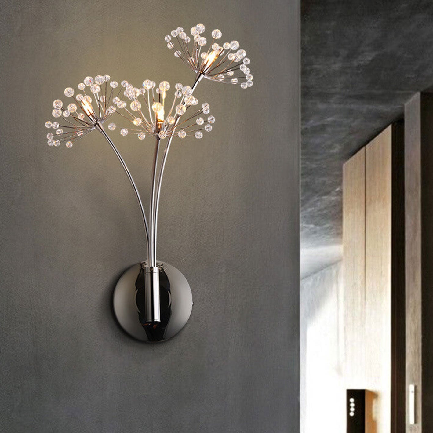 مصباح حائطي حديث فاخر من الكريستال الهندباء بثلاثة مصابيح