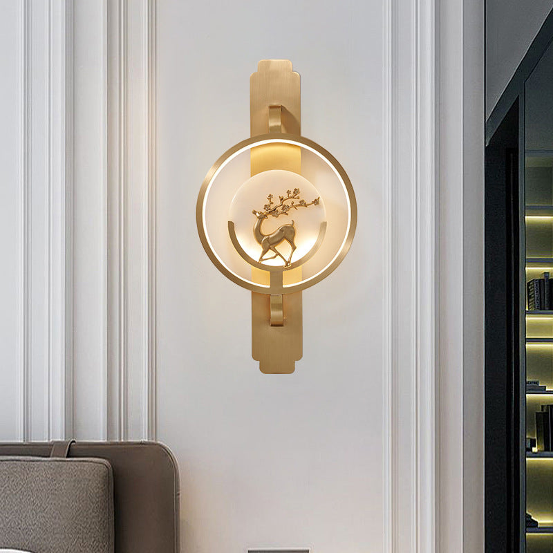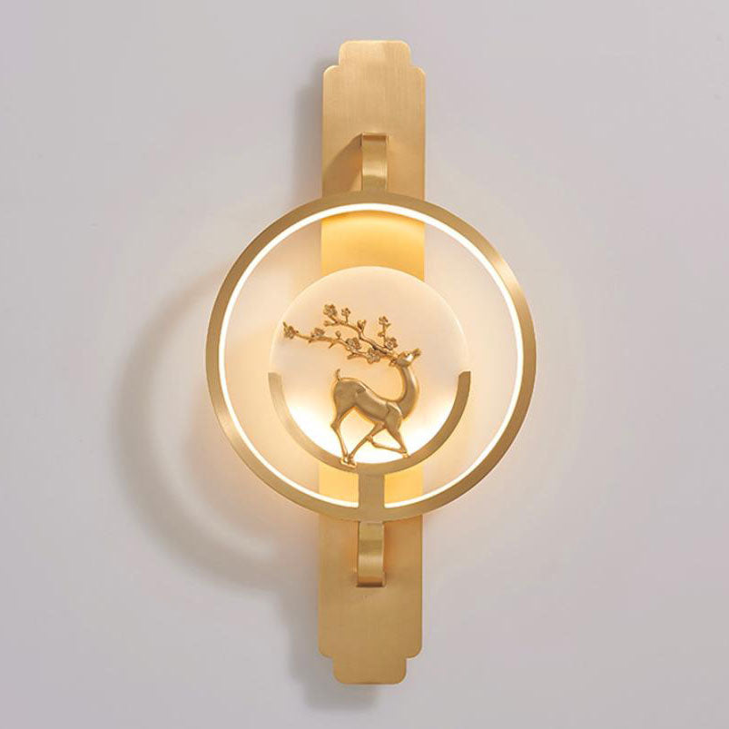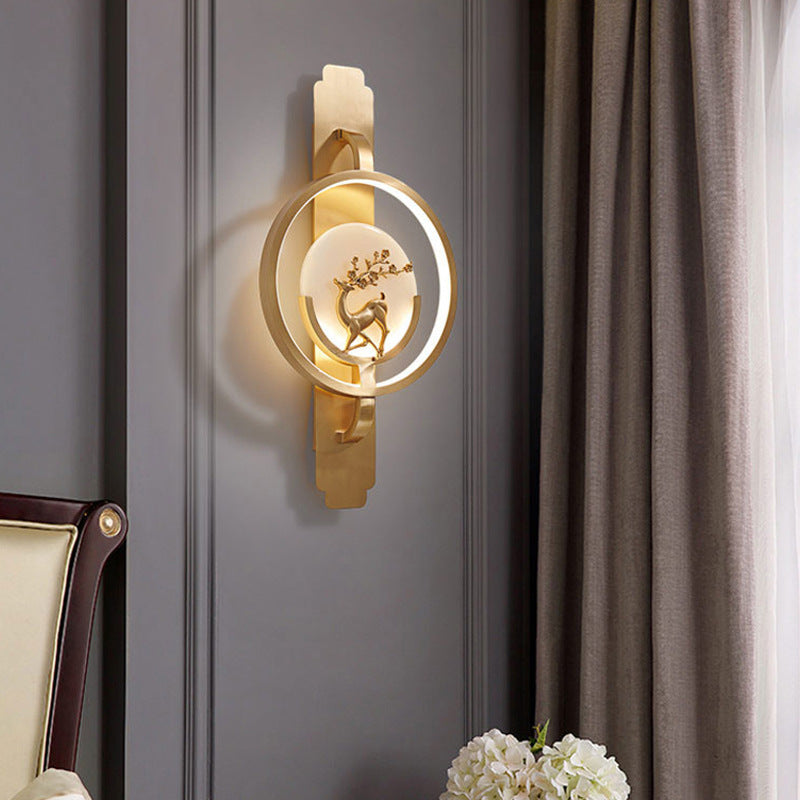 مصباح حائط LED دائري فاخر من النحاس والرخام بإضاءة عصرية