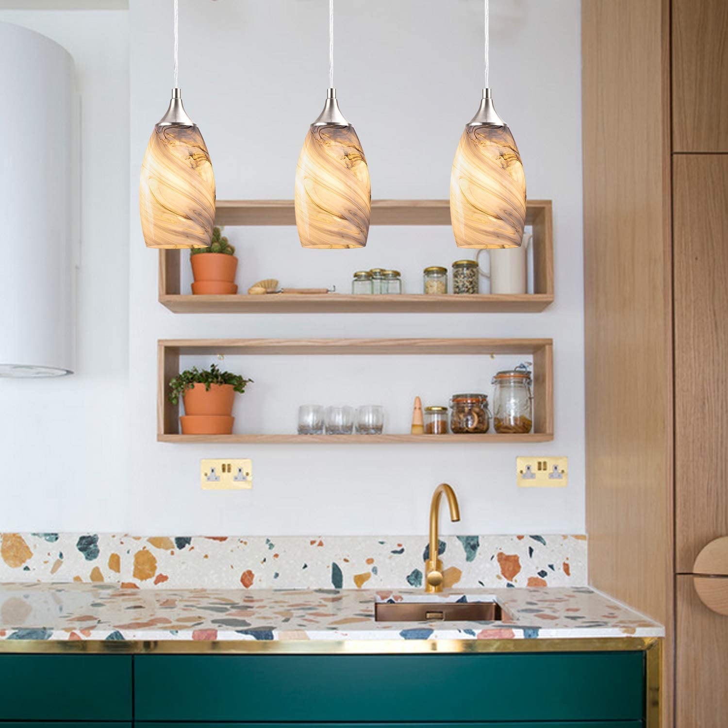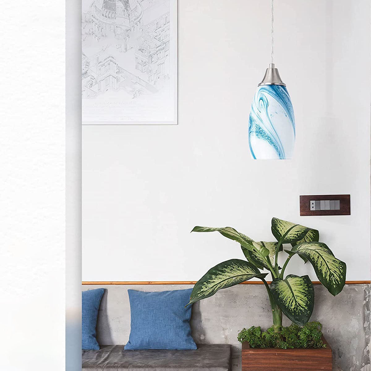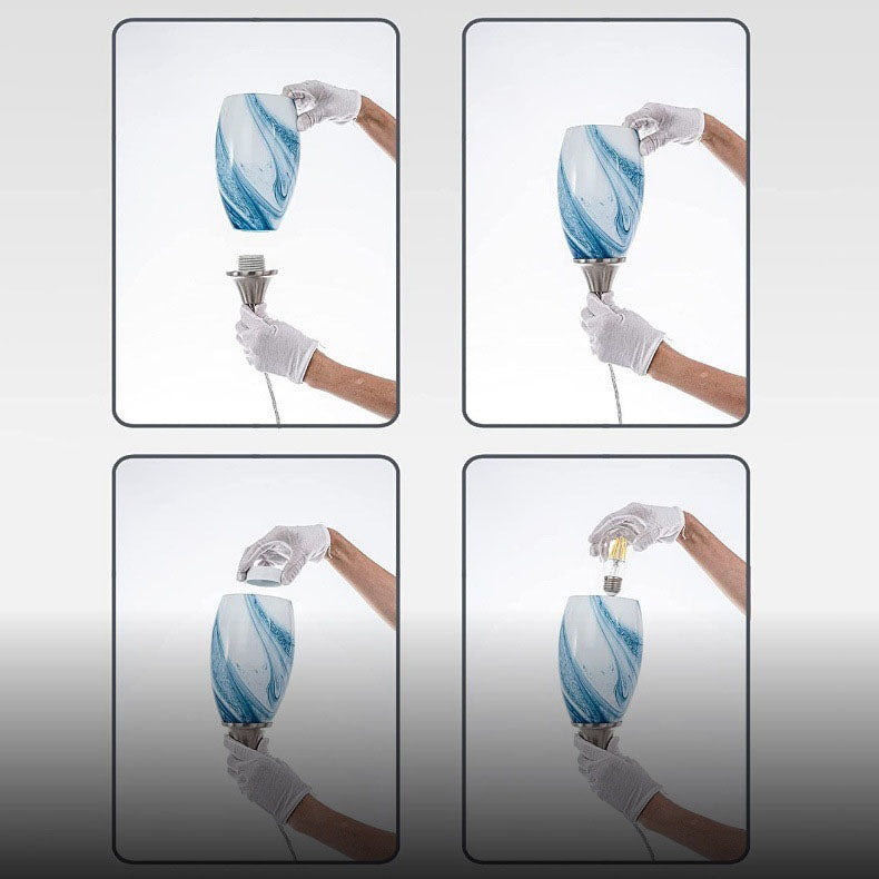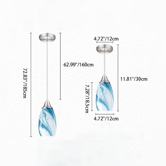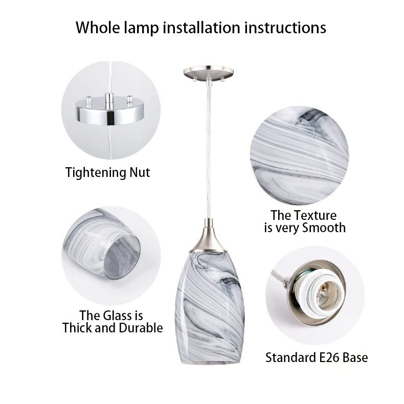 مصباح معلق حديث فاخر بسيط من الرخام ذو برميل طويل مزود بمصباح واحد