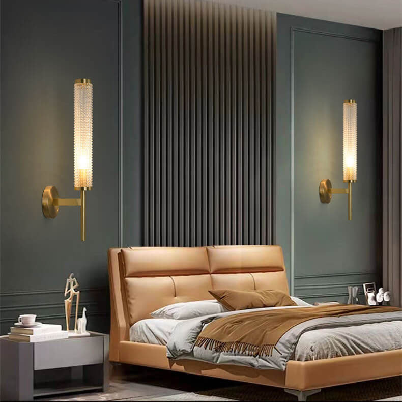 مصباح حائط LED بذراع مستقيمة طويل من النحاس والكريستال الفاخر الحديث