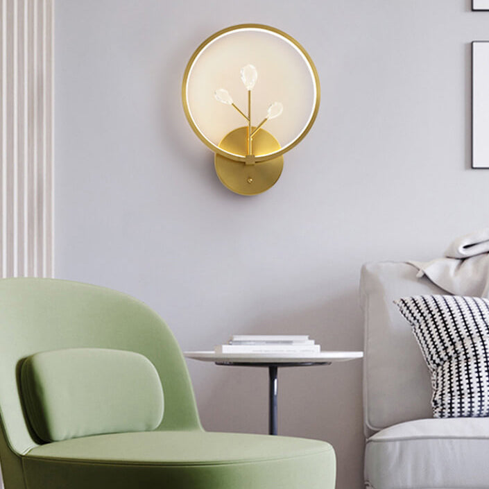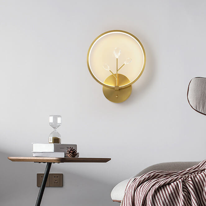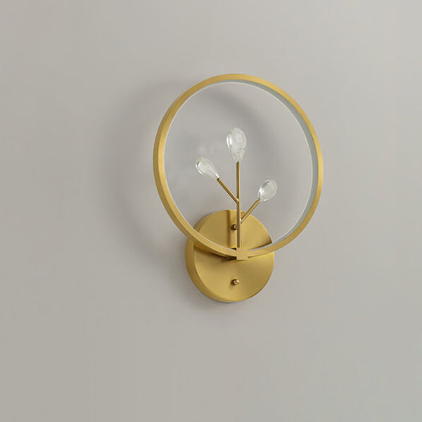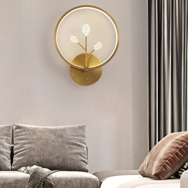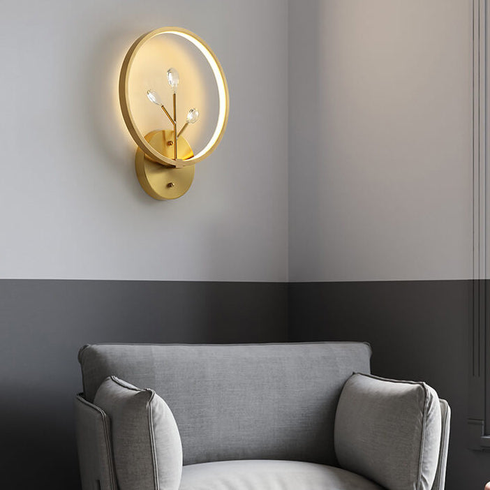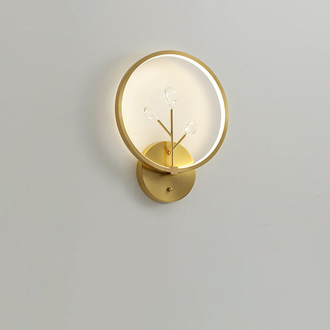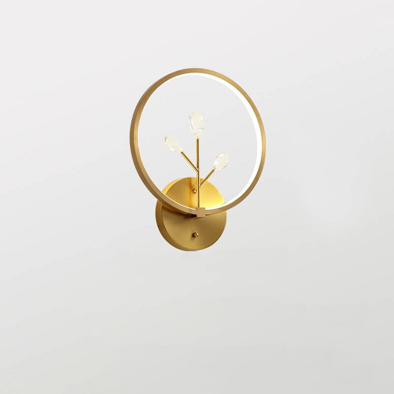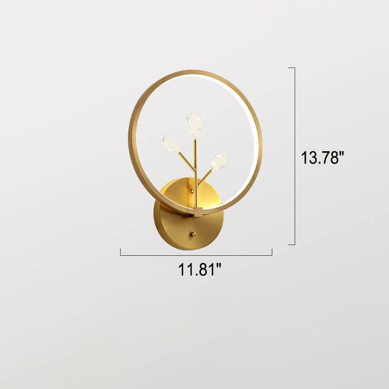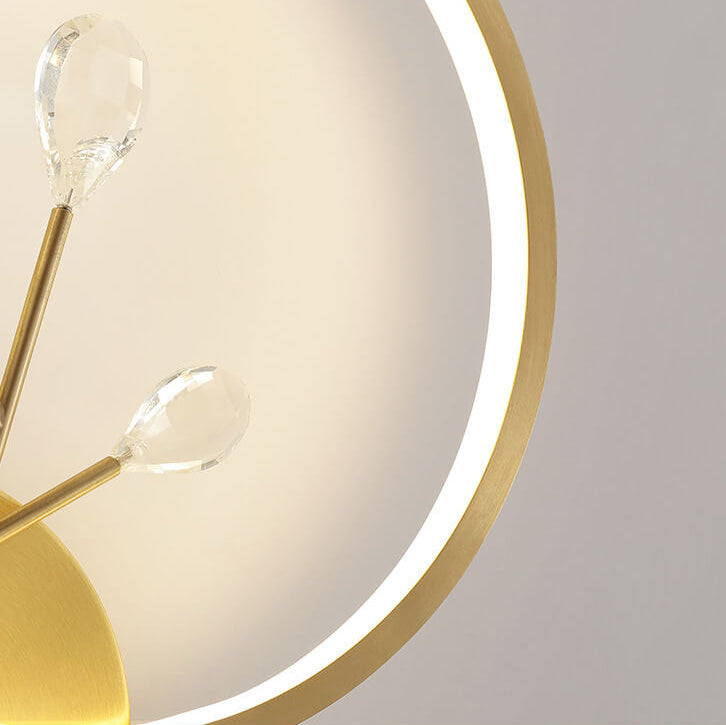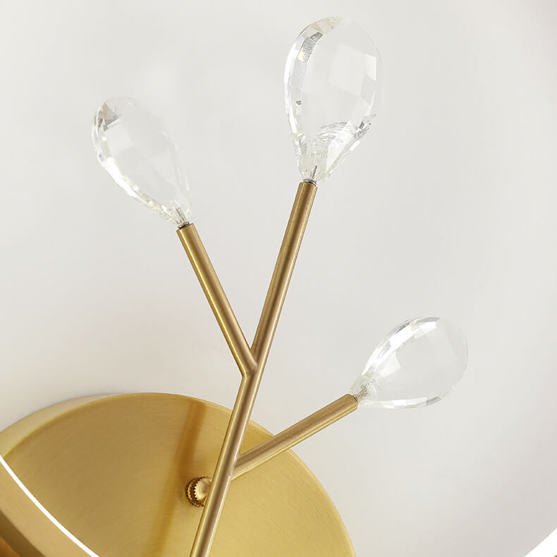 مصباح حائط LED دائري الشكل على شكل فرع شجرة كريستالي نحاسي فاخر عصري