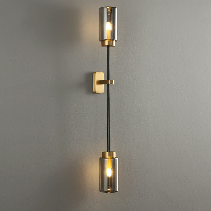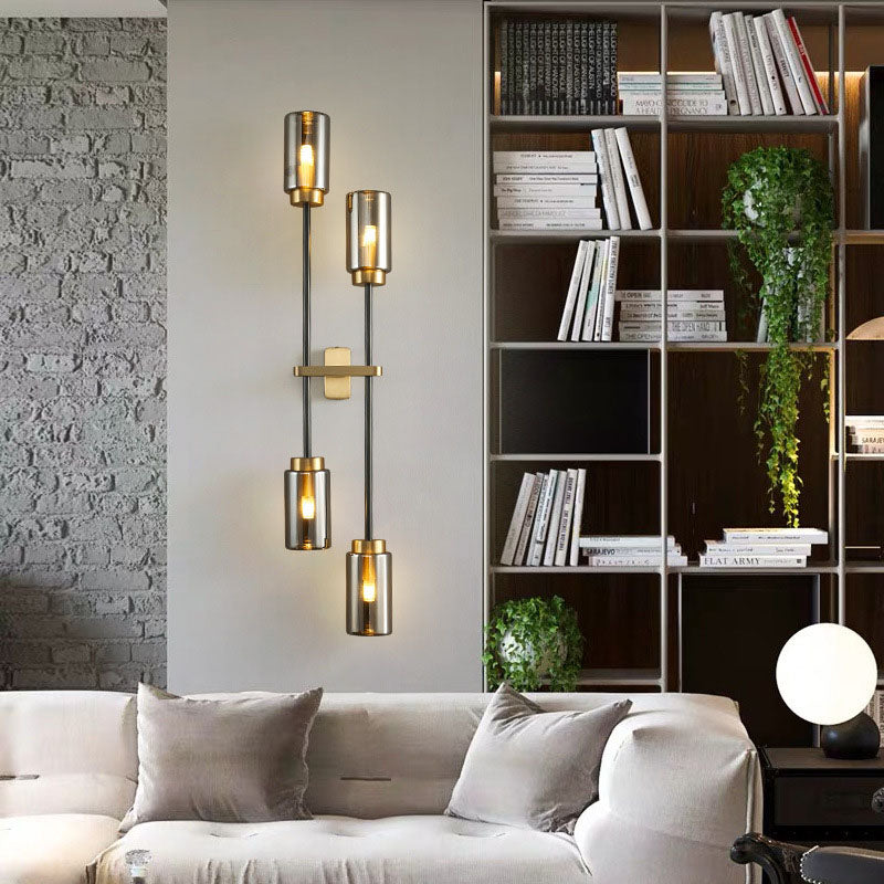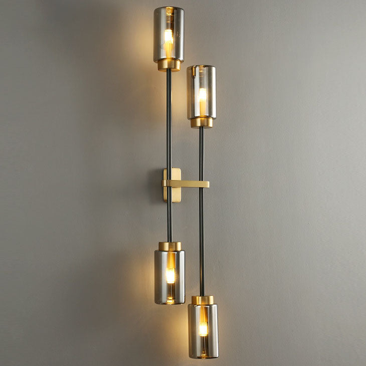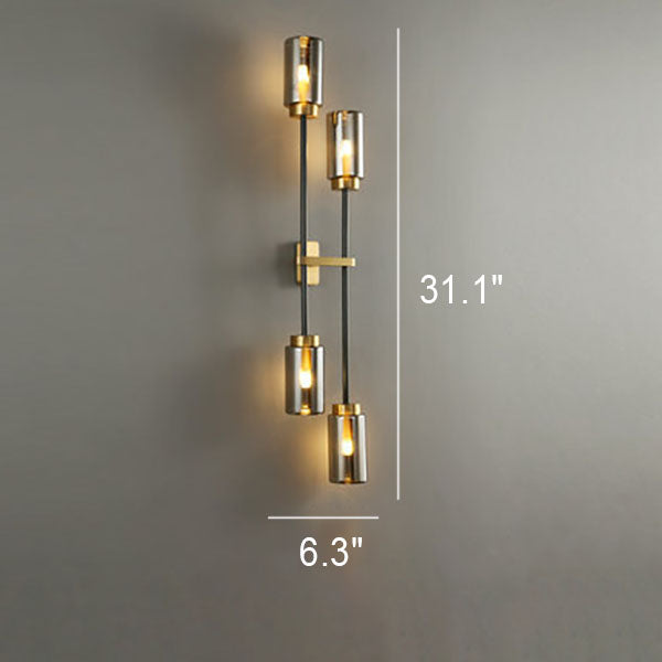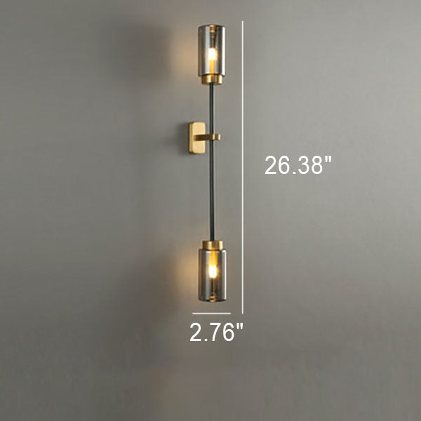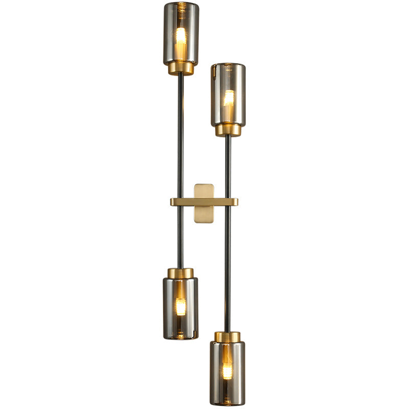 مصباح حائطي عصري فاخر مصنوع من النحاس والزجاج على شكل أسطوانة، مزود بـ 2/4 ضوء