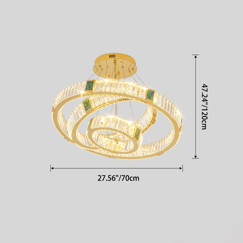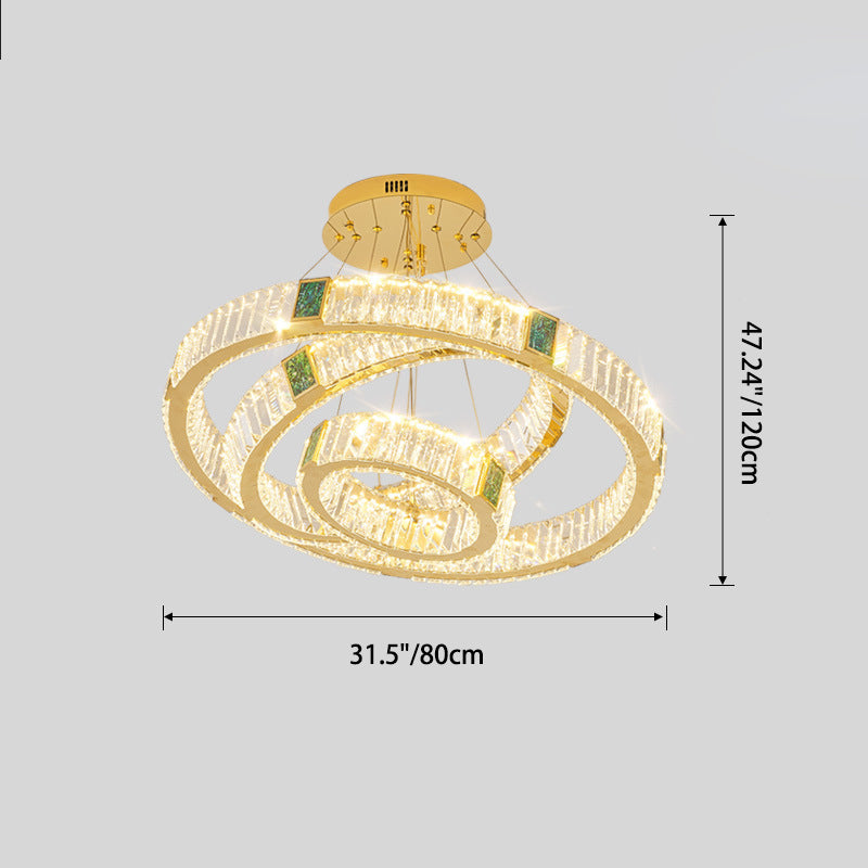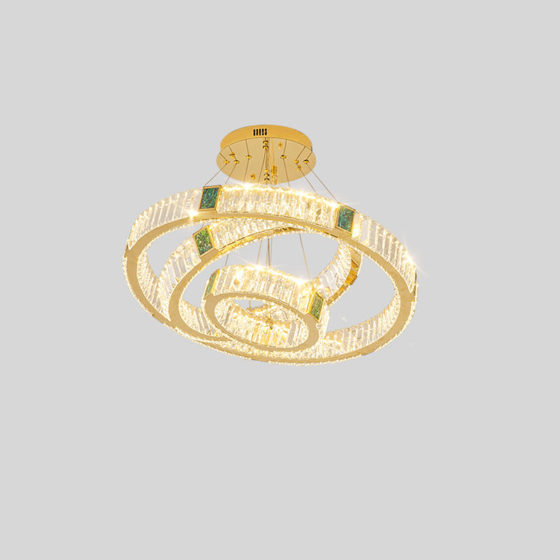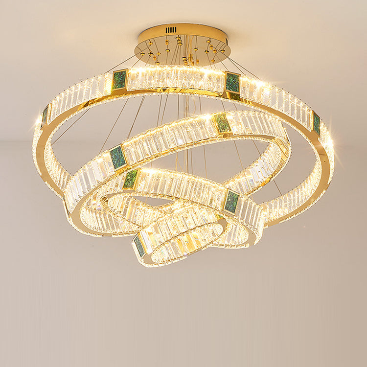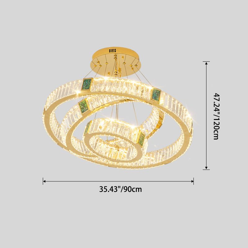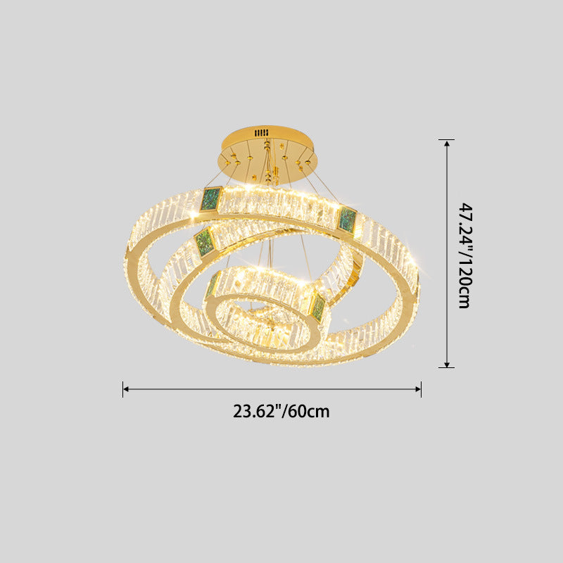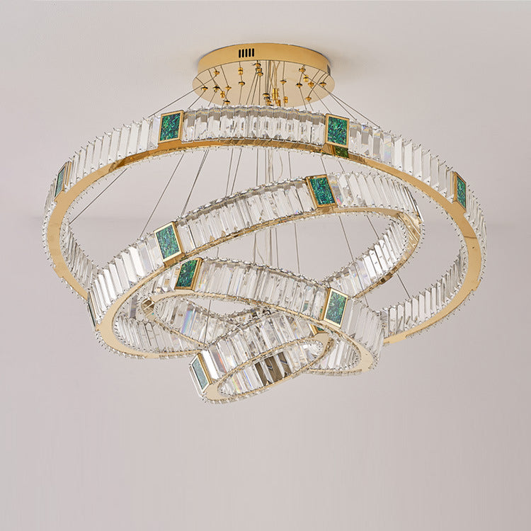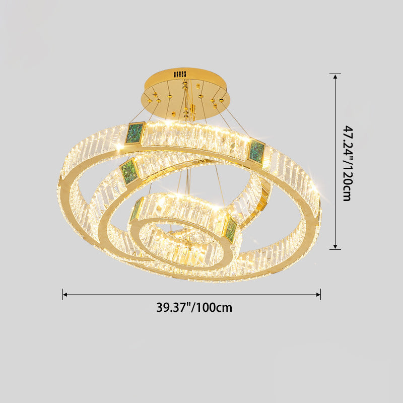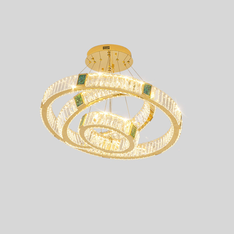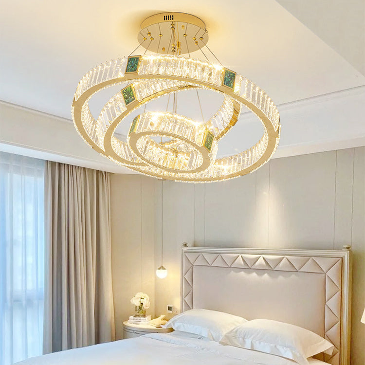 ثريا LED دائرية من الكريستال بتصميم عصري فاخر مصنوعة من الفولاذ المقاوم للصدأ والتيتانيوم لغرفة المعيشة