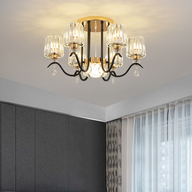 ثريا أسطوانية حديثة فاخرة من الكريستال والحديد 6/8/10 مصابيح لغرفة المعيشة
