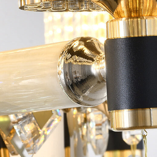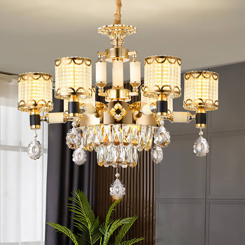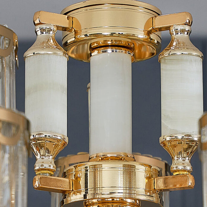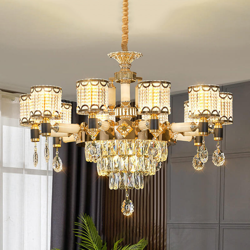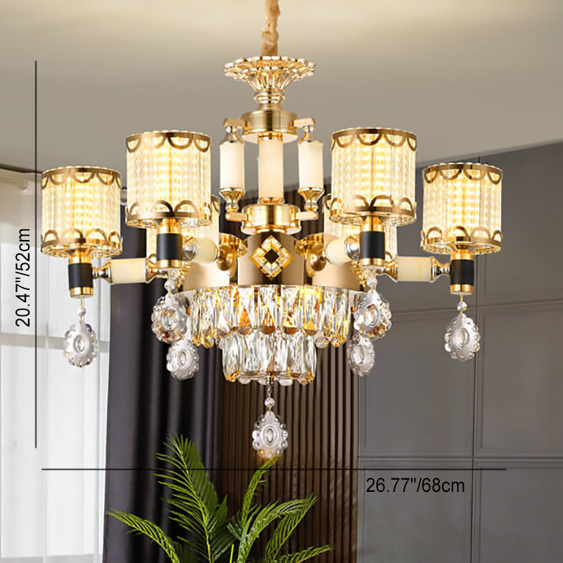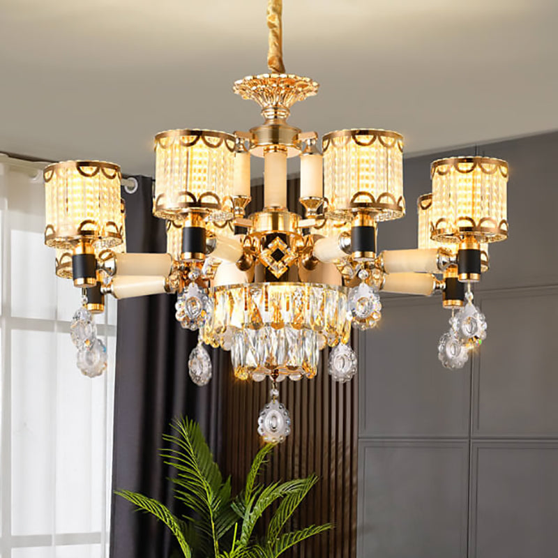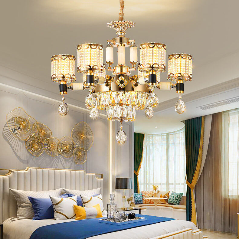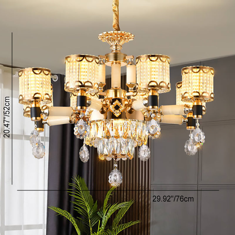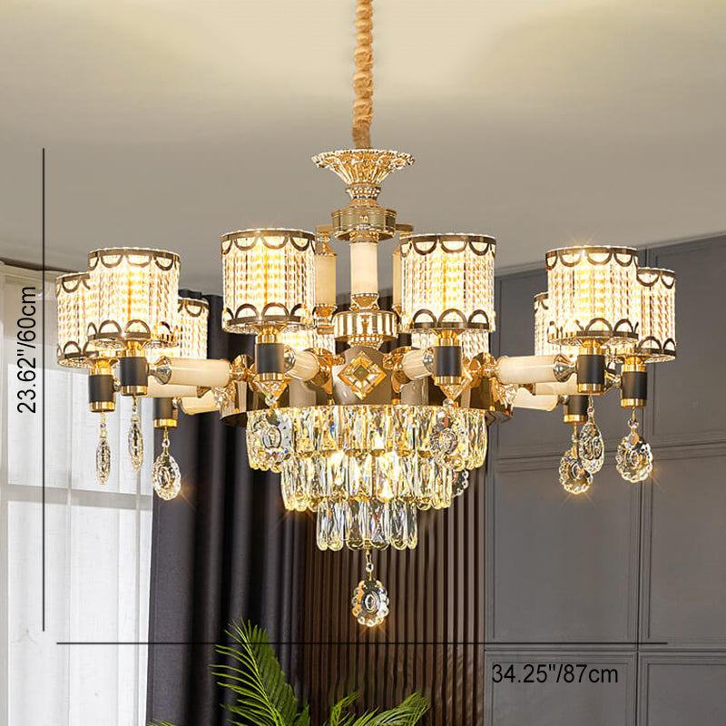 ثريا أسطوانية فاخرة حديثة من سبائك الزنك والكريستال واليشم، 6/8/10 مصابيح