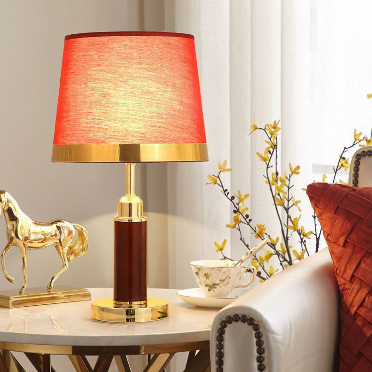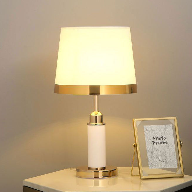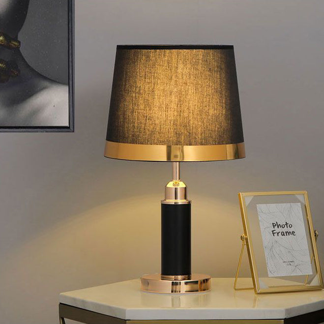 Modern Luxury Drum Shape Cylinder Base Hardware Fabric 1-Light Table Lamp For Bedroom