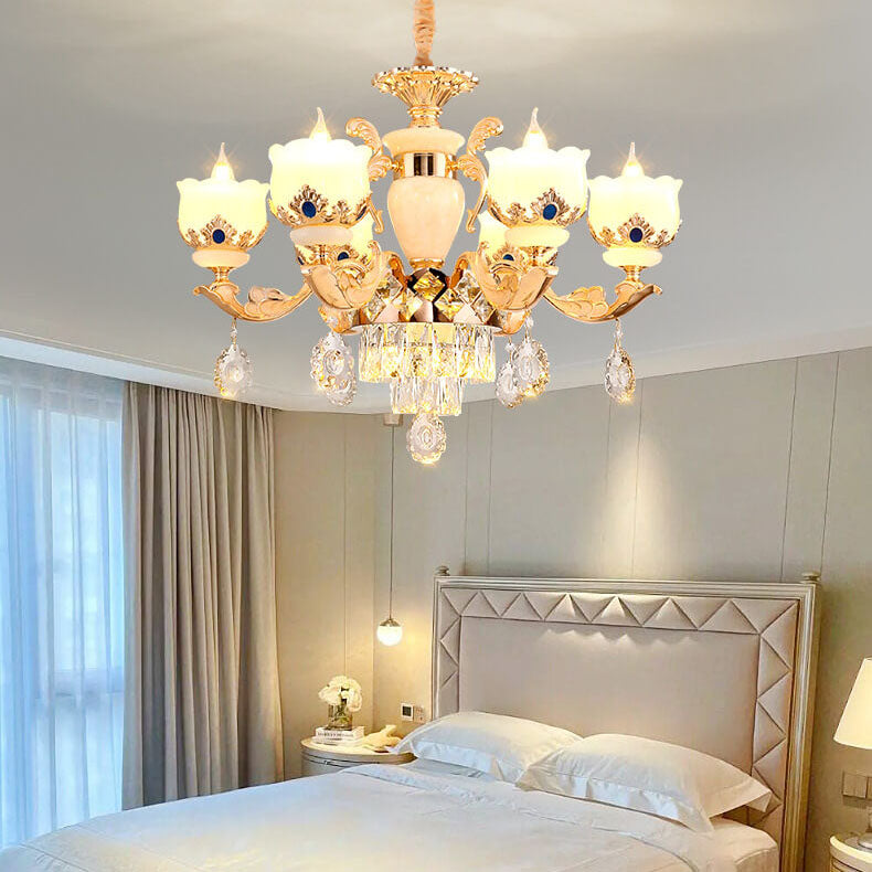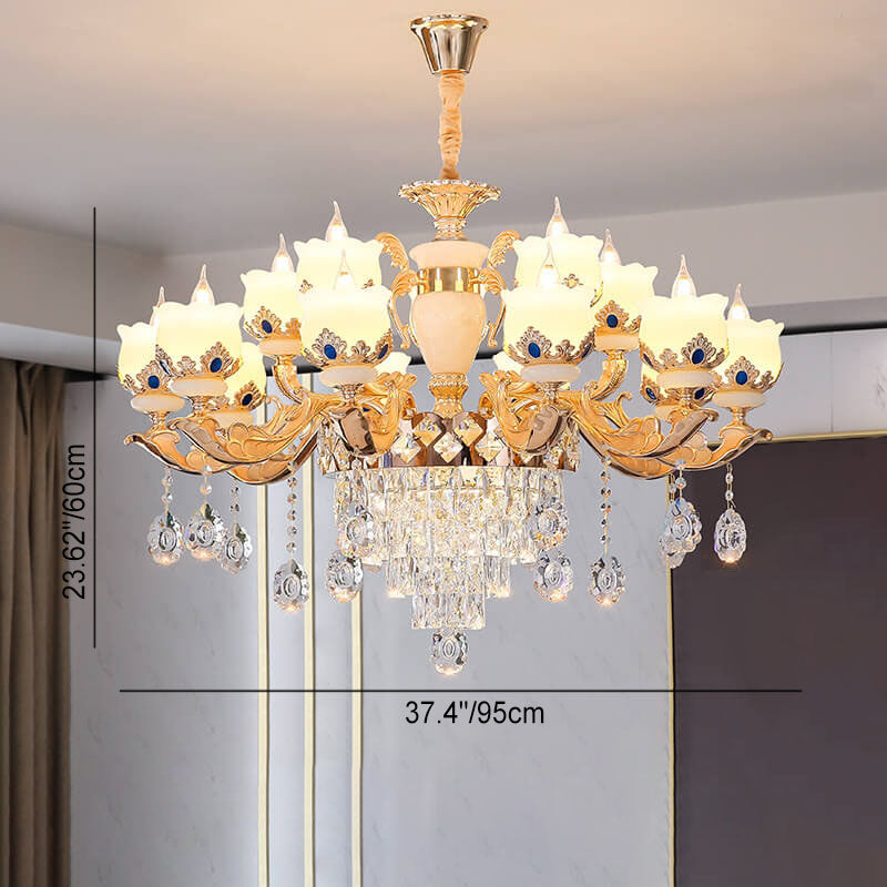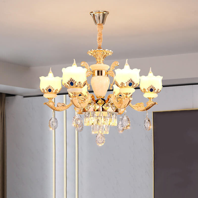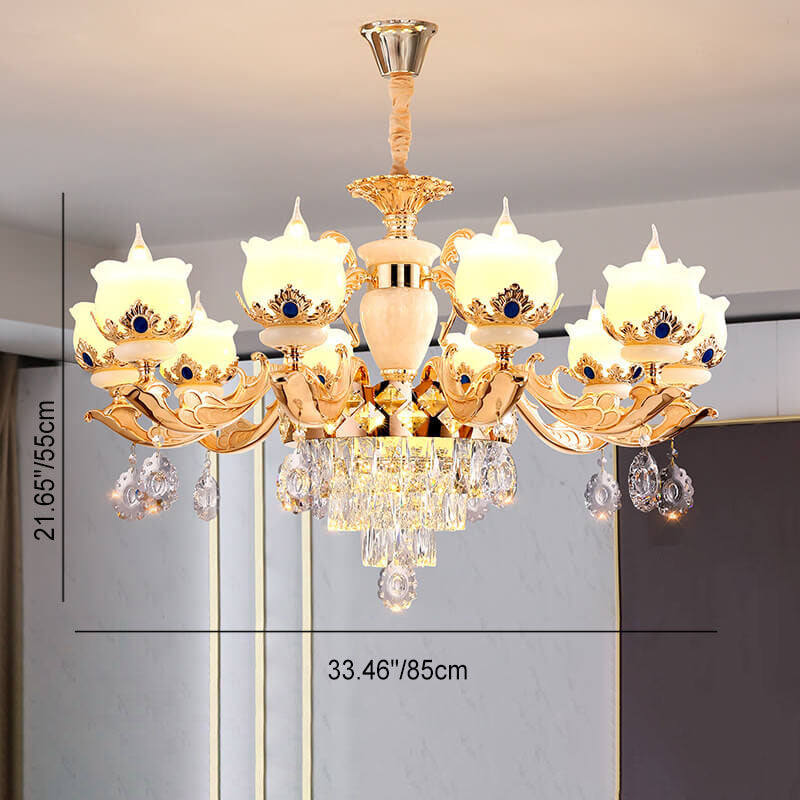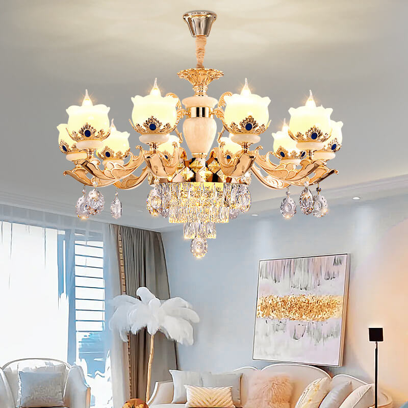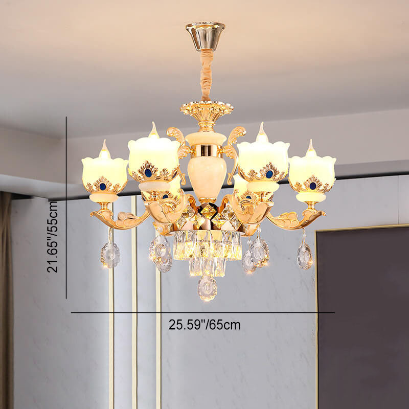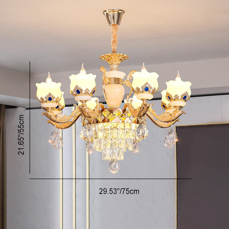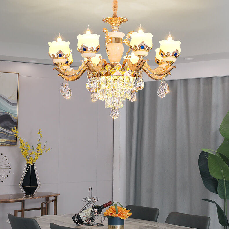 ثريا عصرية فاخرة مصنوعة من سبائك الزنك والكريستال واليشم، 6/8/10/15 ضوءًا