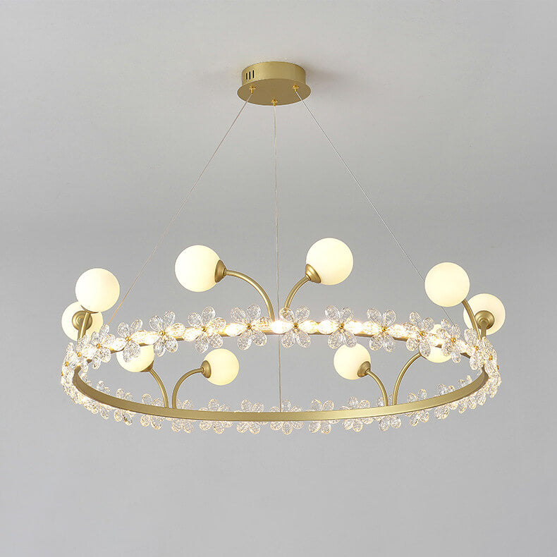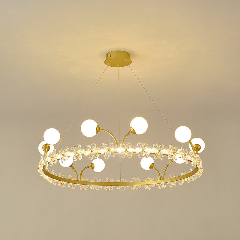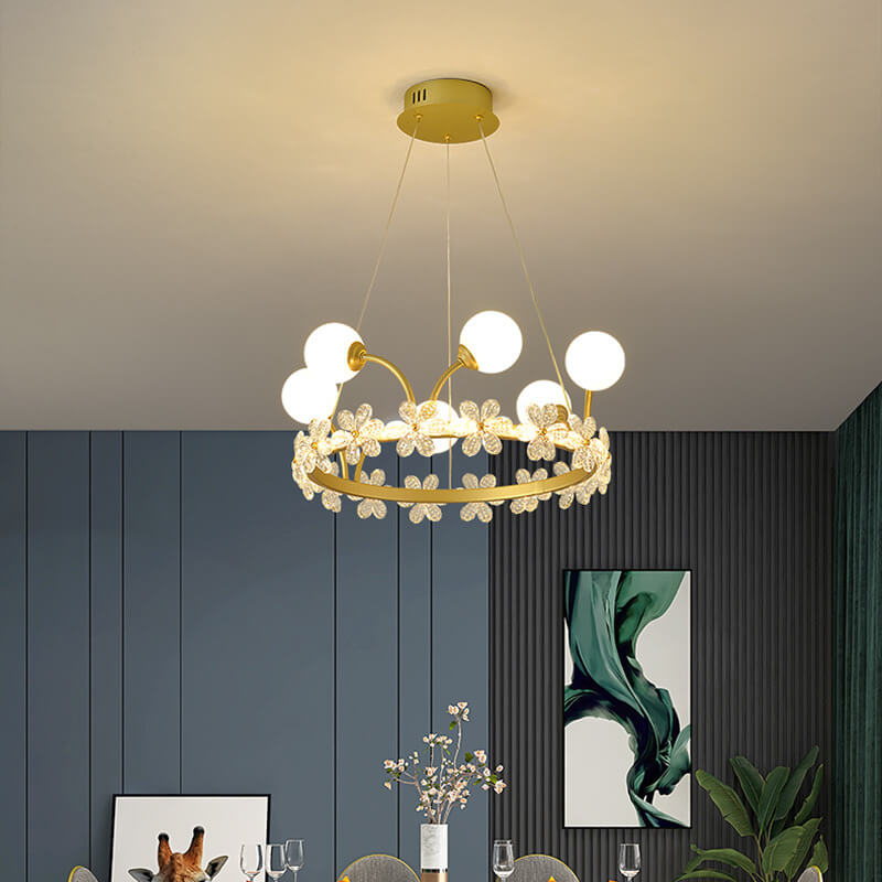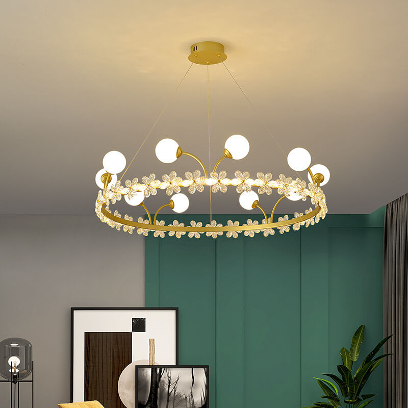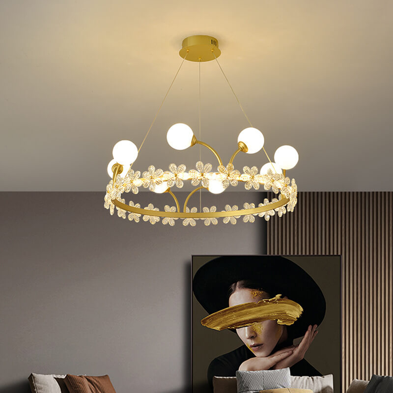 ثريا عصرية فاخرة بإطار ذهبي وحواف من زهرة الكريستال، 6/8/10 مصابيح لغرفة المعيشة