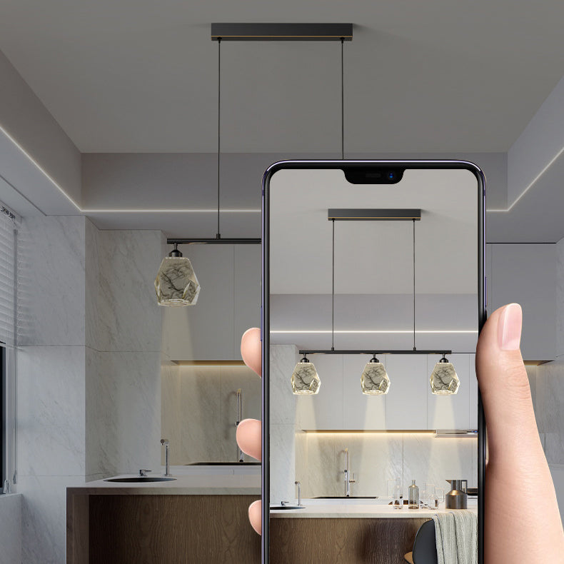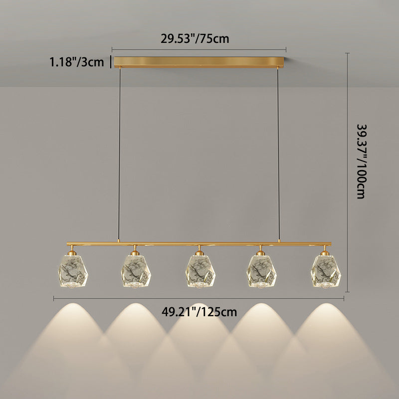 ثريا جزيرة LED حديثة فاخرة غير منتظمة من الراتنج النحاسي الحجري لغرفة الطعام