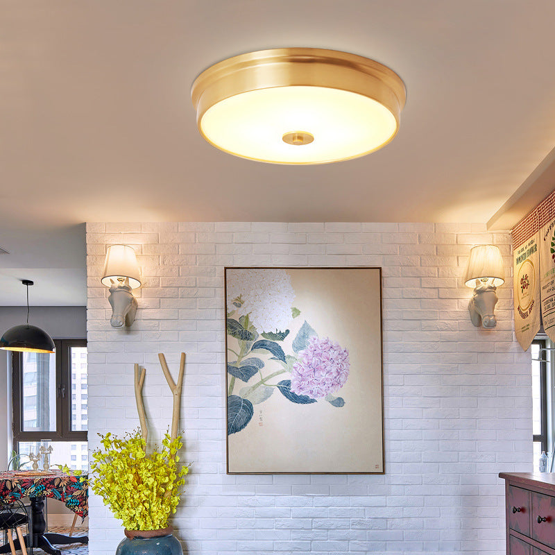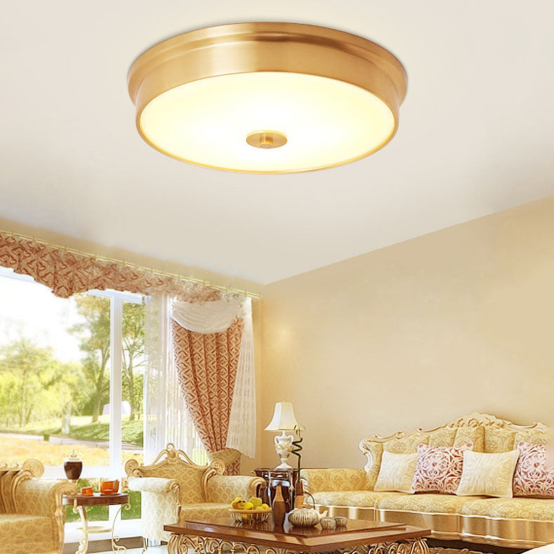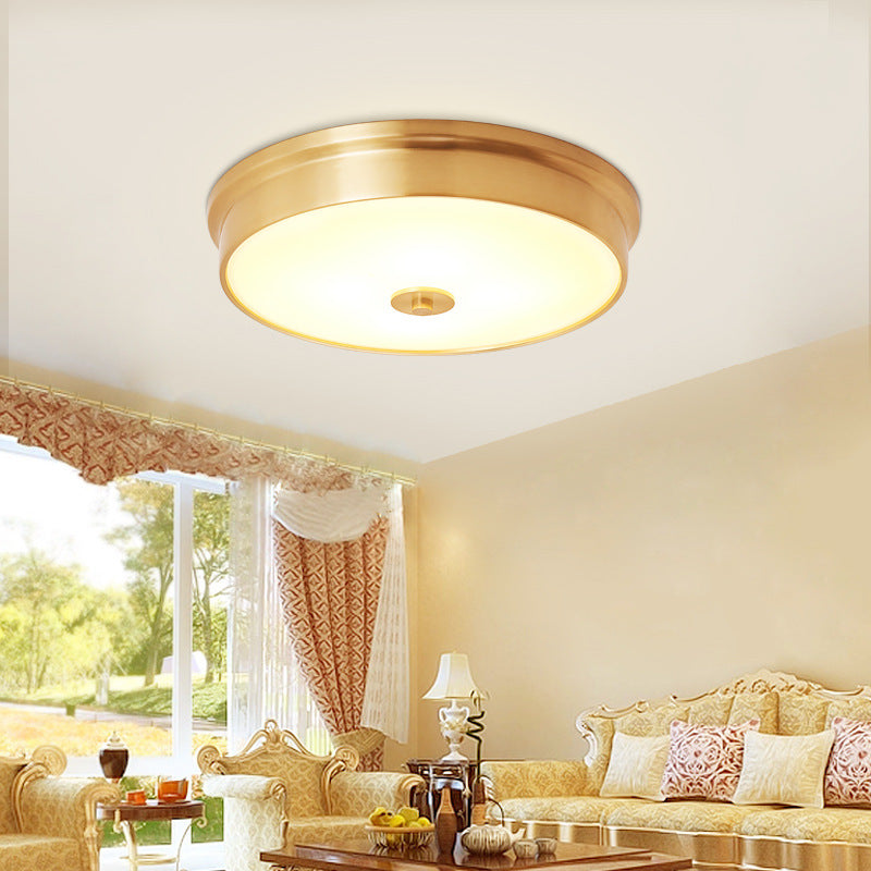 مصباح سقف دائري فاخر حديث من النحاس والزجاج 3/4 بوصة مثبت على السقف لغرفة النوم
