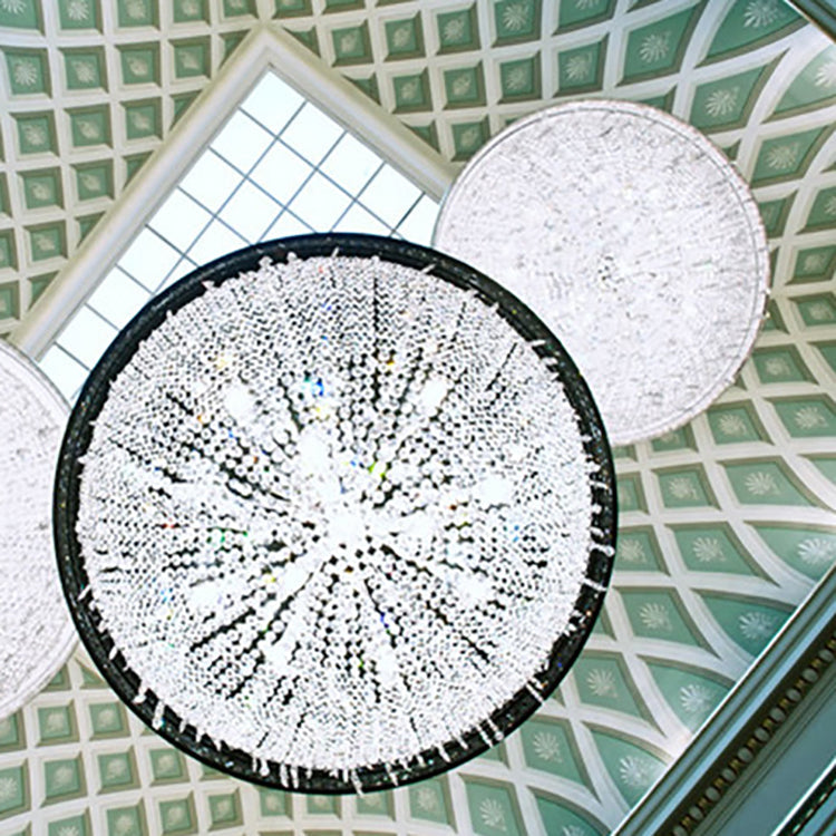 ثريا كريستال دائرية فاخرة حديثة من الحديد بثلاثة أو أربعة أو خمسة أو ستة مصابيح لغرفة المعيشة
