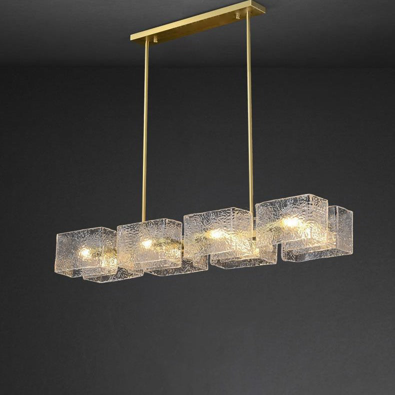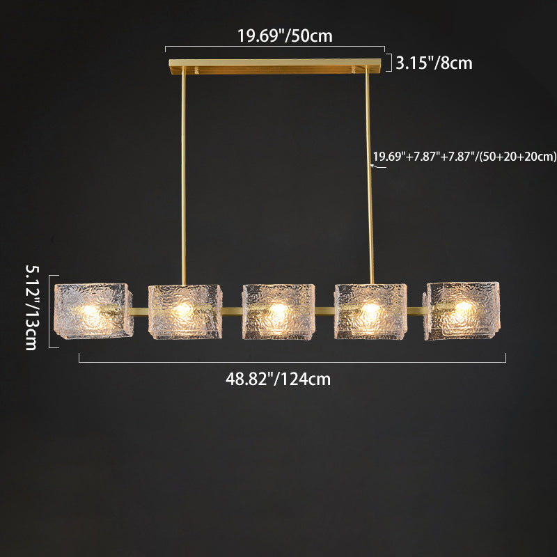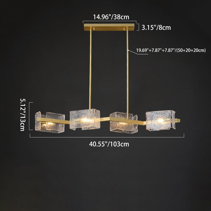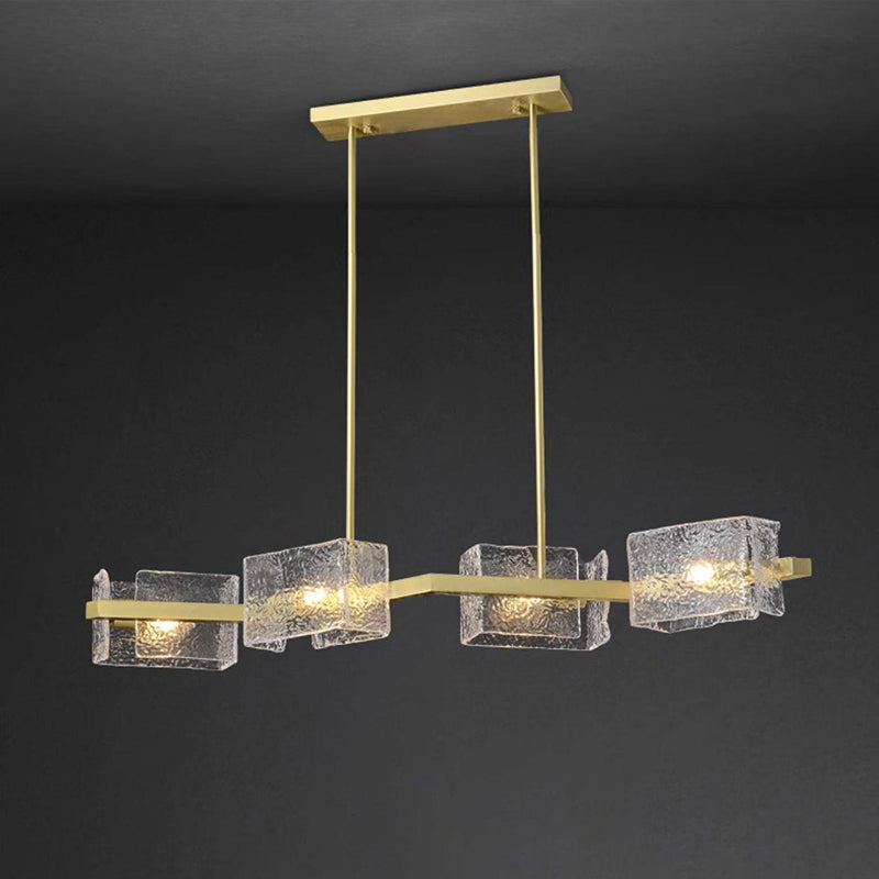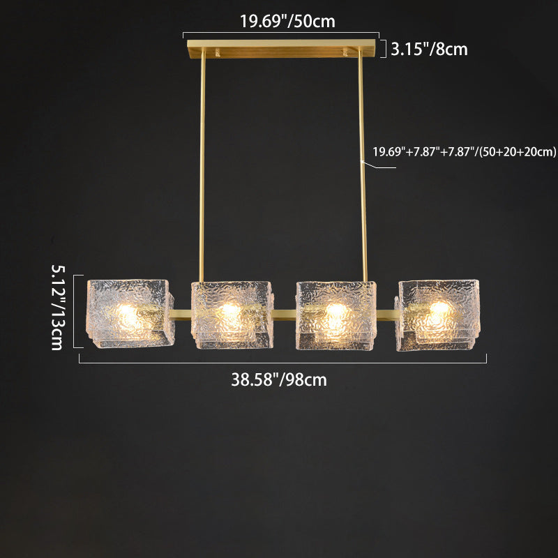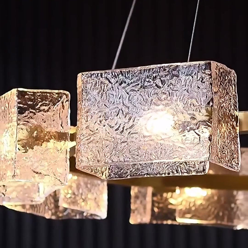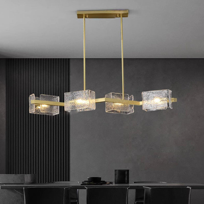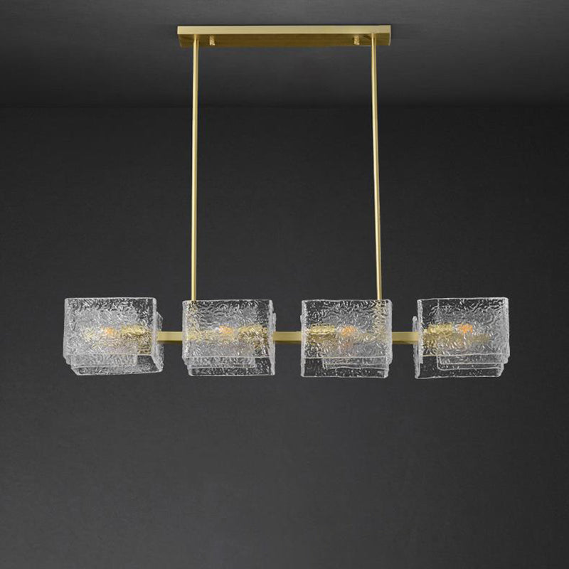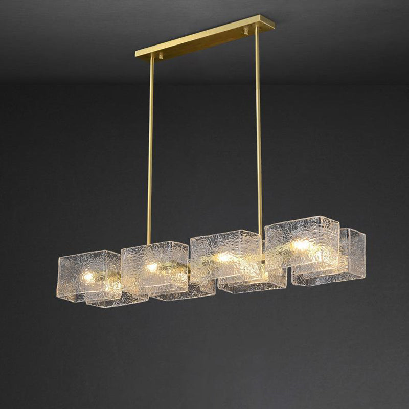 ثريا جزيرة من الحديد الزجاجي الطويل بإطار دائري مربع فاخر حديث مكون من 4/6/8/10 مصابيح لغرفة المعيشة