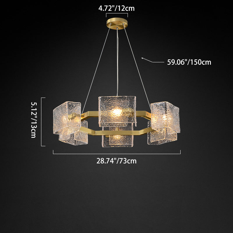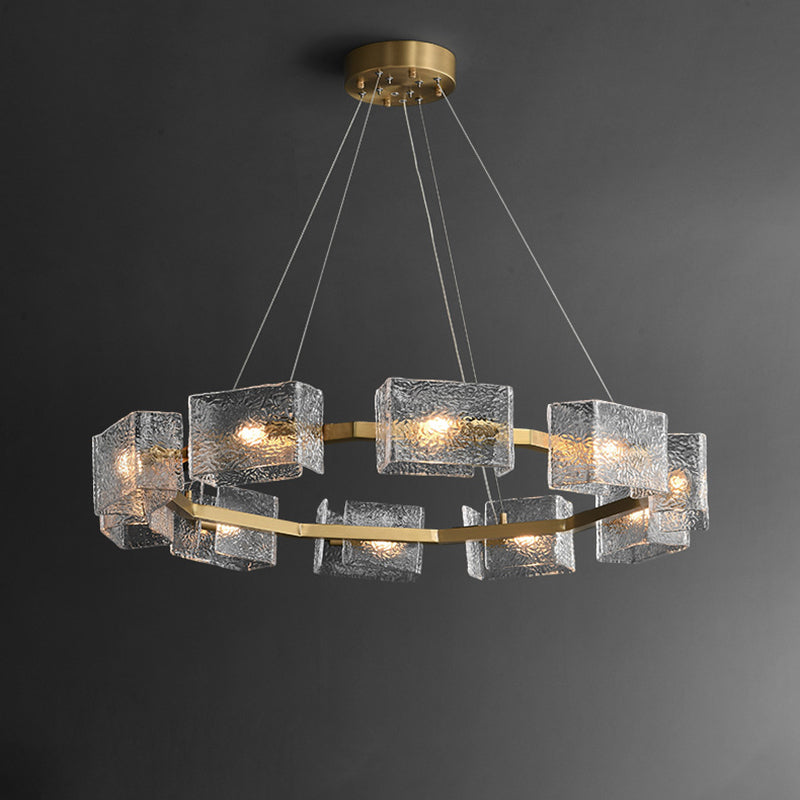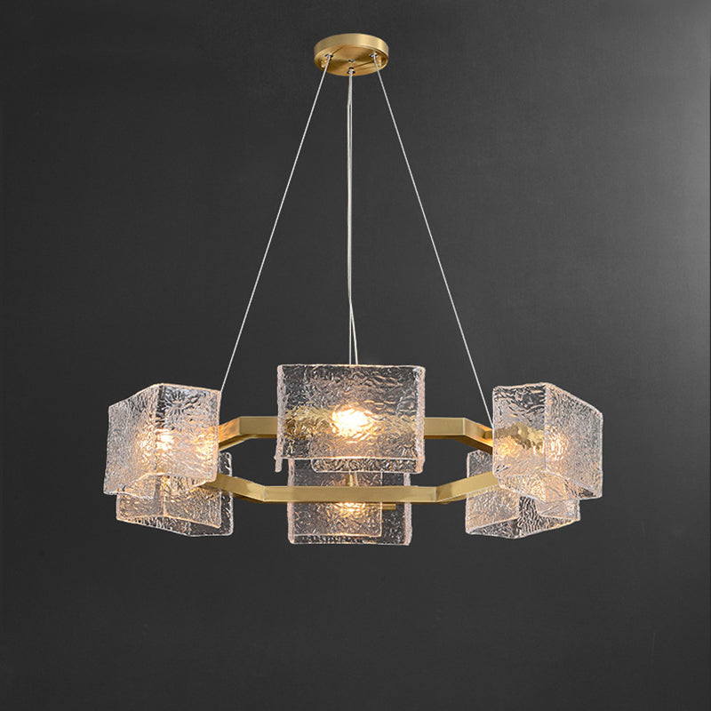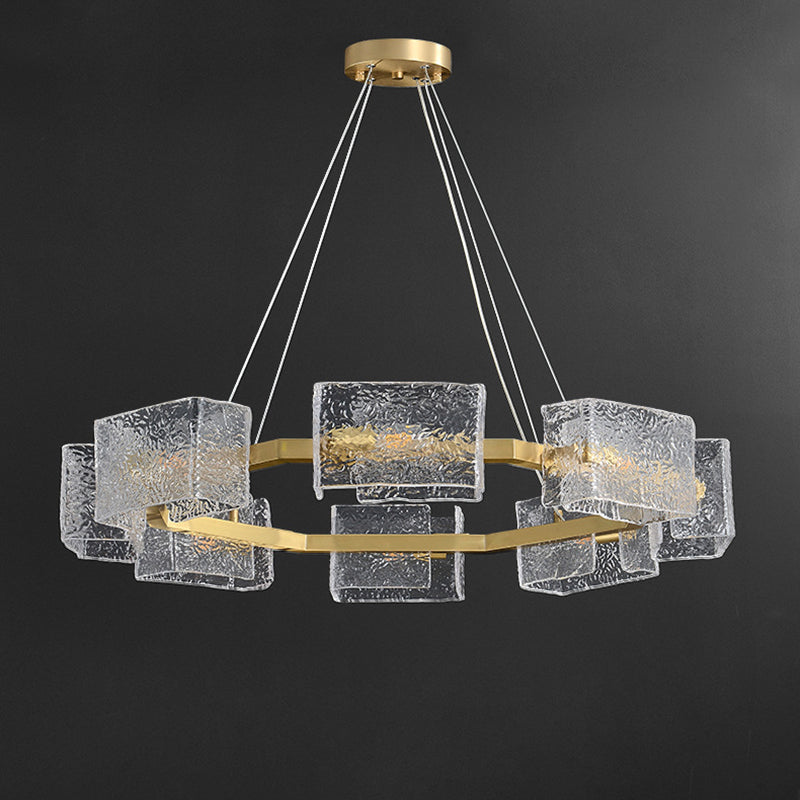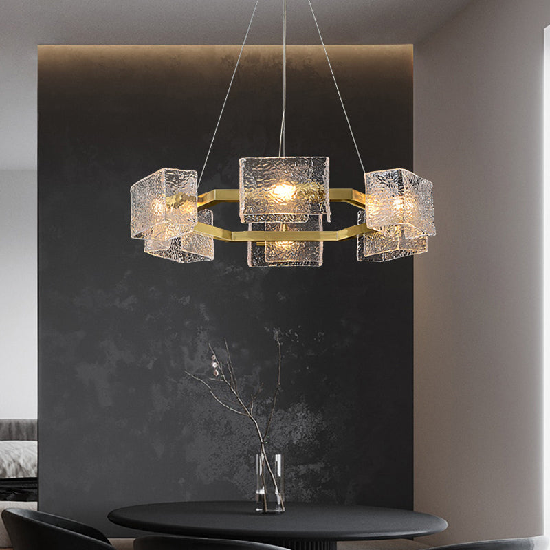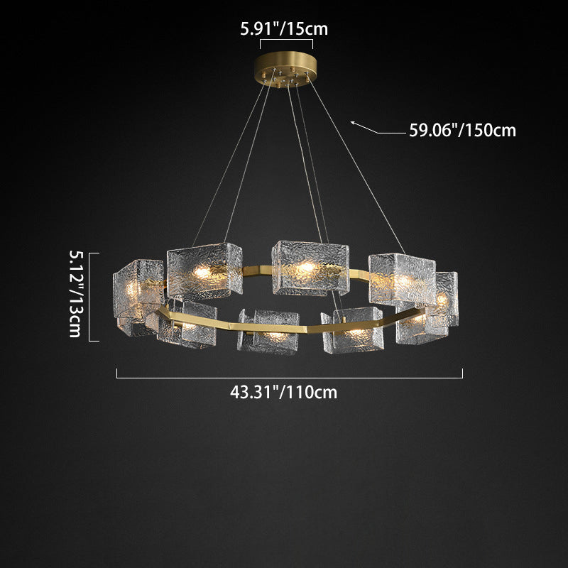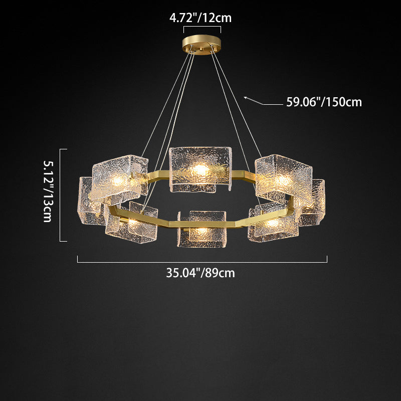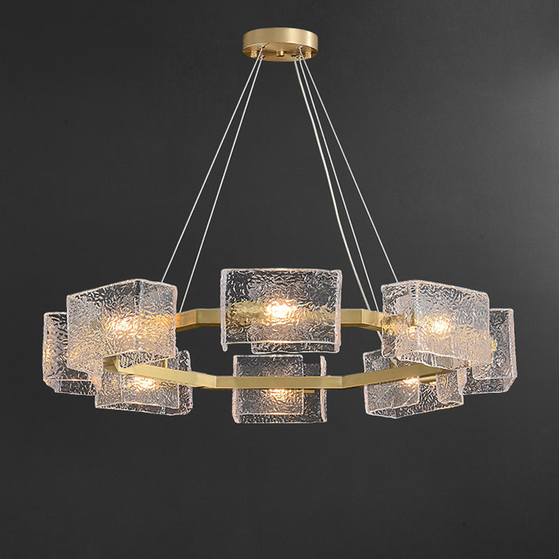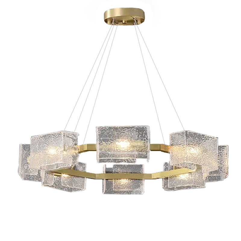 ثريا جزيرة من الحديد الزجاجي الطويل بإطار دائري مربع فاخر حديث مكون من 4/6/8/10 مصابيح لغرفة المعيشة