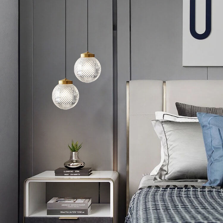 مصباح معلق كروي فاخر حديث مصنوع من الزجاج والنحاس مزود بمصباح واحد