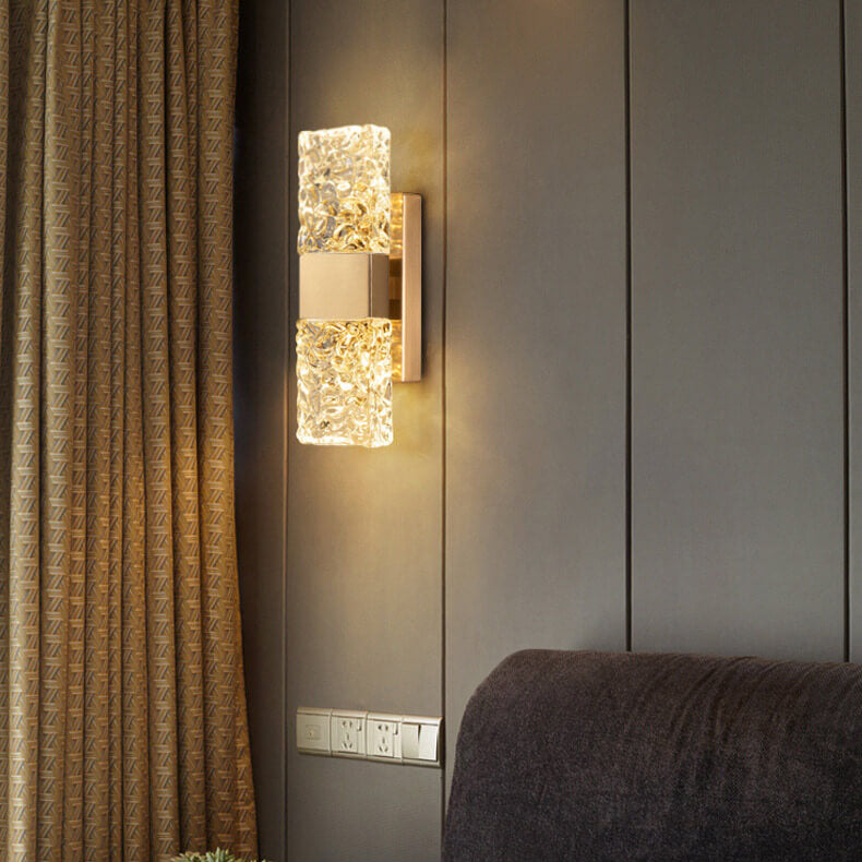 مصباح حائط LED عصري فاخر مربع الشكل من الكريستال الذهبي