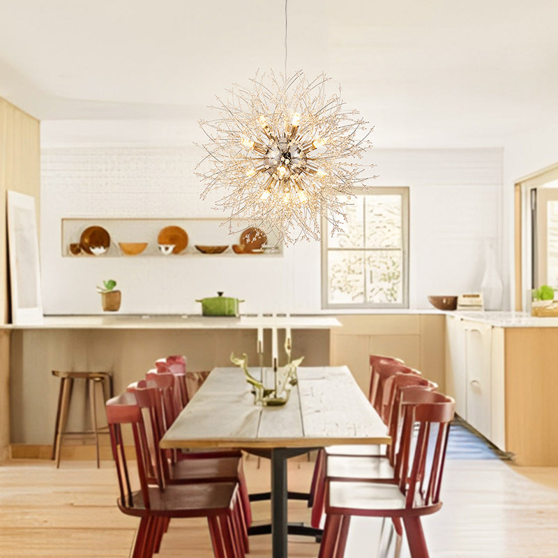 ثريات حديثة فاخرة من الفولاذ المقاوم للصدأ على شكل كرة من الهندباء الكريستالية 9/12 ضوء لغرفة الطعام