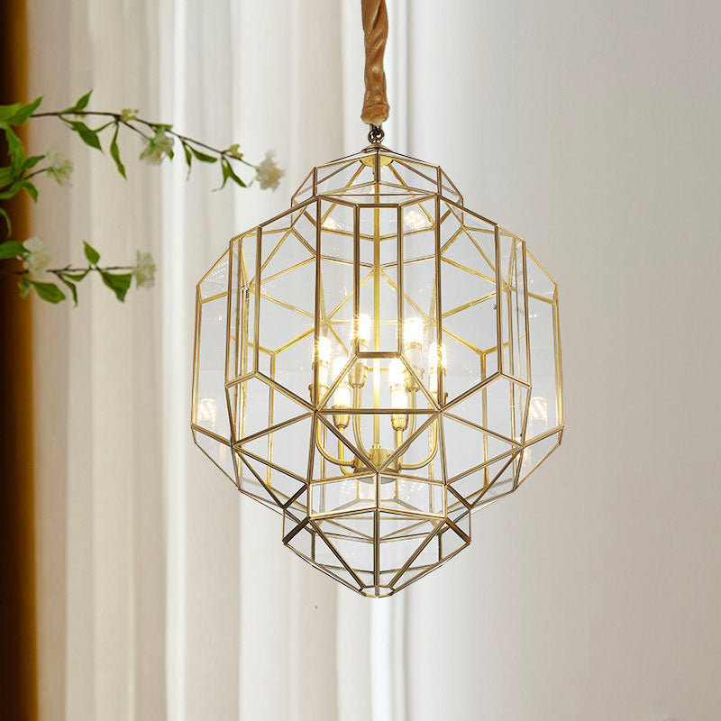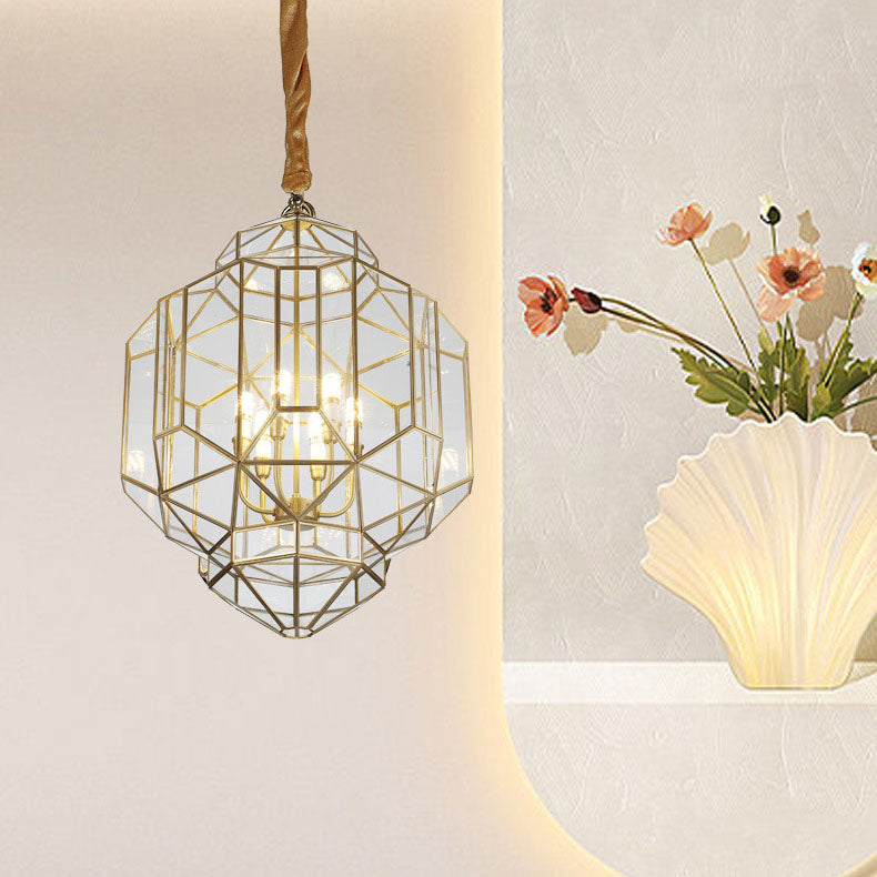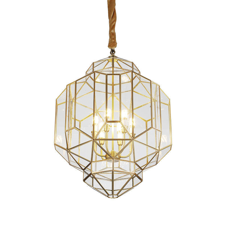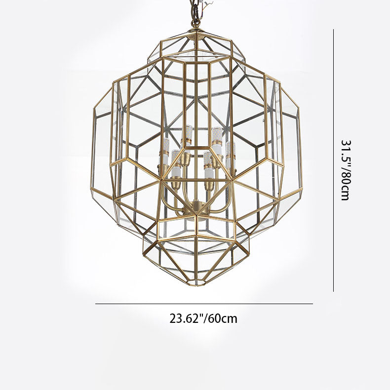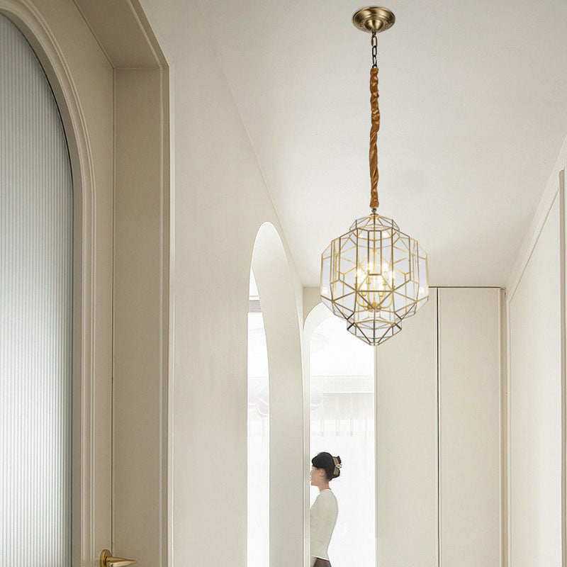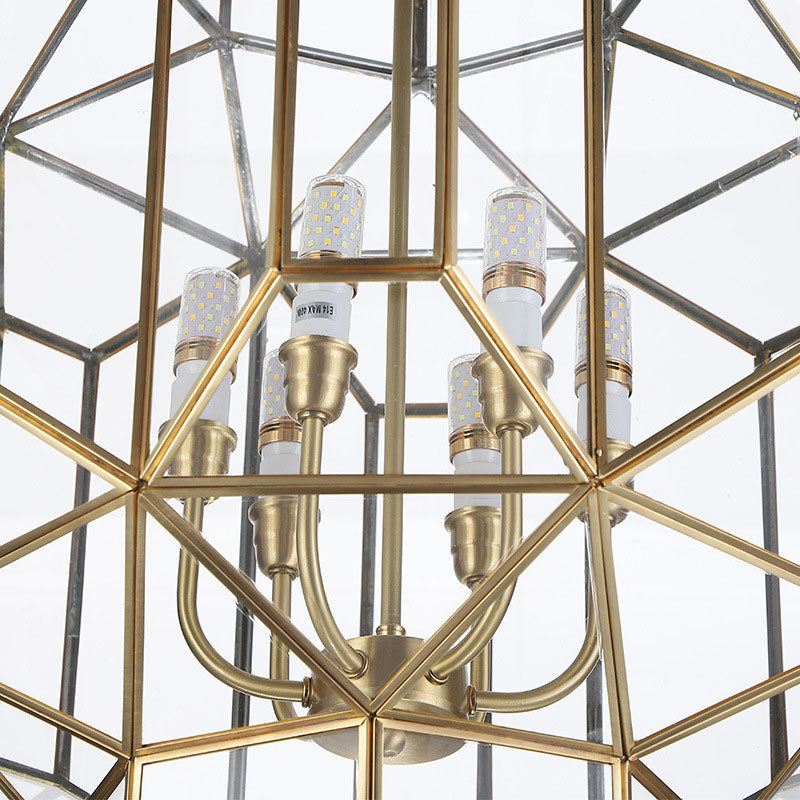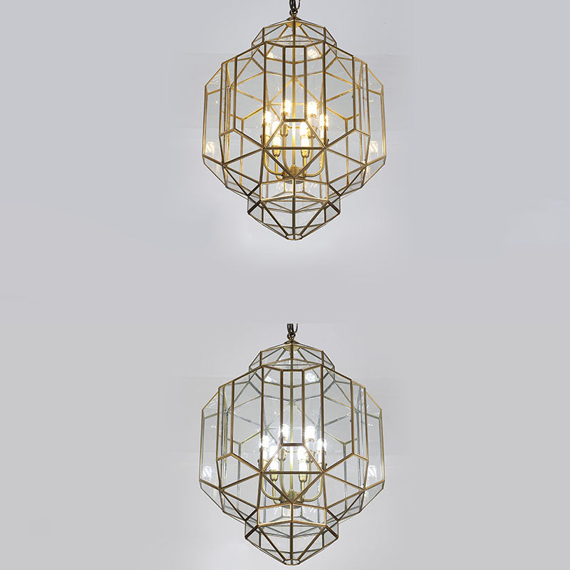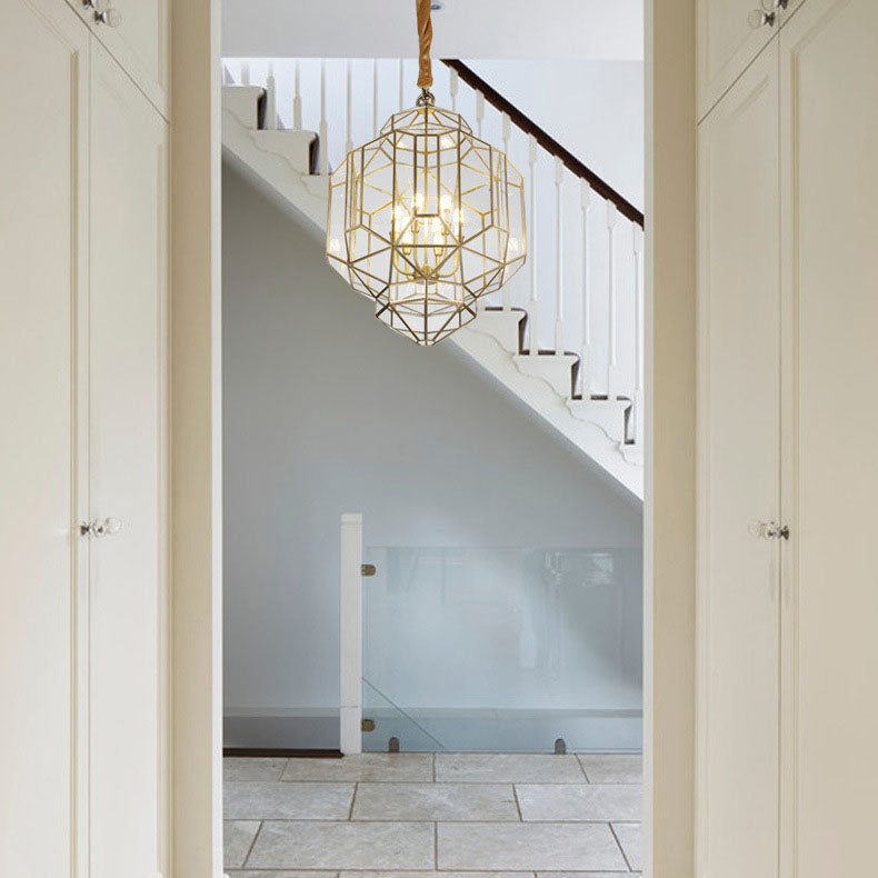 ثريا حديثة من منتصف القرن بإطار هندسي متعدد الأضلاع بـ 6 مصابيح للمدخل