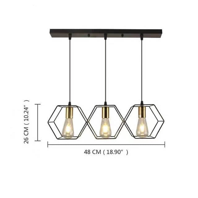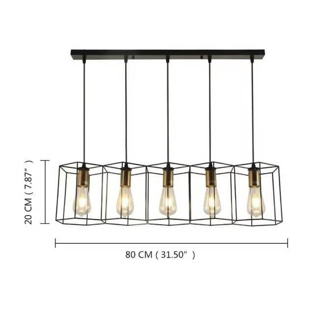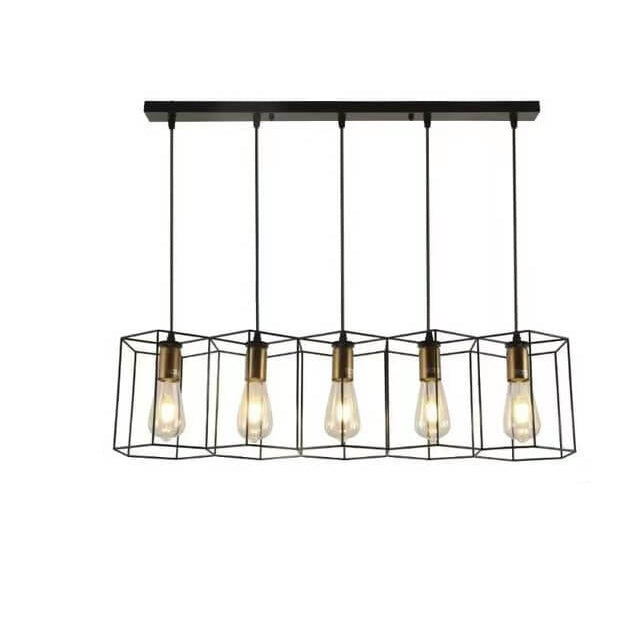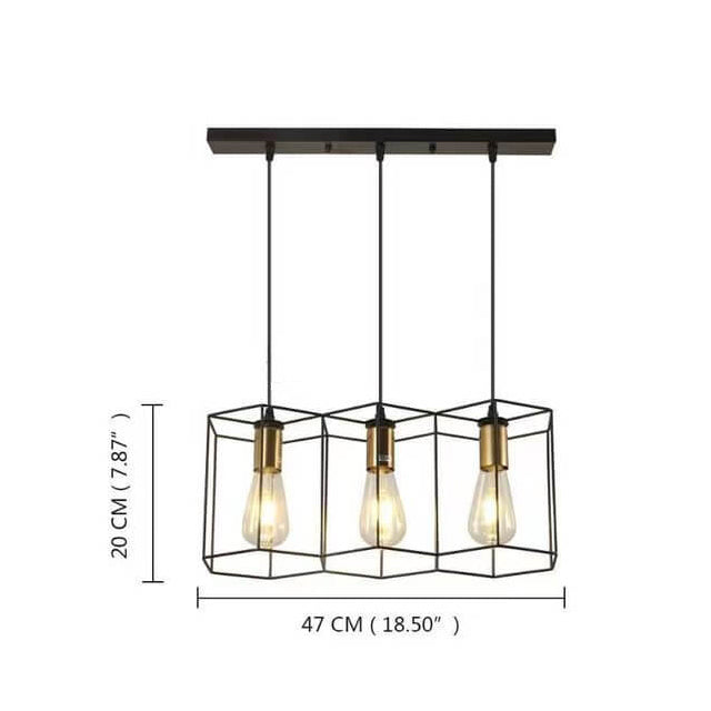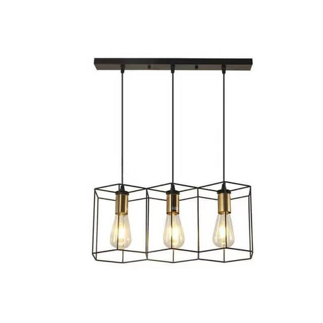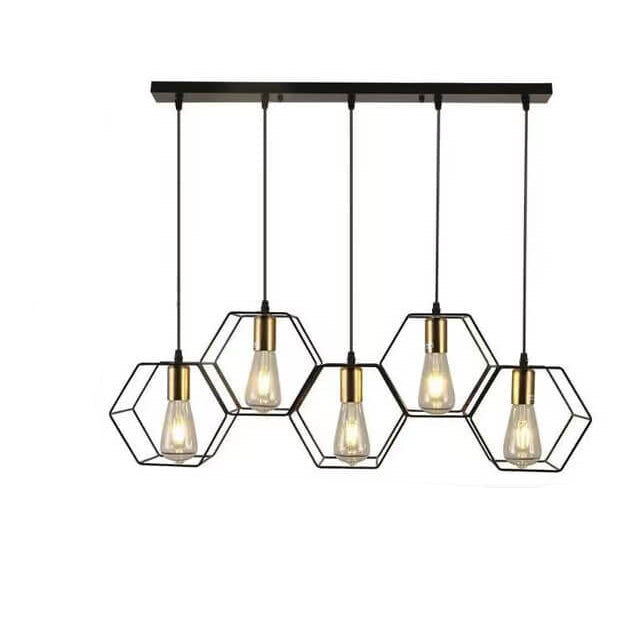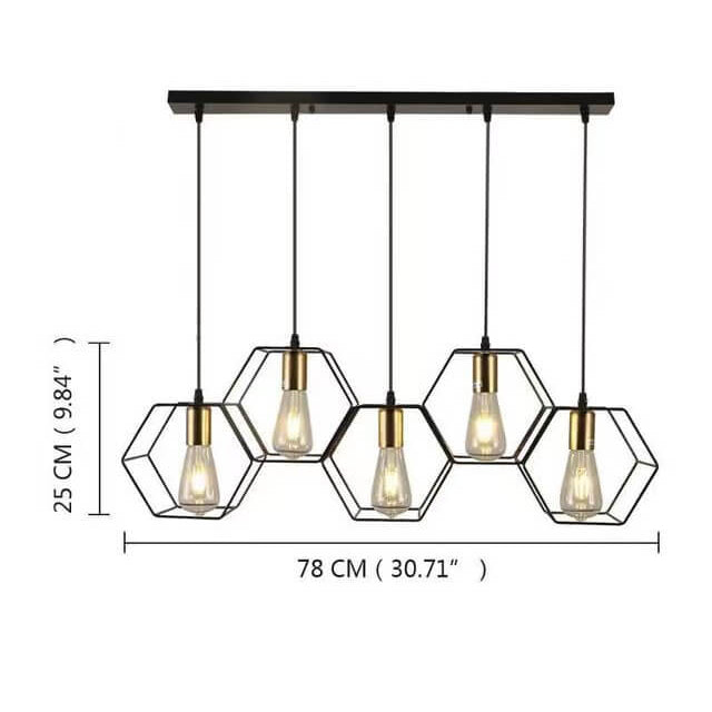 ثريا جزيرة بإطار حديدي متعدد الأضلاع بتصميم هندسي عصري من منتصف القرن، بثلاثة أضواء ونصف، لغرفة المعيشة