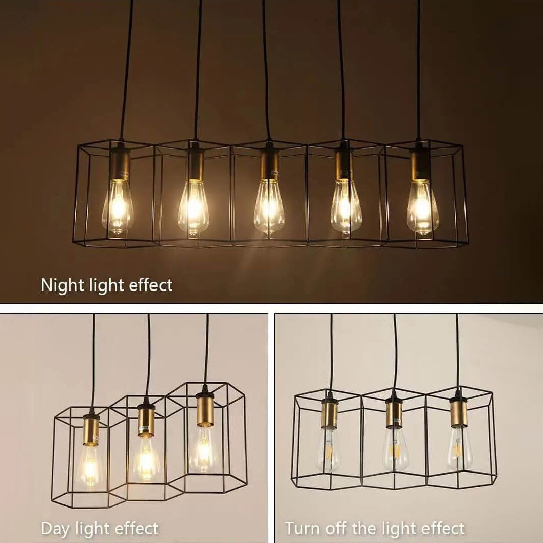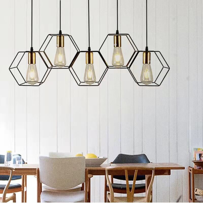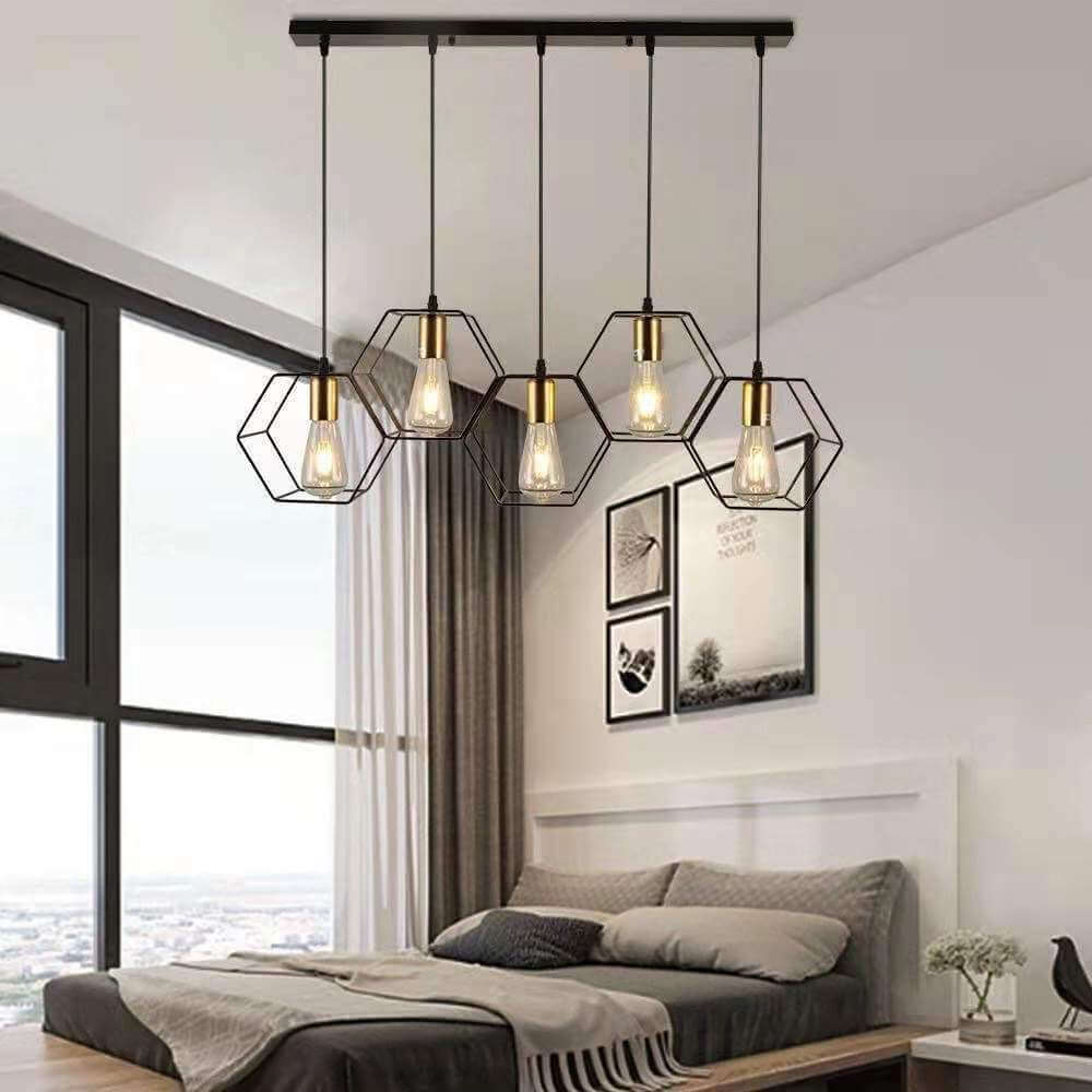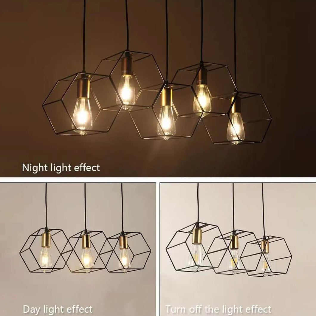 ثريا جزيرة بإطار حديدي متعدد الأضلاع بتصميم هندسي عصري من منتصف القرن، بثلاثة أضواء ونصف، لغرفة المعيشة