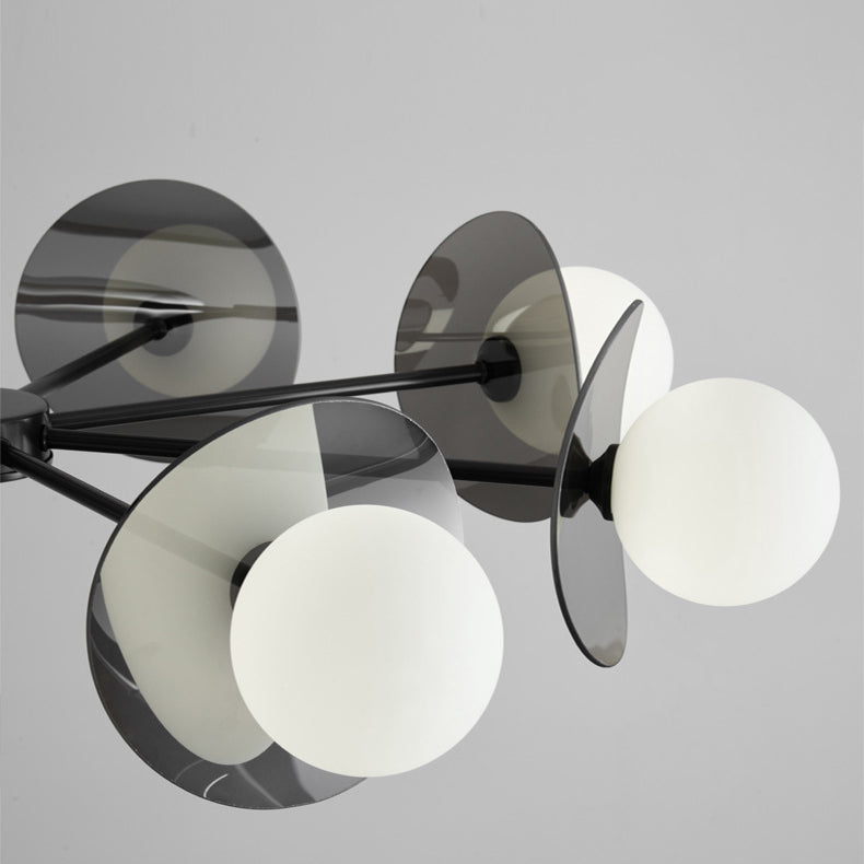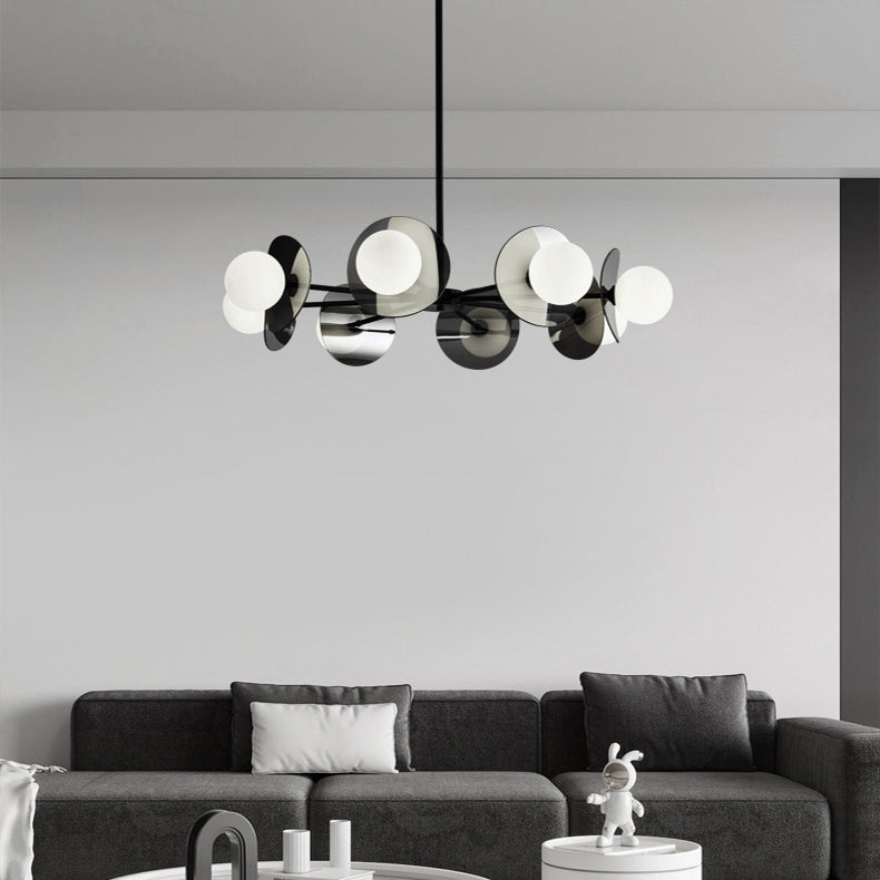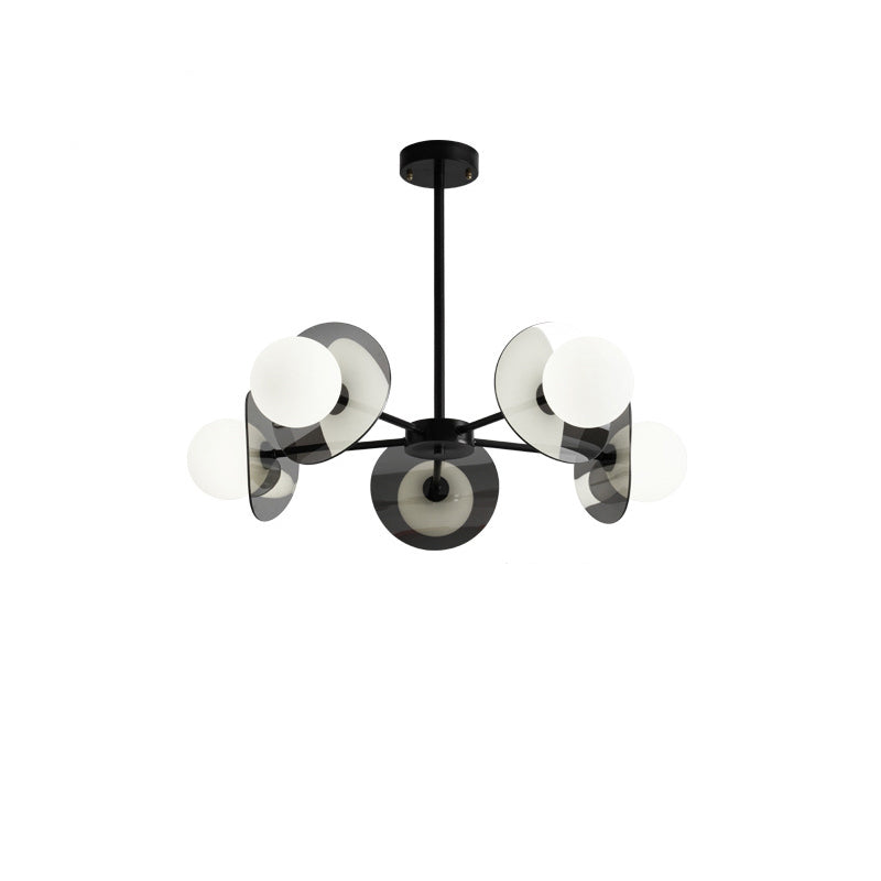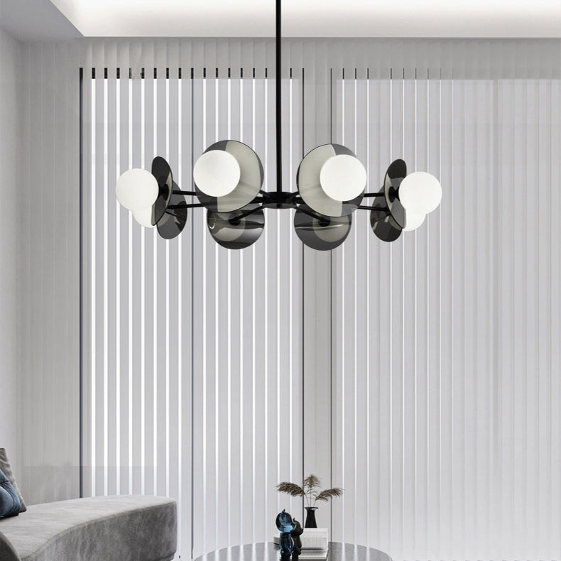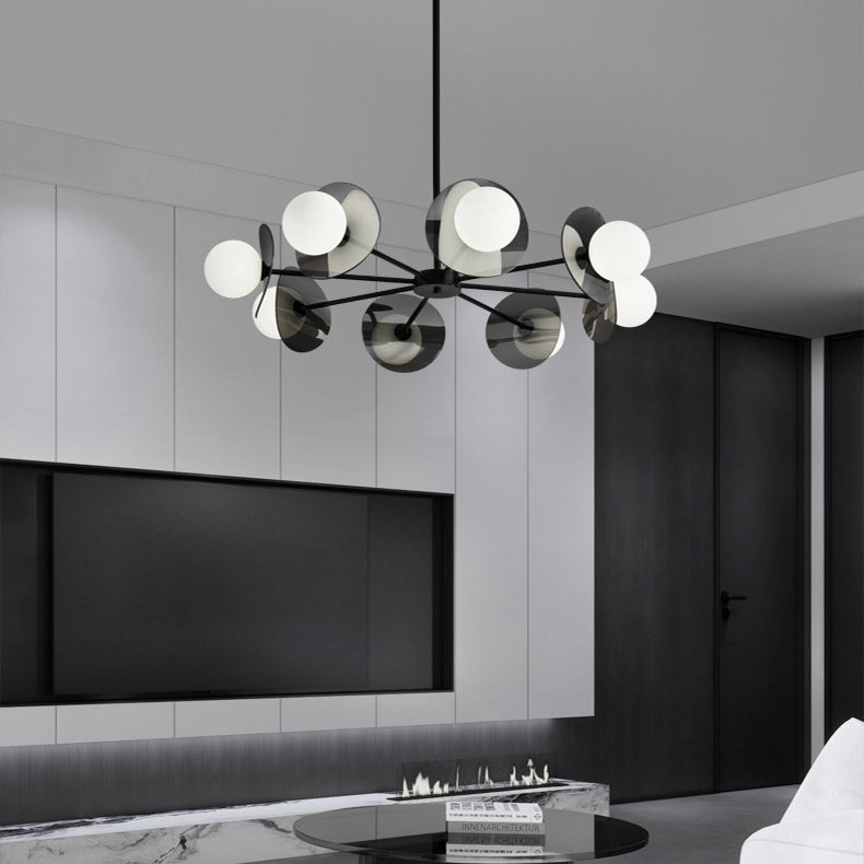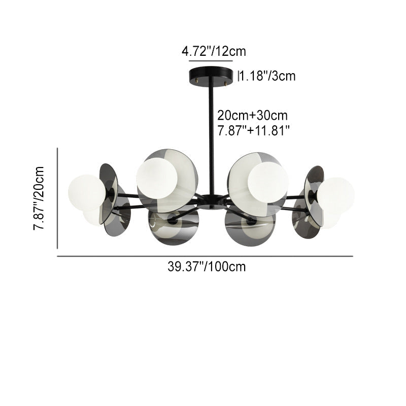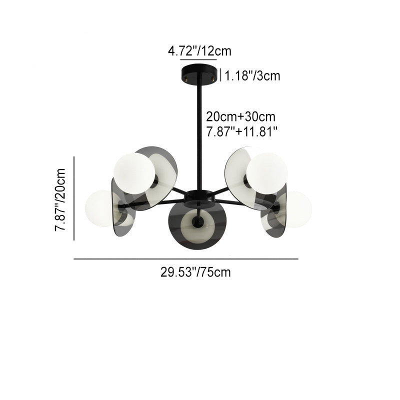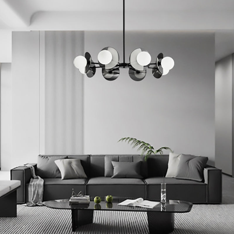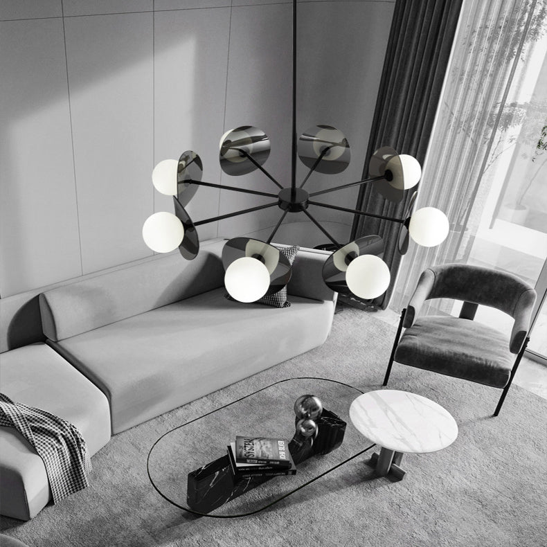 ثريا زجاجية كروية جزيئية حديثة من منتصف القرن، 3/5/8 مصابيح لغرفة المعيشة