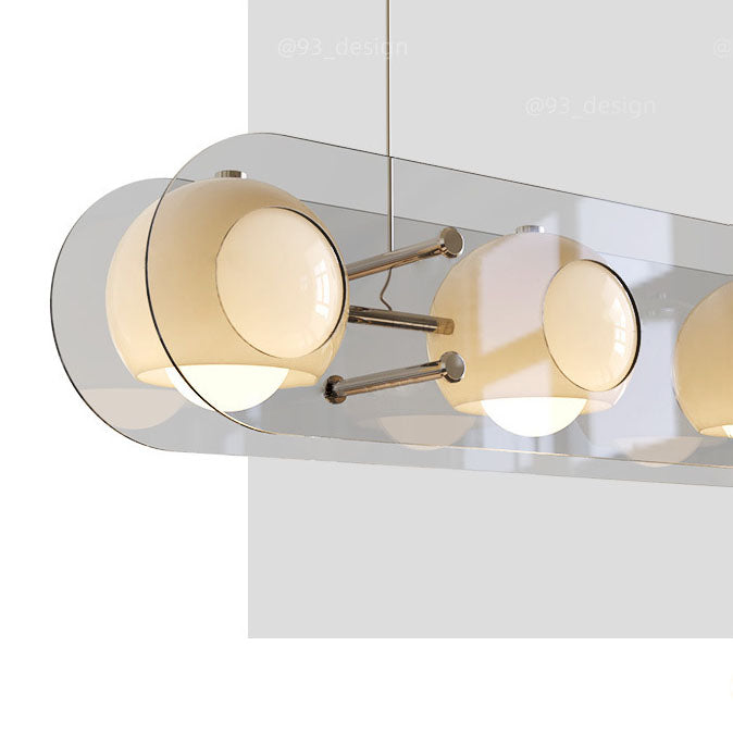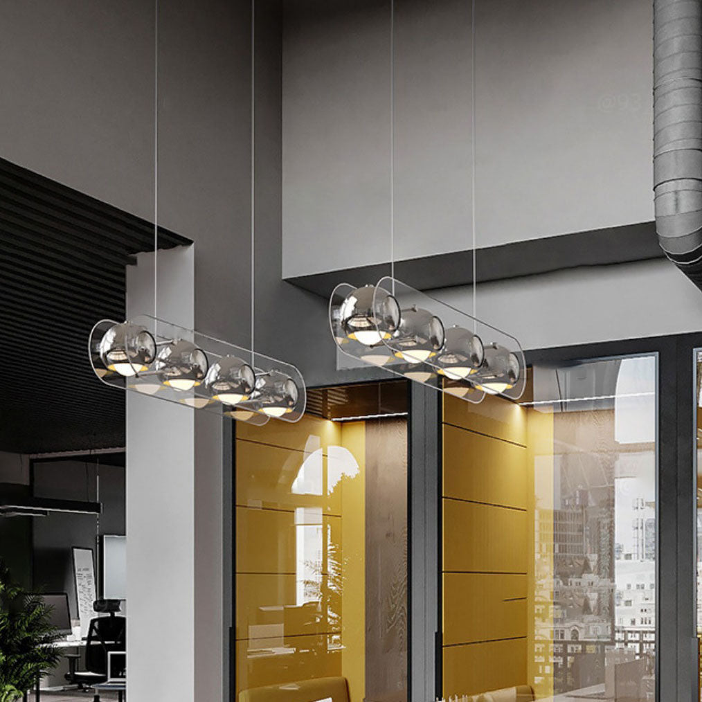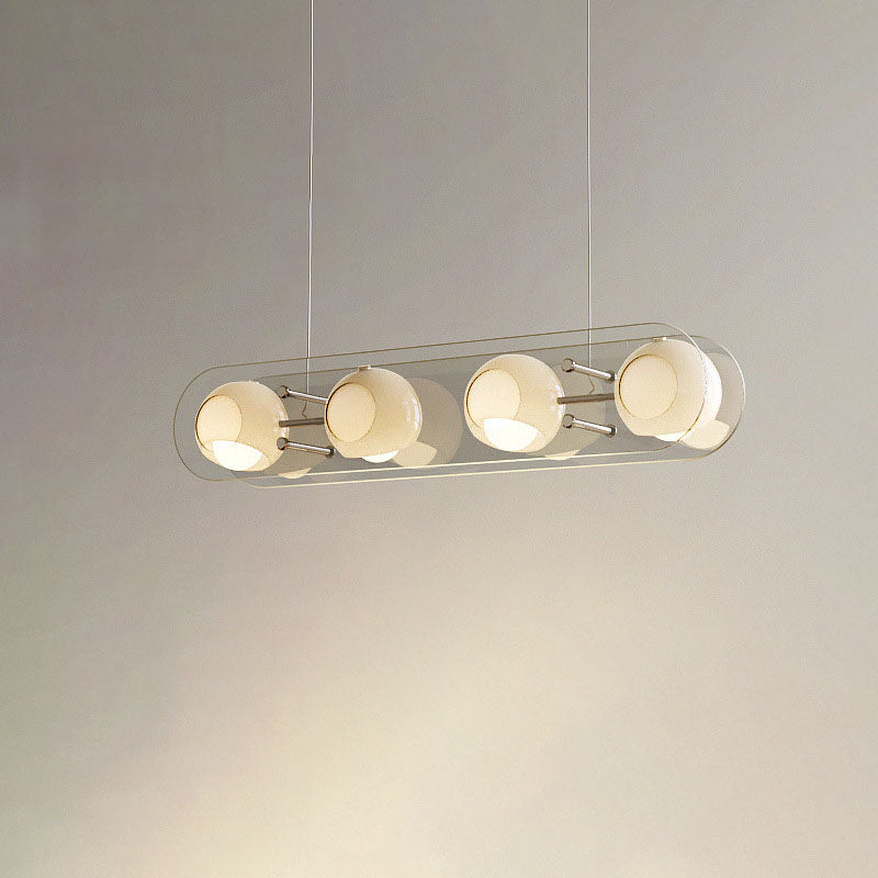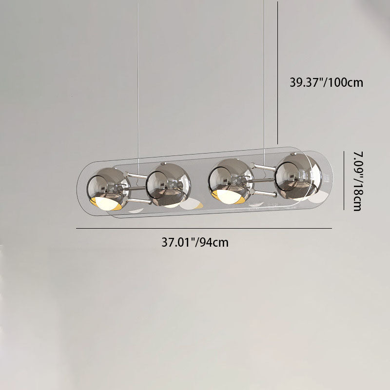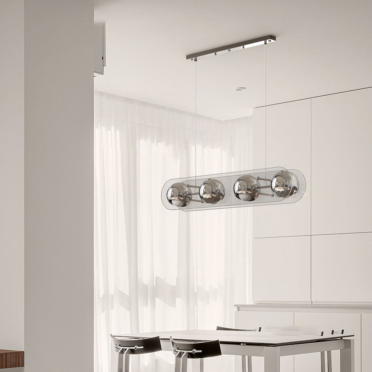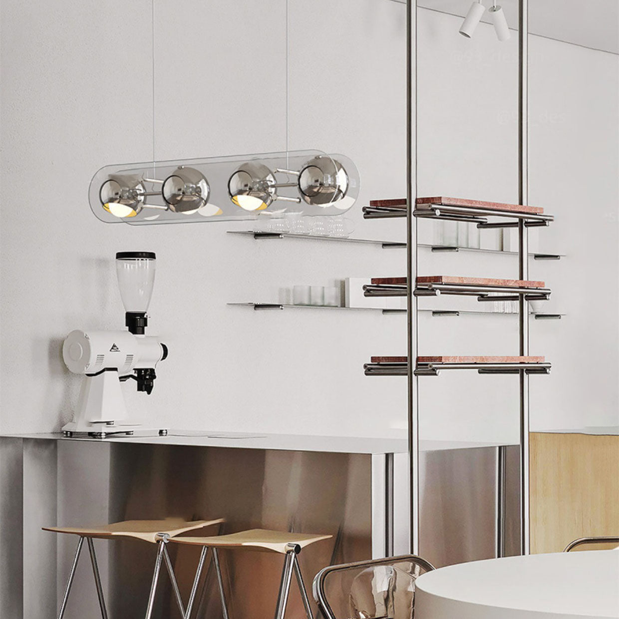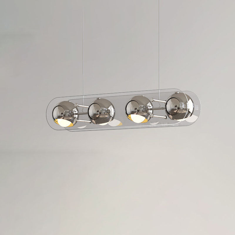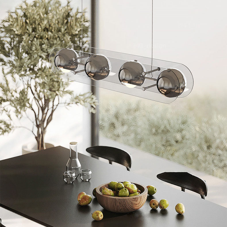 ثريا جزيرة حديثة من منتصف القرن، مستطيلة الشكل، مصنوعة من الحديد والأكريليك، بأربعة مصابيح، لغرفة الطعام