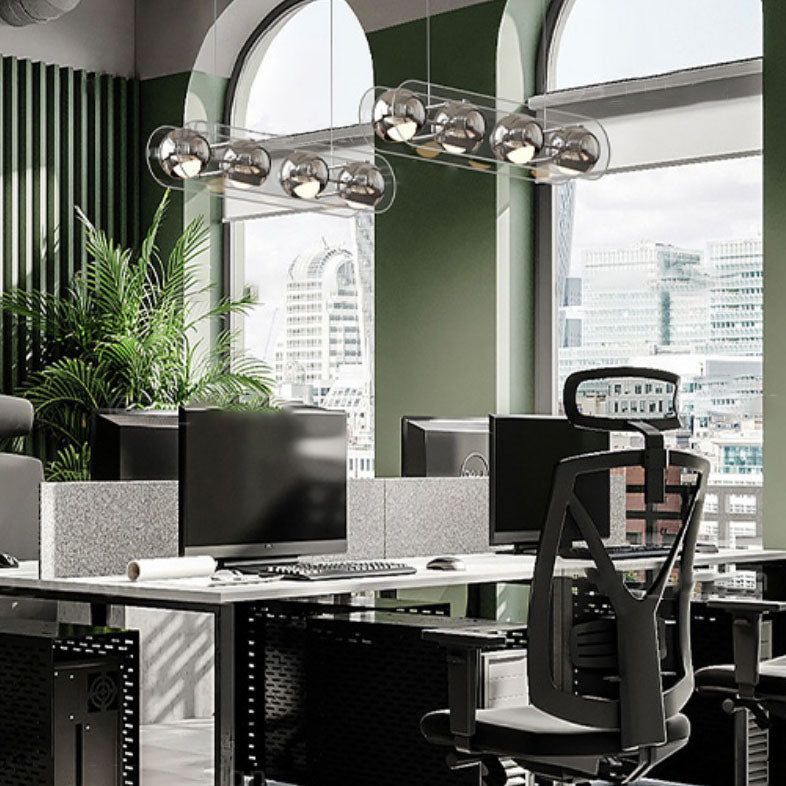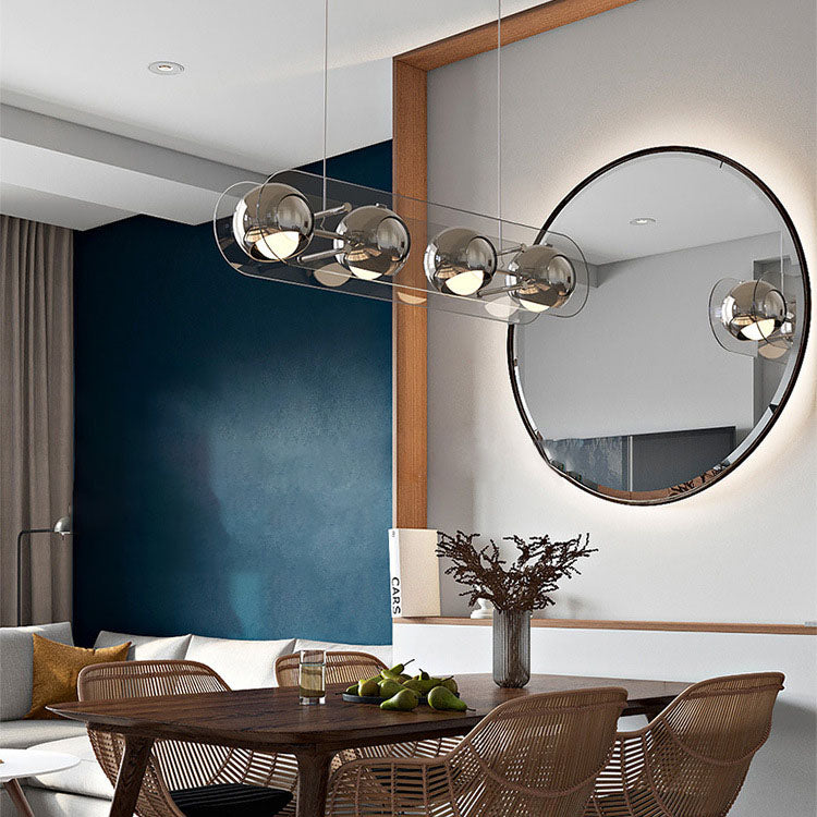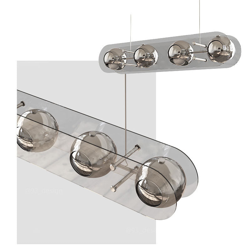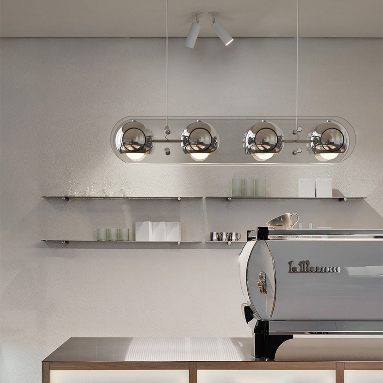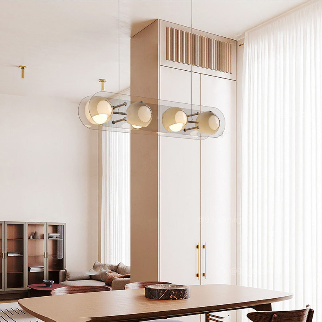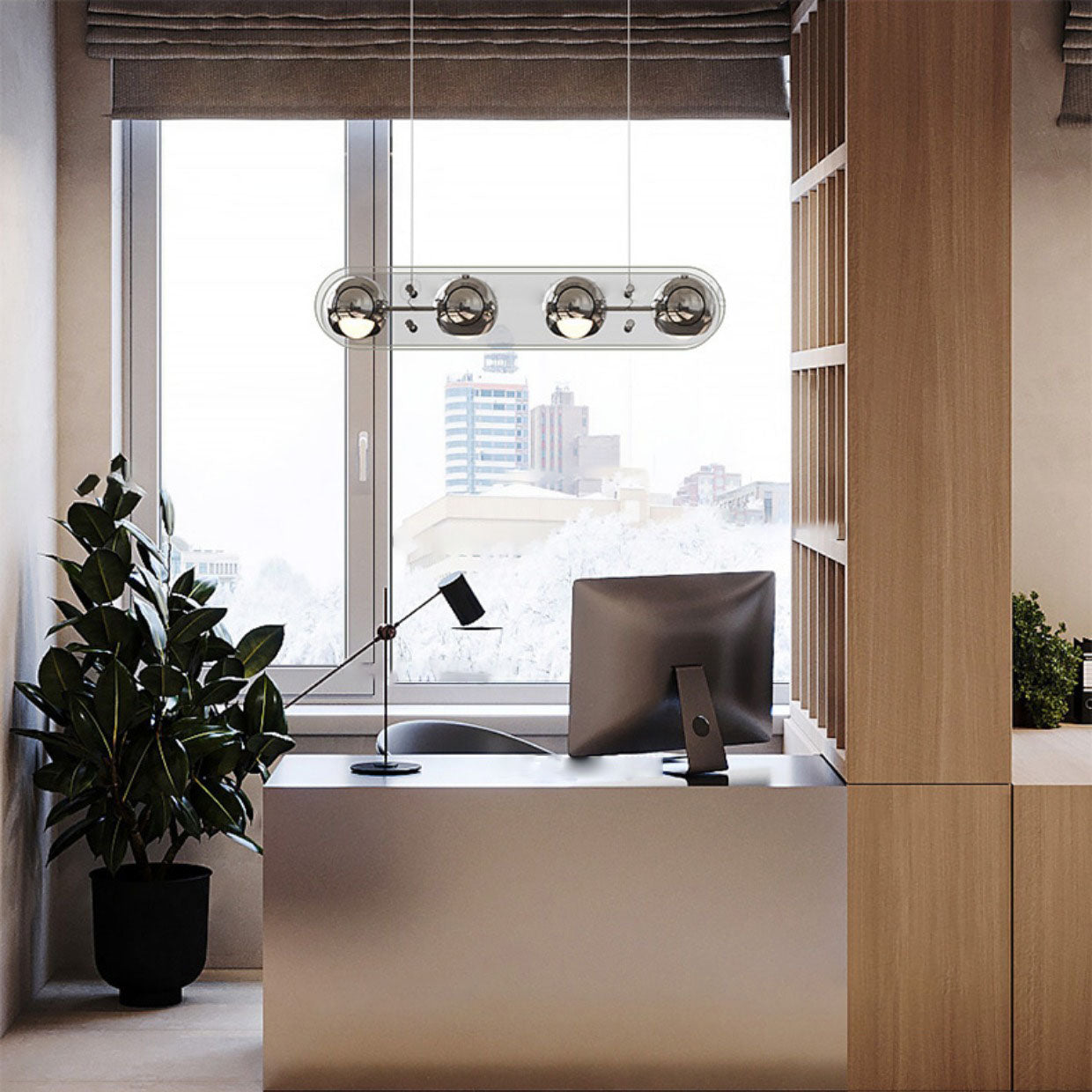 ثريا جزيرة حديثة من منتصف القرن، مستطيلة الشكل، مصنوعة من الحديد والأكريليك، بأربعة مصابيح، لغرفة الطعام