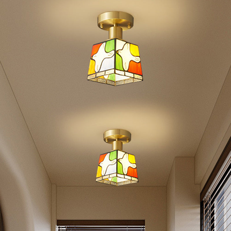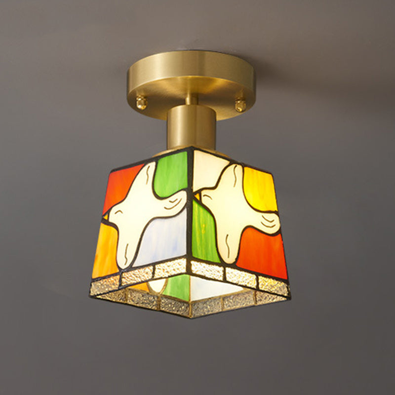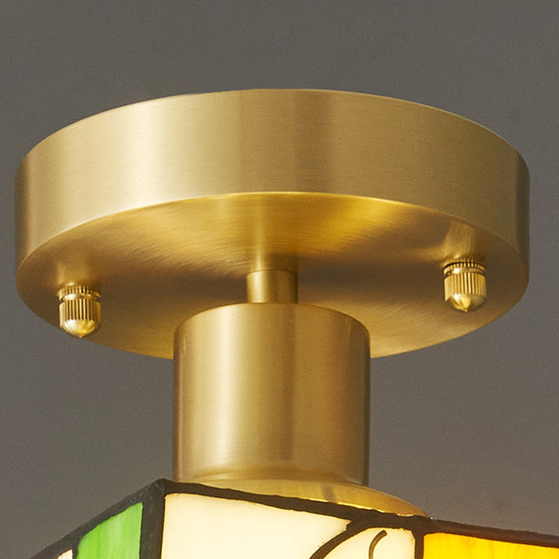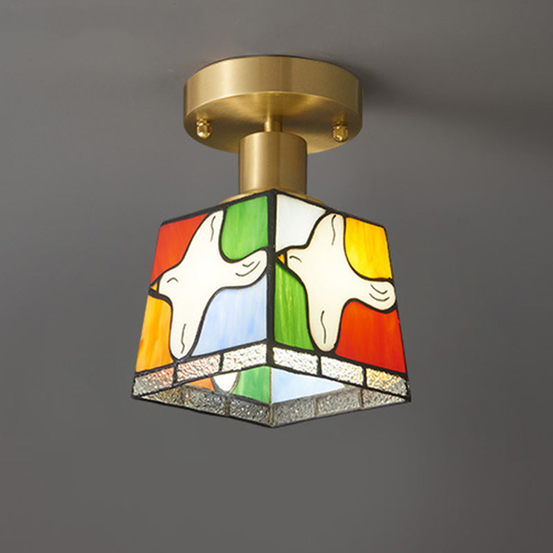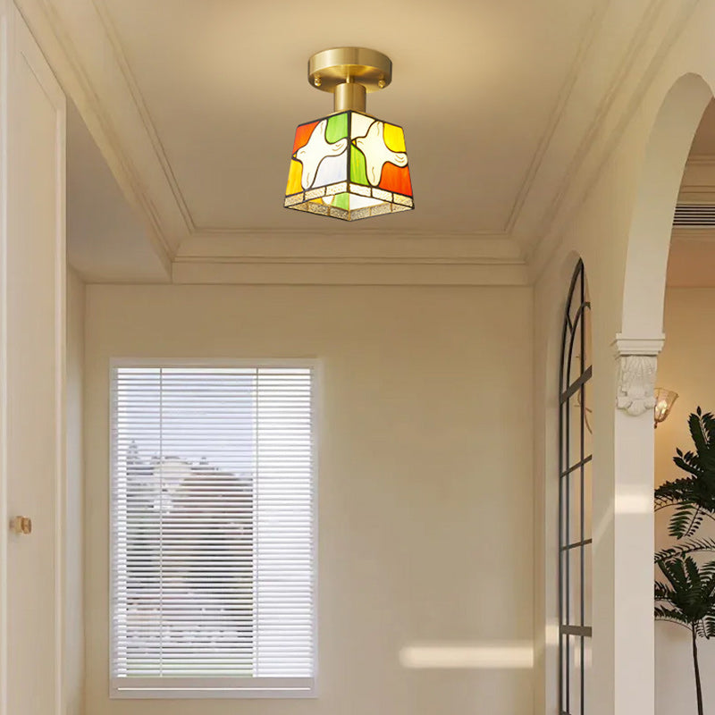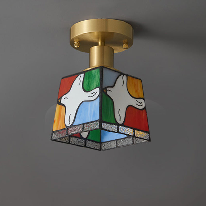 مصباح سقف عصري من منتصف القرن بتصميم حمامة السلام بإطار نحاسي كامل وغطاء زجاجي، مصباح واحد، مثبت بشكل شبه مسطح، لغرفة المعيشة